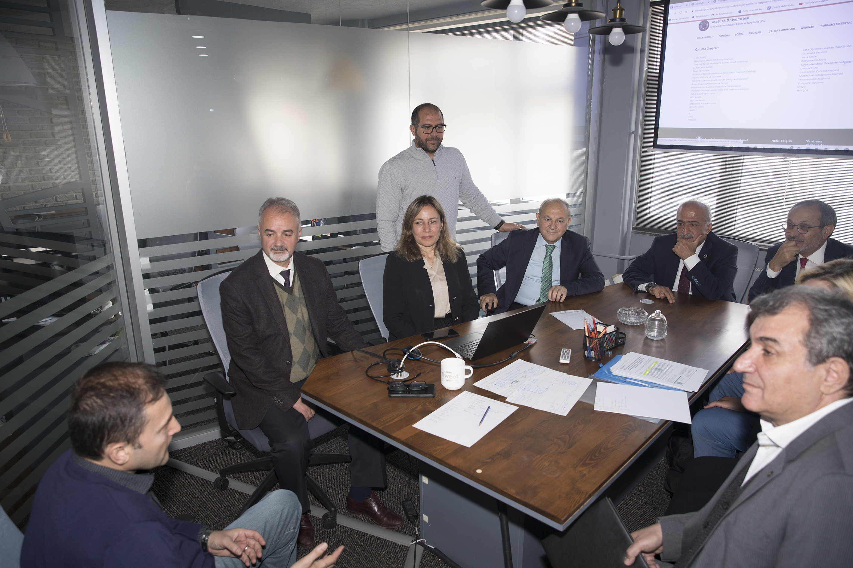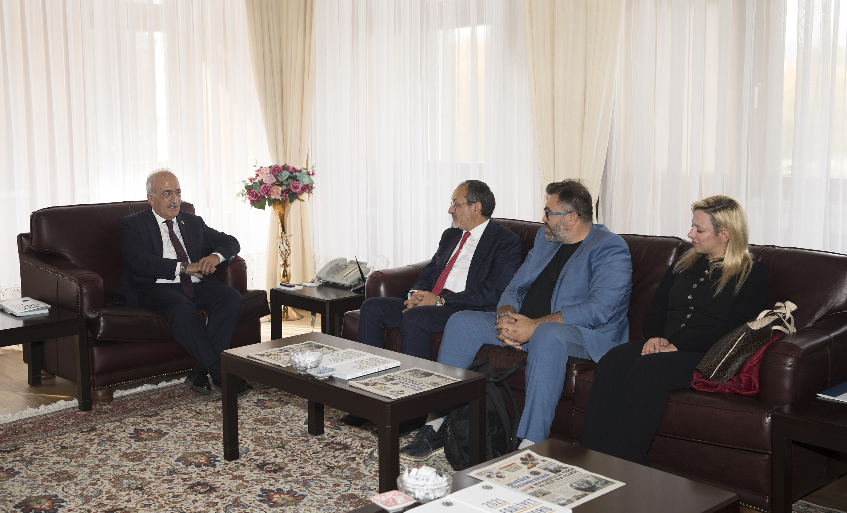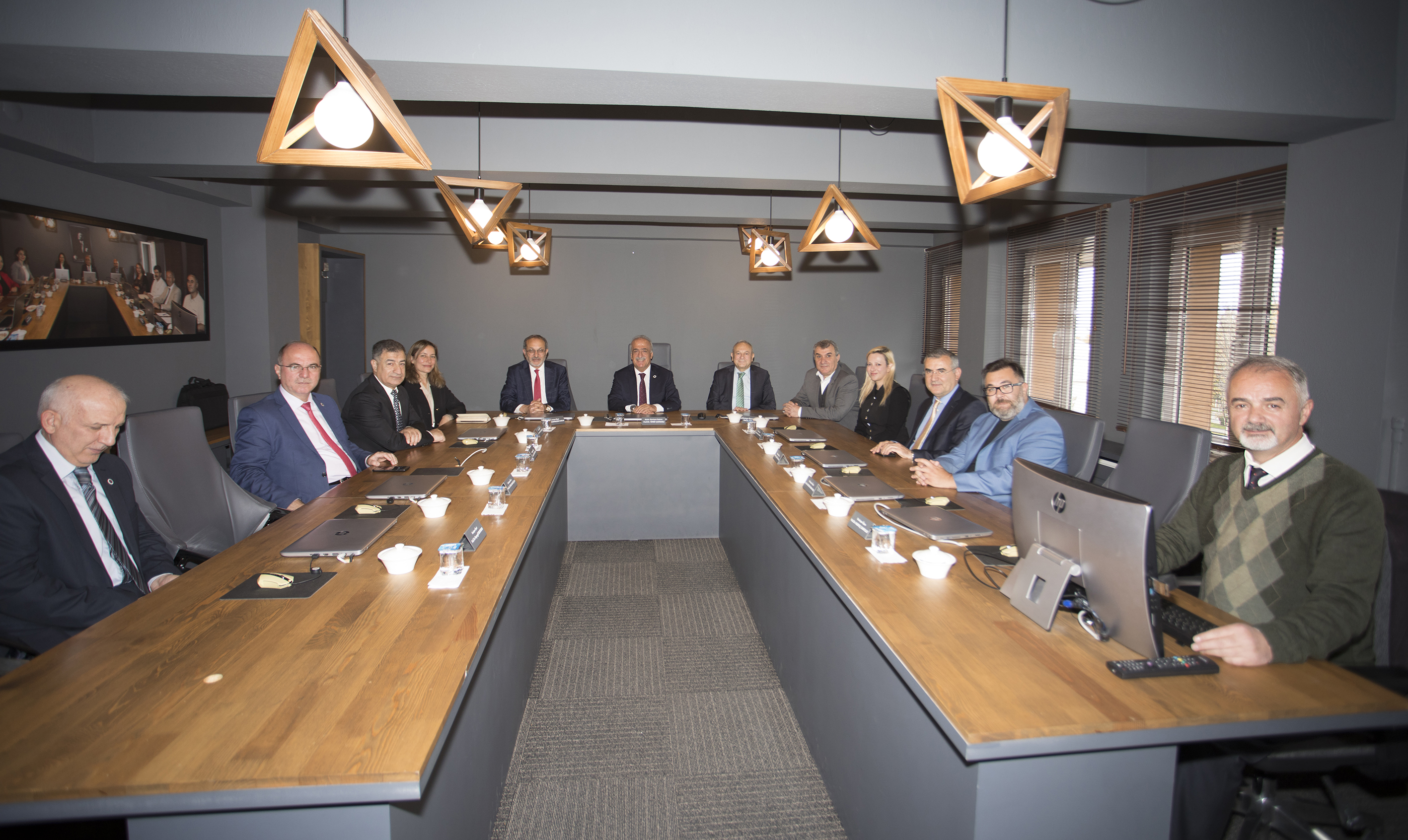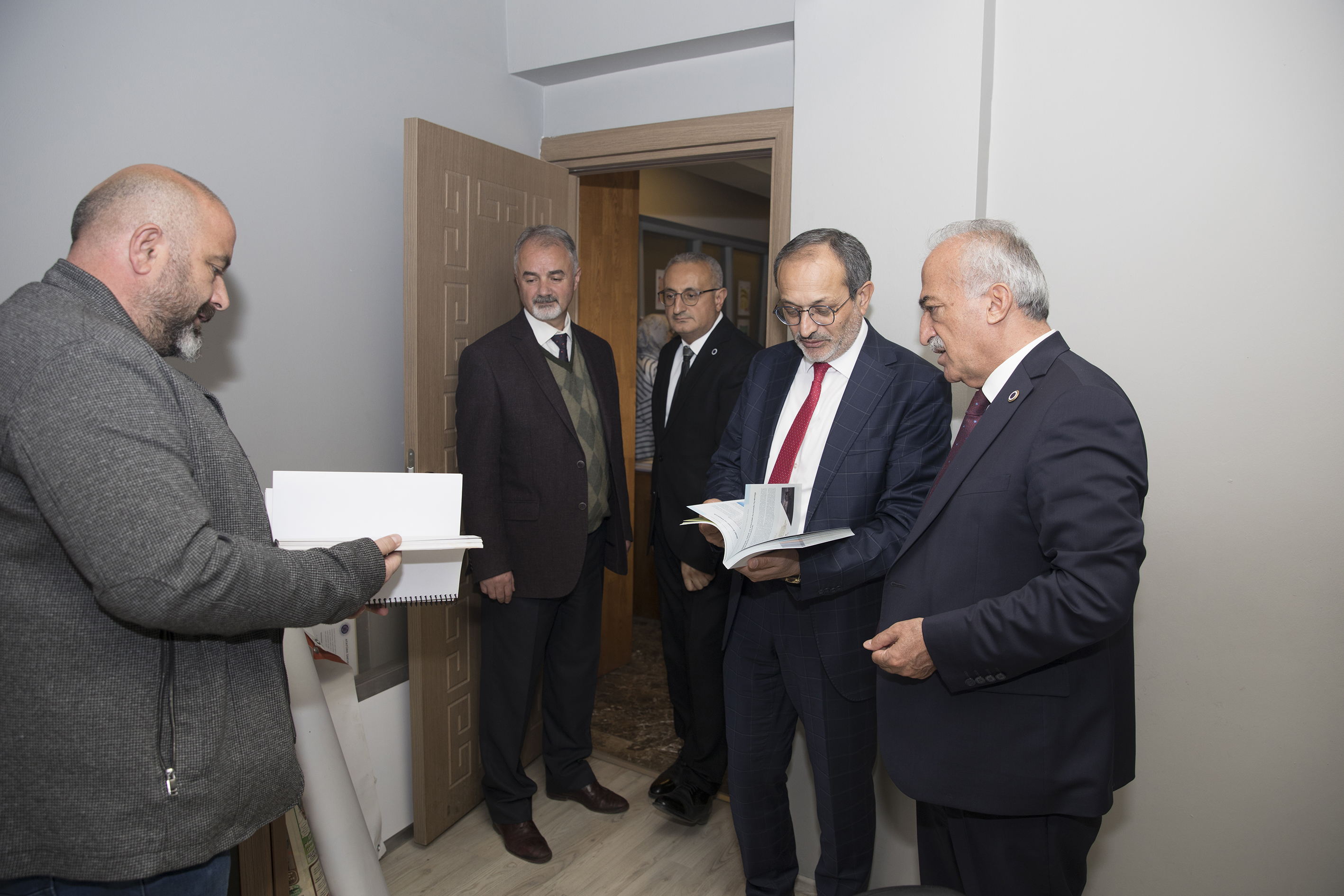 TUSAŞ R&D and Technology Director, Prof. Dr. Erdal Çelik, Tusaş University relations manager Dr. Süleyman Demir and TUSAŞ Technology Development Engineer Dr. Seda Sivri were extended cordial receptions by Rector Çomaklı in the rectorate. The attendees were granted an introductory tour of the operational divisions that were unveiled as part of the New Generation University Design and Transformation Project by Prof. Dr. Çomaklı on behalf of Atatürk University.