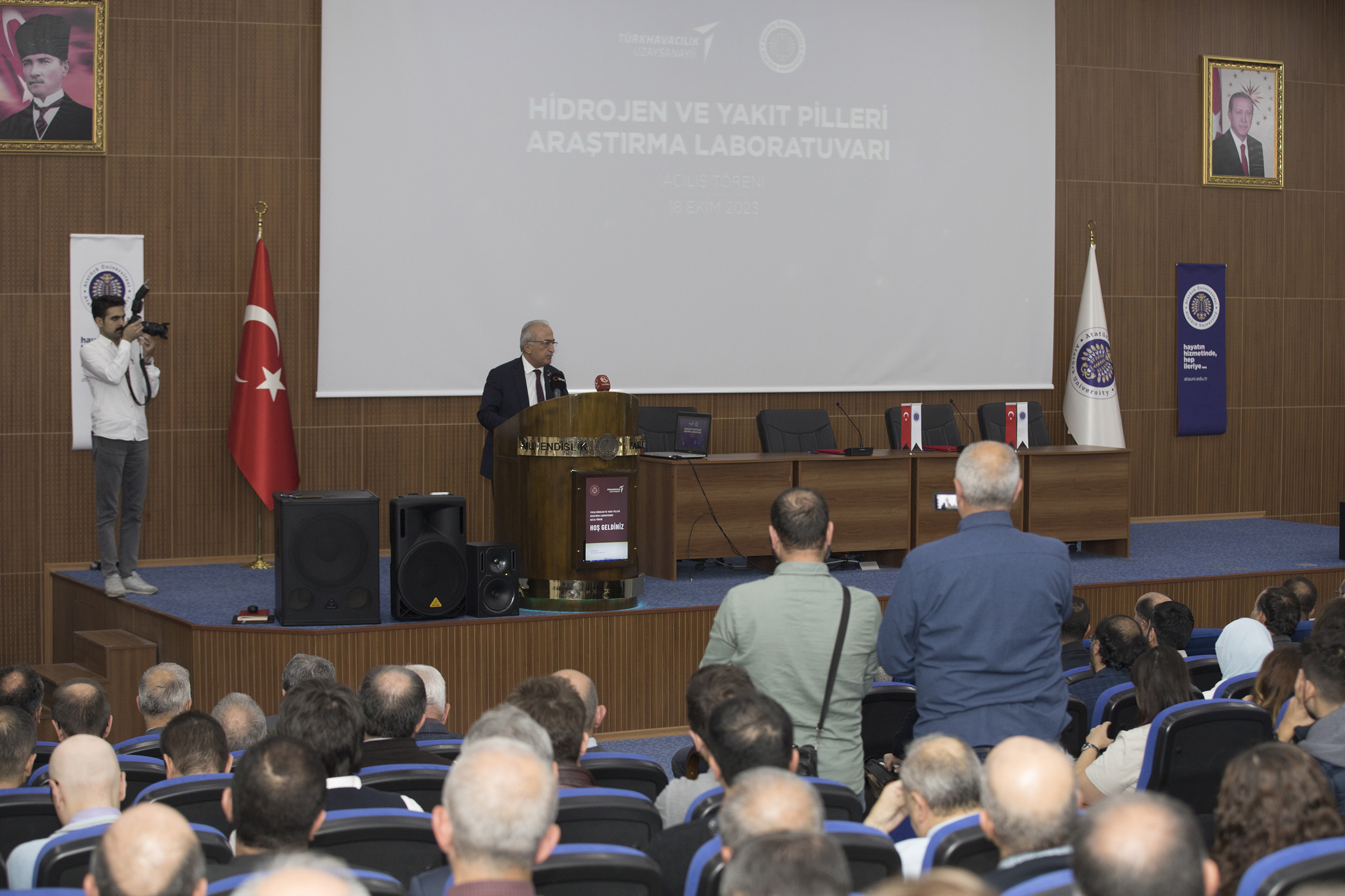 Taking place in the Atatürk University Faculty of Engineering Conference Hall, the inter-institutional cooperation signing ceremony and the inauguration of the Hydrogen and Fuel Cells Research Laboratory were jointly organized by Turkish Aerospace Industry (TAI) and Atatürk University.