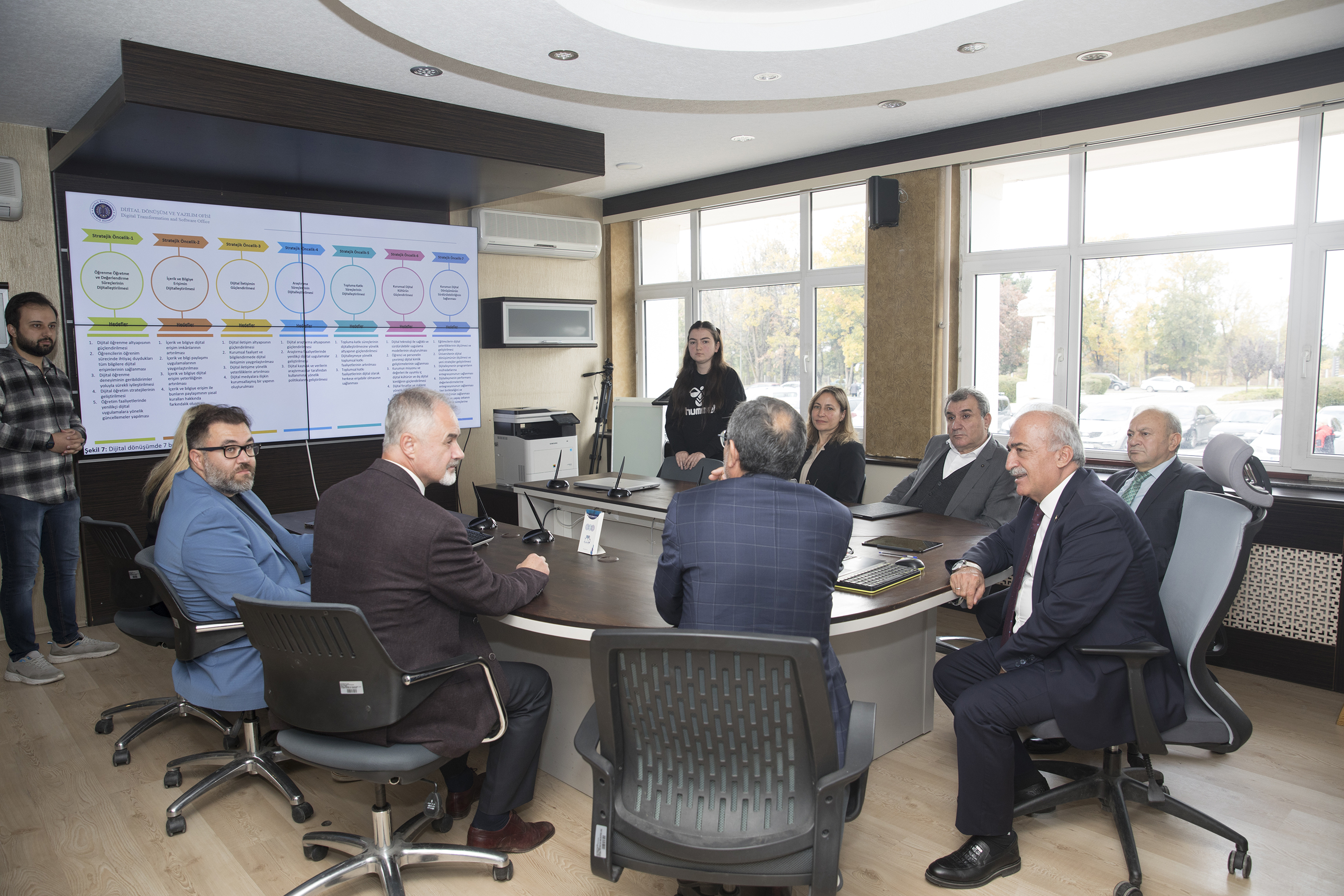 Information was provided by the unit administrators to Rector Çomaklı and Prof. Dr. Çelik during their visits to the Scientific Research Projects Coordination Unit, the Corporate Communication Directorate, the Research University Monitoring and Evaluation Office, the Data Management Office, and the Digital Transformation and Software Office.