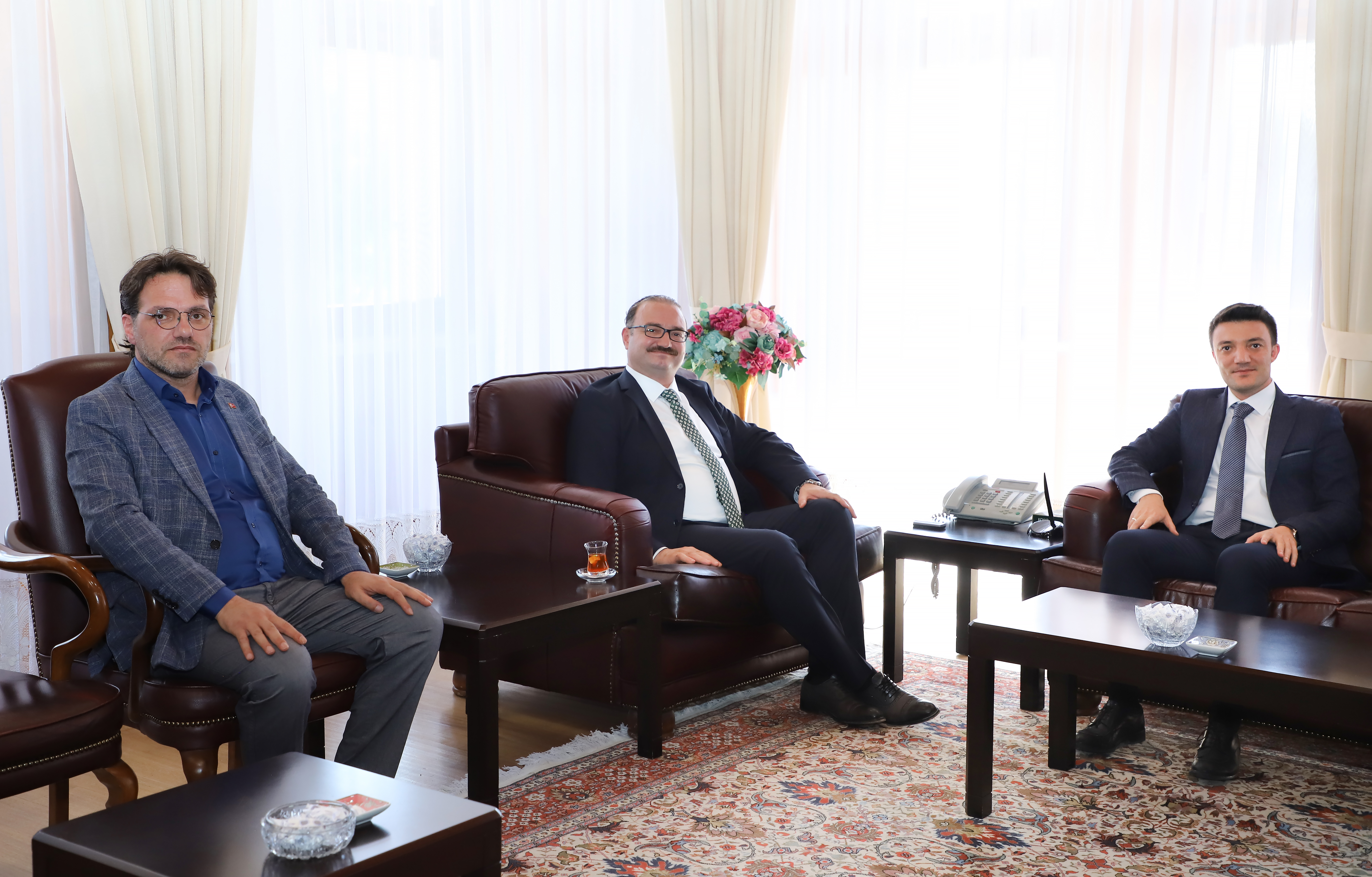 Visiting Atatürk University Rector Prof. Dr. Ahmet Hacımüftüoğlu at his office, Horasan District Governor Mesut Ozan Yılmaz wished him well in his new post. The value of Atatürk University for the city and the area was discussed at the meeting along with the growth of the Vocational School in Horasan and the actions done for regional development.
