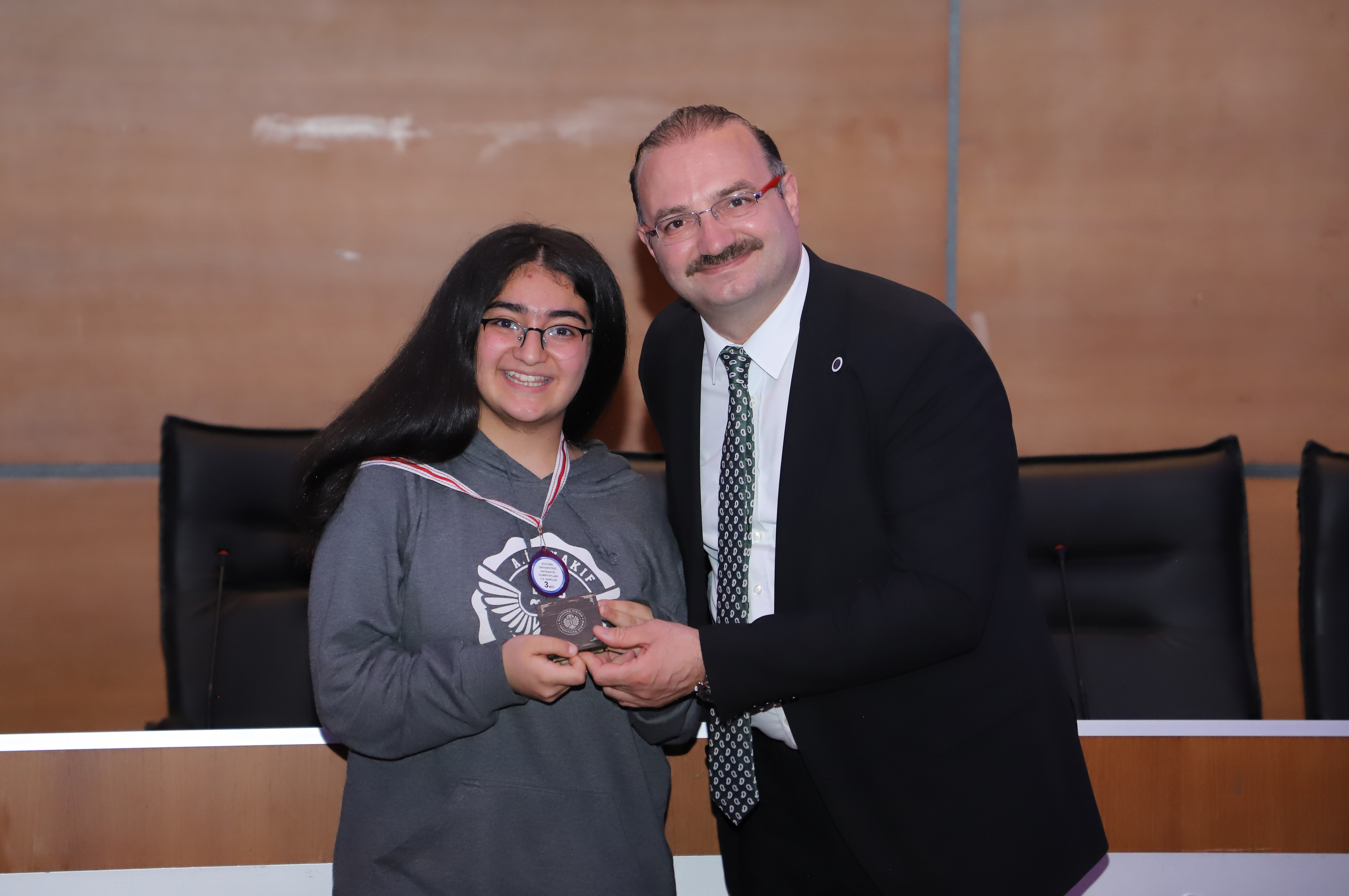 Atatürk University Rector Prof. Dr. Ahmet Hacımüftüoğlu presented the awards to the students who appeared victorious in the Mathematics Olympiads organised by the university for the first time this year.