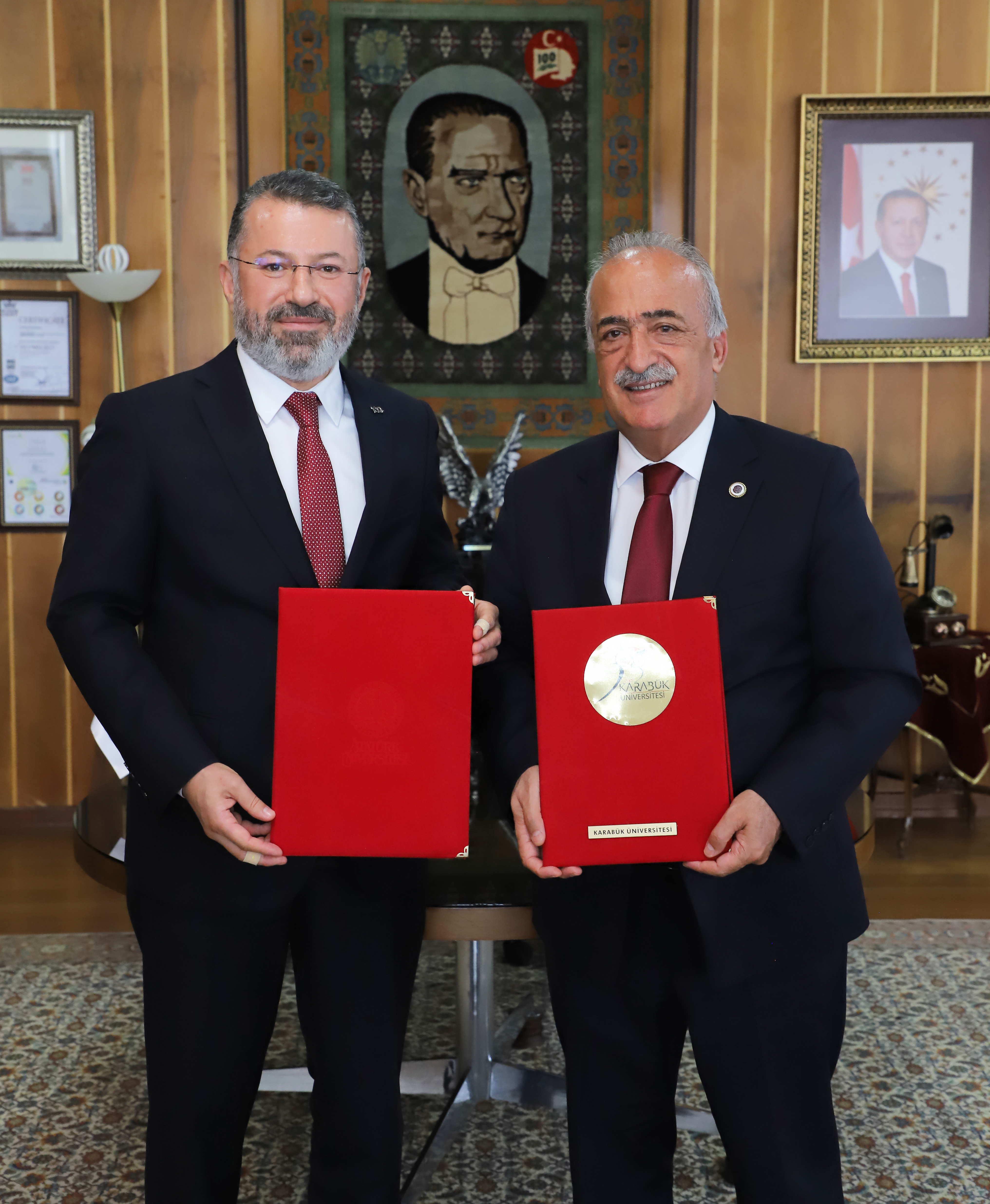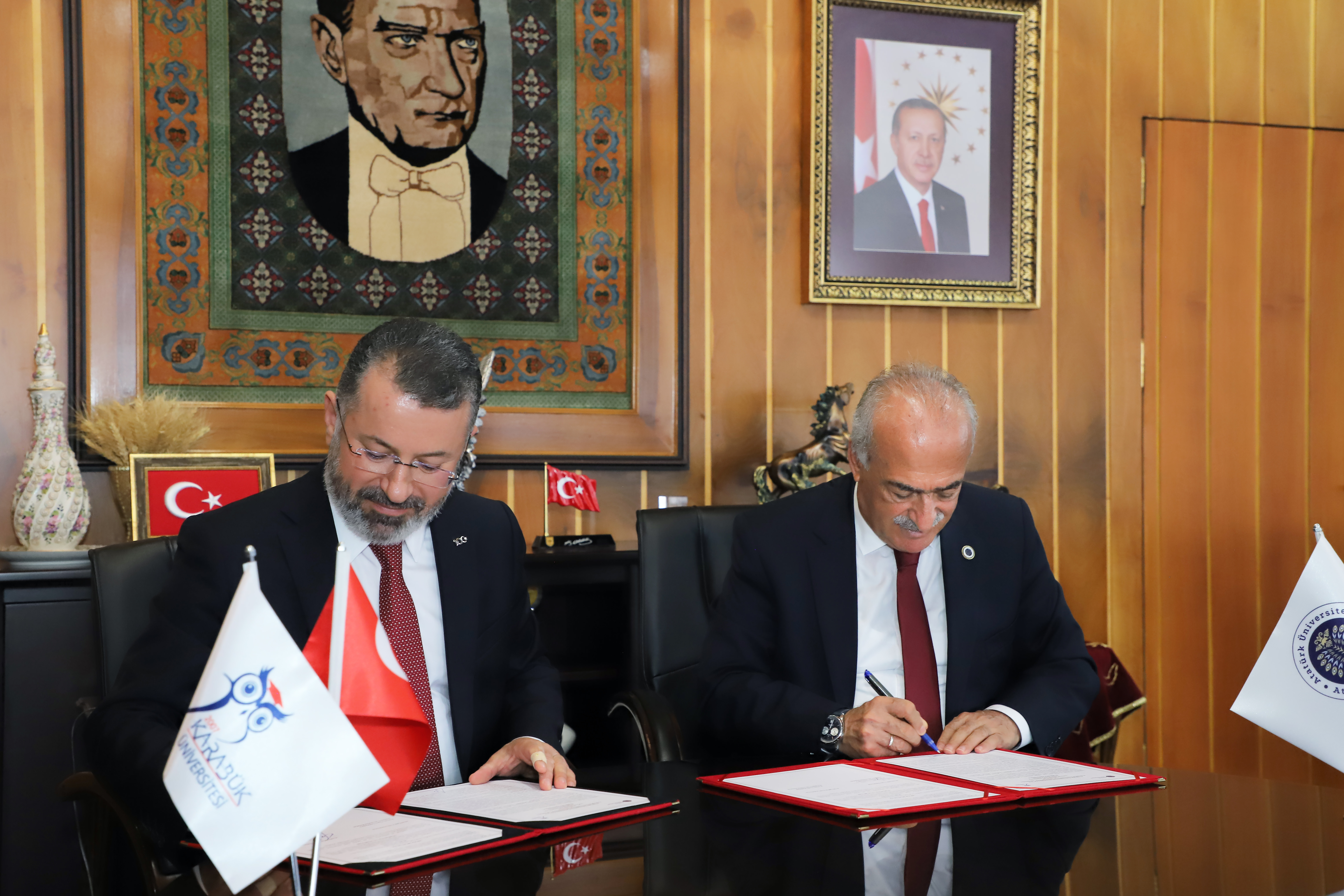 Atatürk University Rector Prof. Dr. Ömer Çomaklı and Karabük University Rector Prof. Dr. Fatih Kırışık signed 3 separate protocols covering the Health Sciences Festival, Social Sciences Festival and academic cooperation between the two universities.