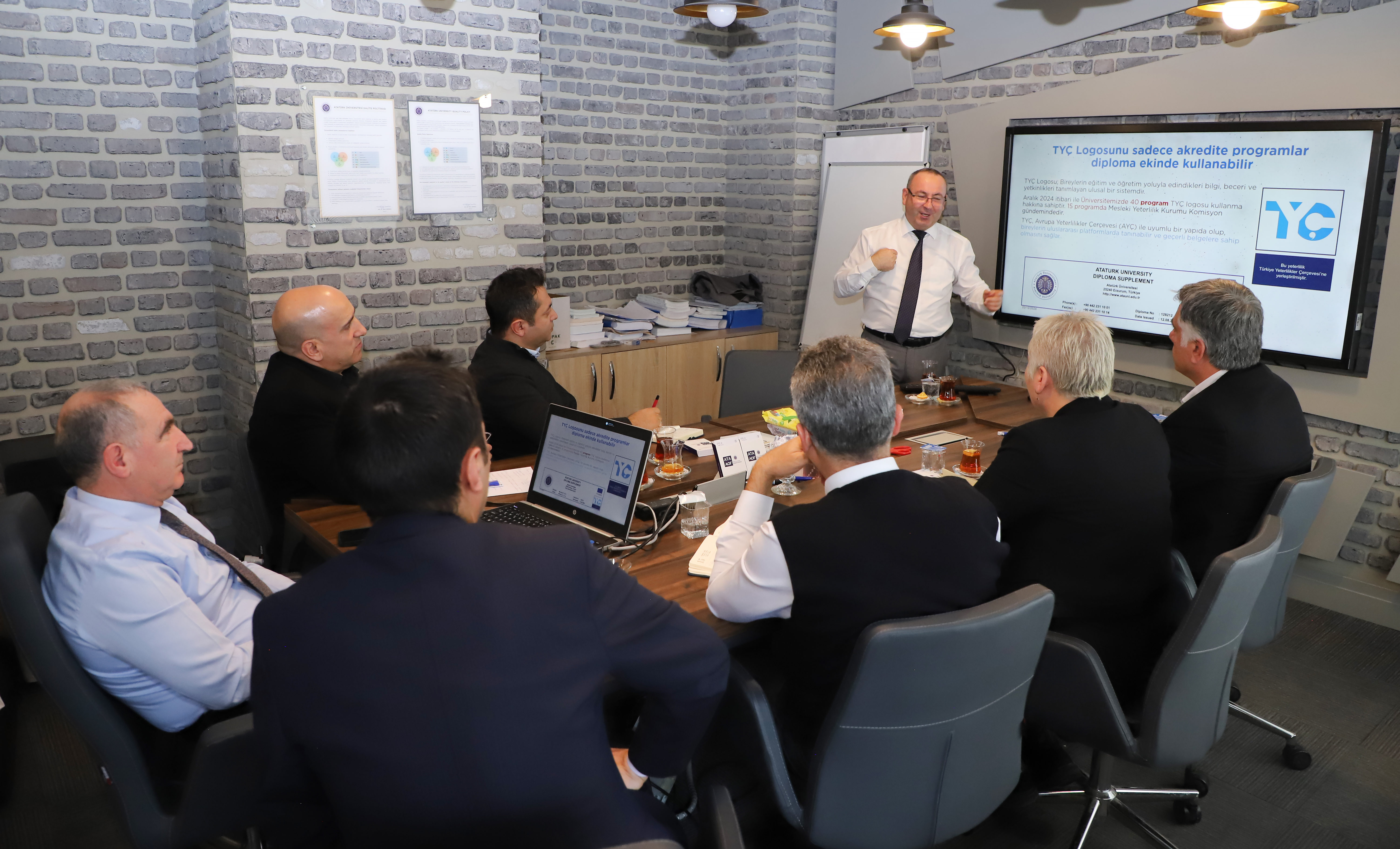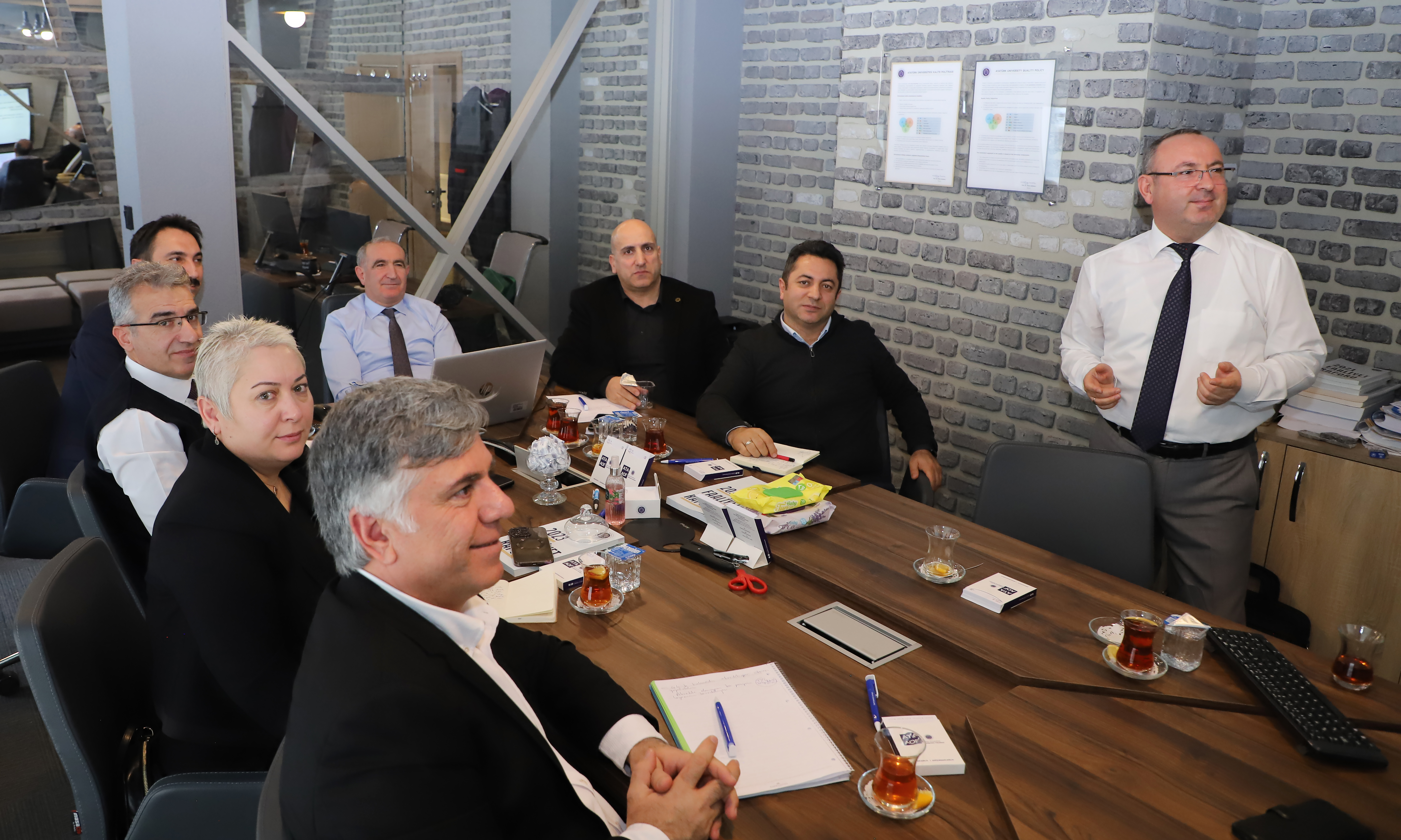 The delegation actively engaged in the meeting from the outset and listened attentively to Atatürk University's success tales in accreditation processes as part of the training that transpired throughout the day. Kars Kafkas University was informed that it would expedite its accreditation efforts following this visit and coordinate these processes with the assistance of Atatürk University.
