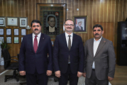 Ahmet Hacımüftüoğlu, the rector of Atatürk University, was visited by Köprüköy Mayor Nevzat Karasu and Horasan Mayor Hayrettin Özdemir, who extended their congratulations. The mayors extended their congratulations to rector Hacımüftüoğlu on his new role and wished him the best of luck during the visit.