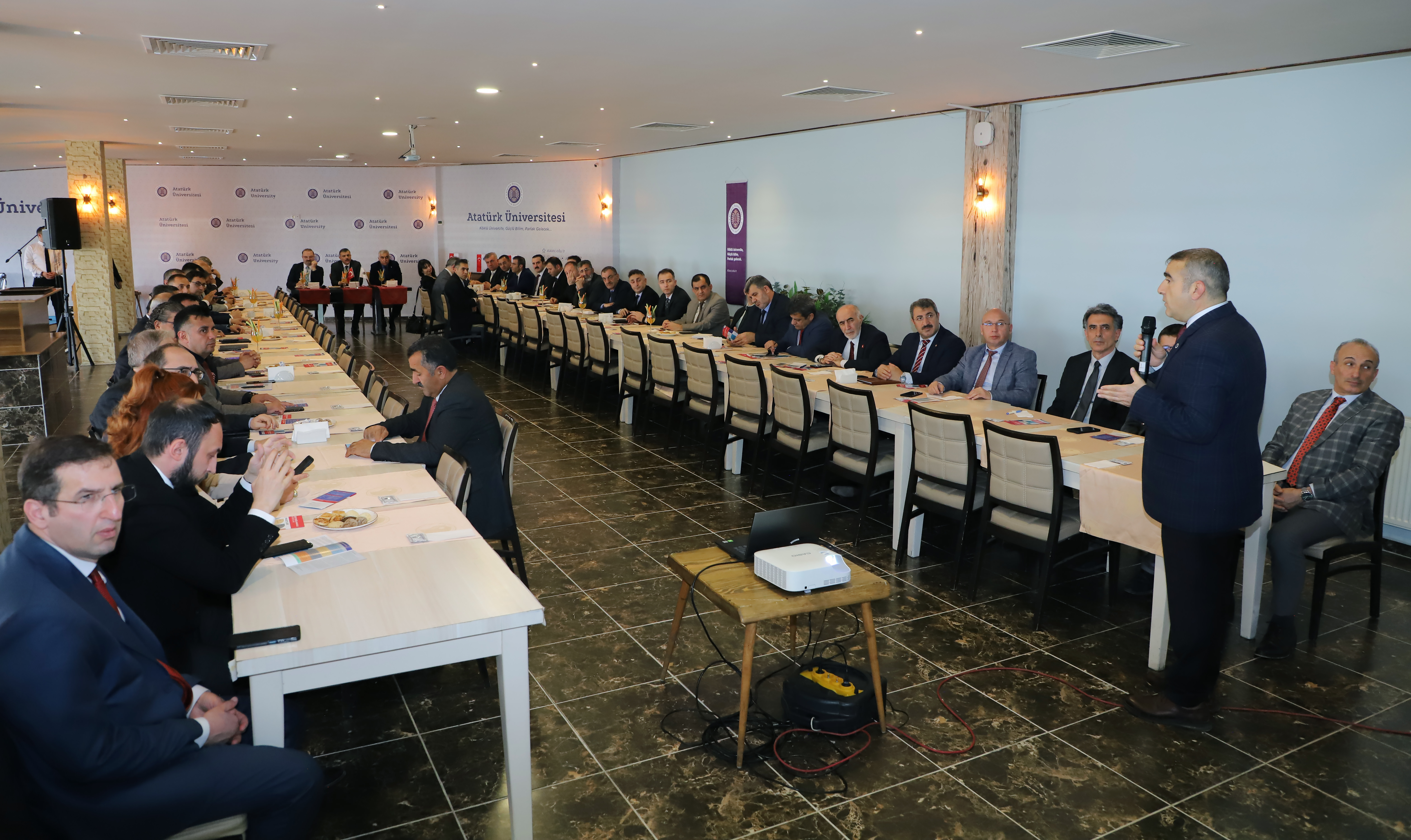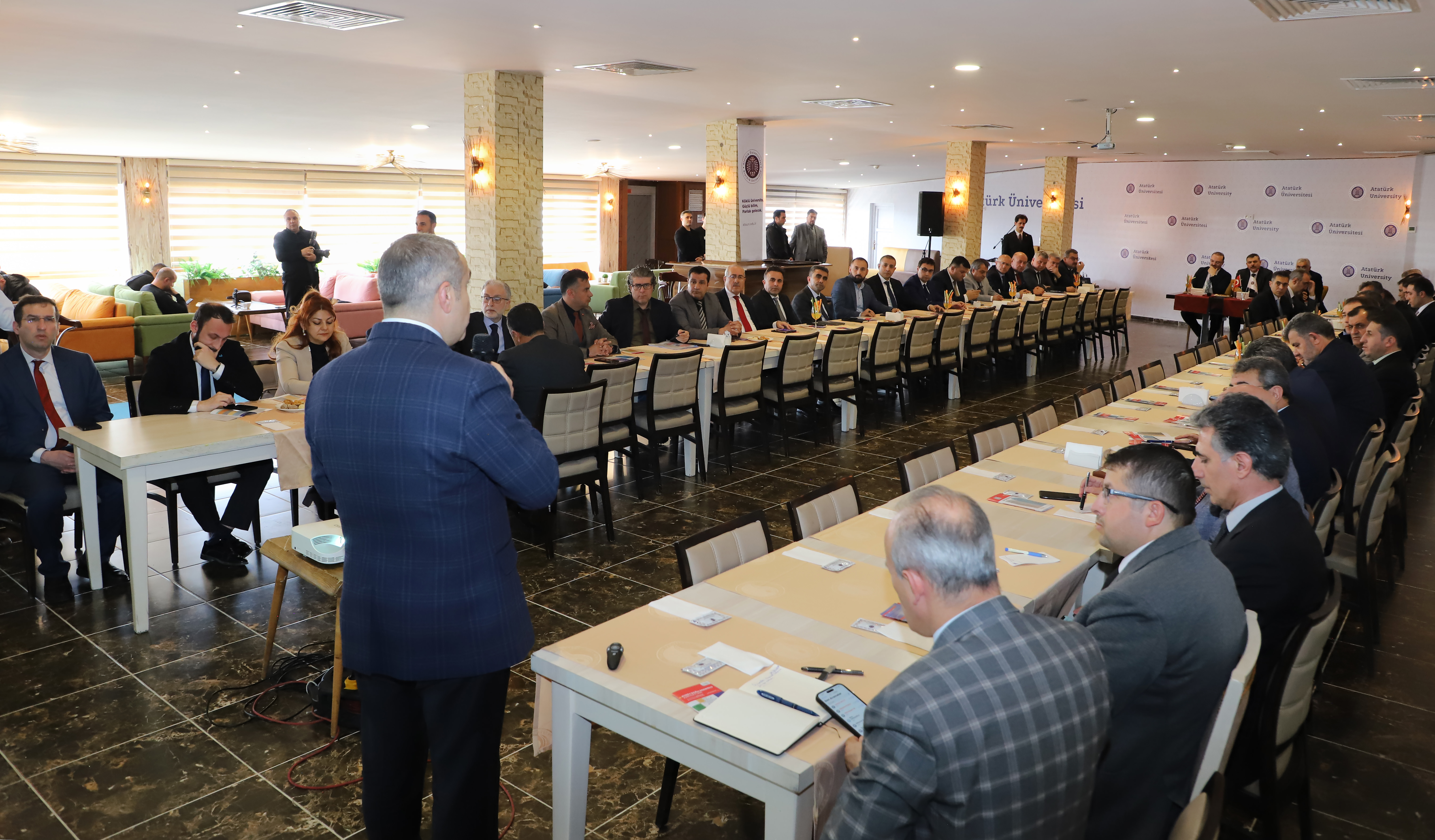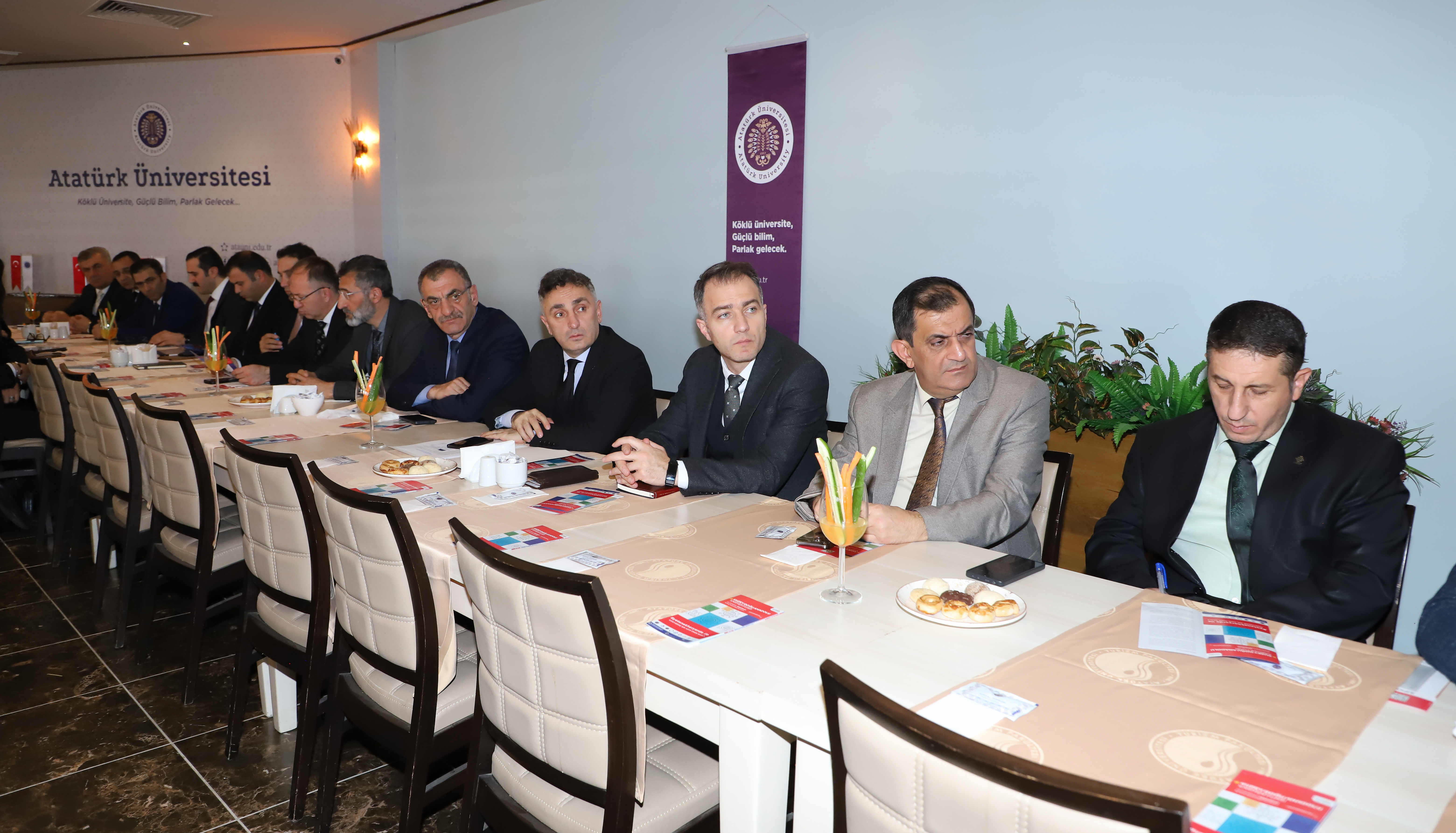 In the context of KUDAKAF'25, Atatürk University Rector Prof. Dr. Ahmet Hacımüftüoğlu convened a second evaluation meeting with the participation of public institution managers and businesspeople, following a meeting with the rectors of regional universities, relevant vice-rectors, and career centre directors. The meeting was chaired by Erzurum Governor Mustafa Çiftçi.