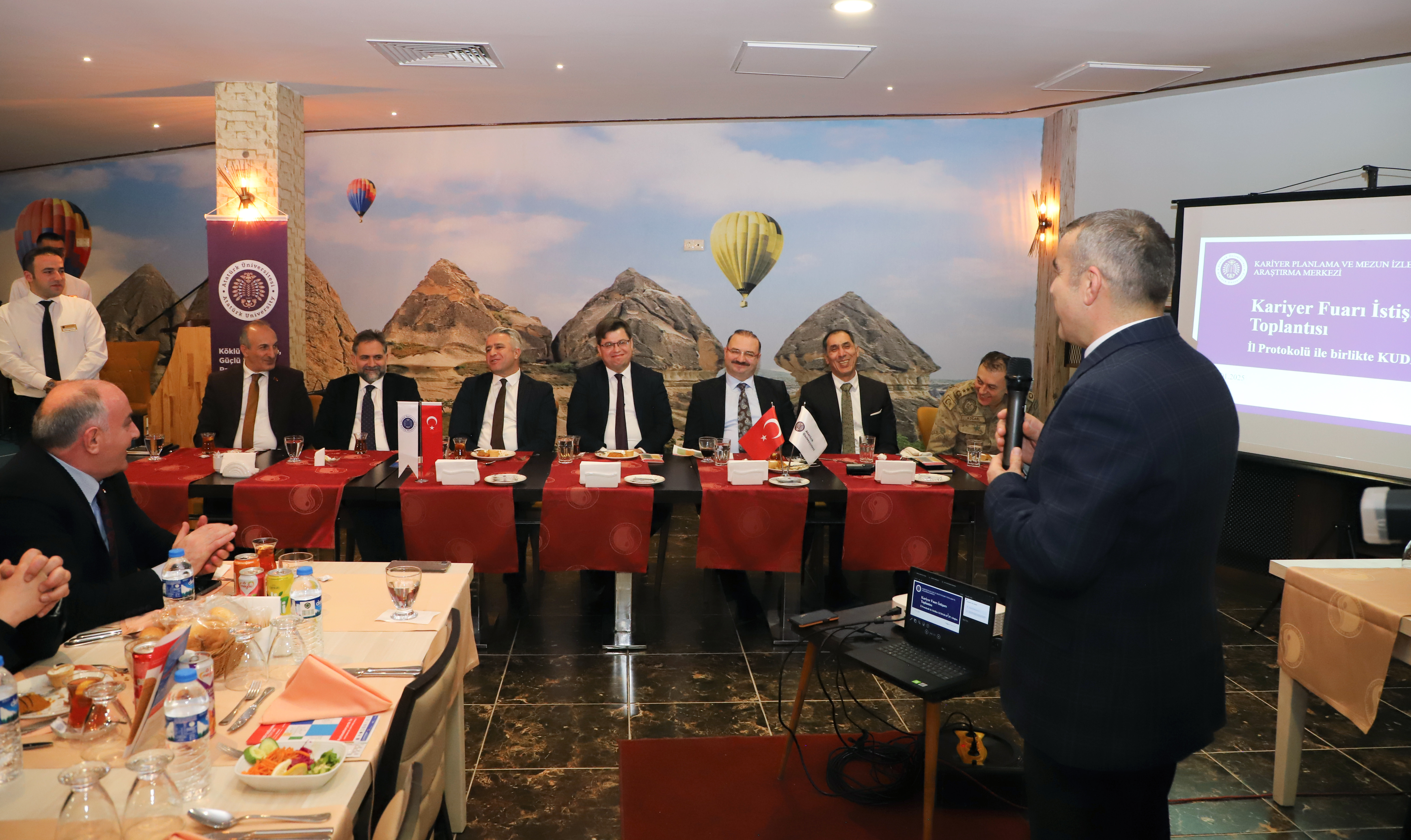 Atatürk University is currently in the process of preparing for the Northeastern Anatolia Regional Career Fair (KUDAKAF’25), which is scheduled to take place on April 18-19, 2025. President Recep Tayyip Erdoğan will be in attendance. At the "Towards KUDAKAF'25 with the Provincial Protocol" meeting, which was organized within this framework, Rector Prof. Dr. Ahmet Hacımüftüoğlu convened with representatives from the business sector and public institution managers.