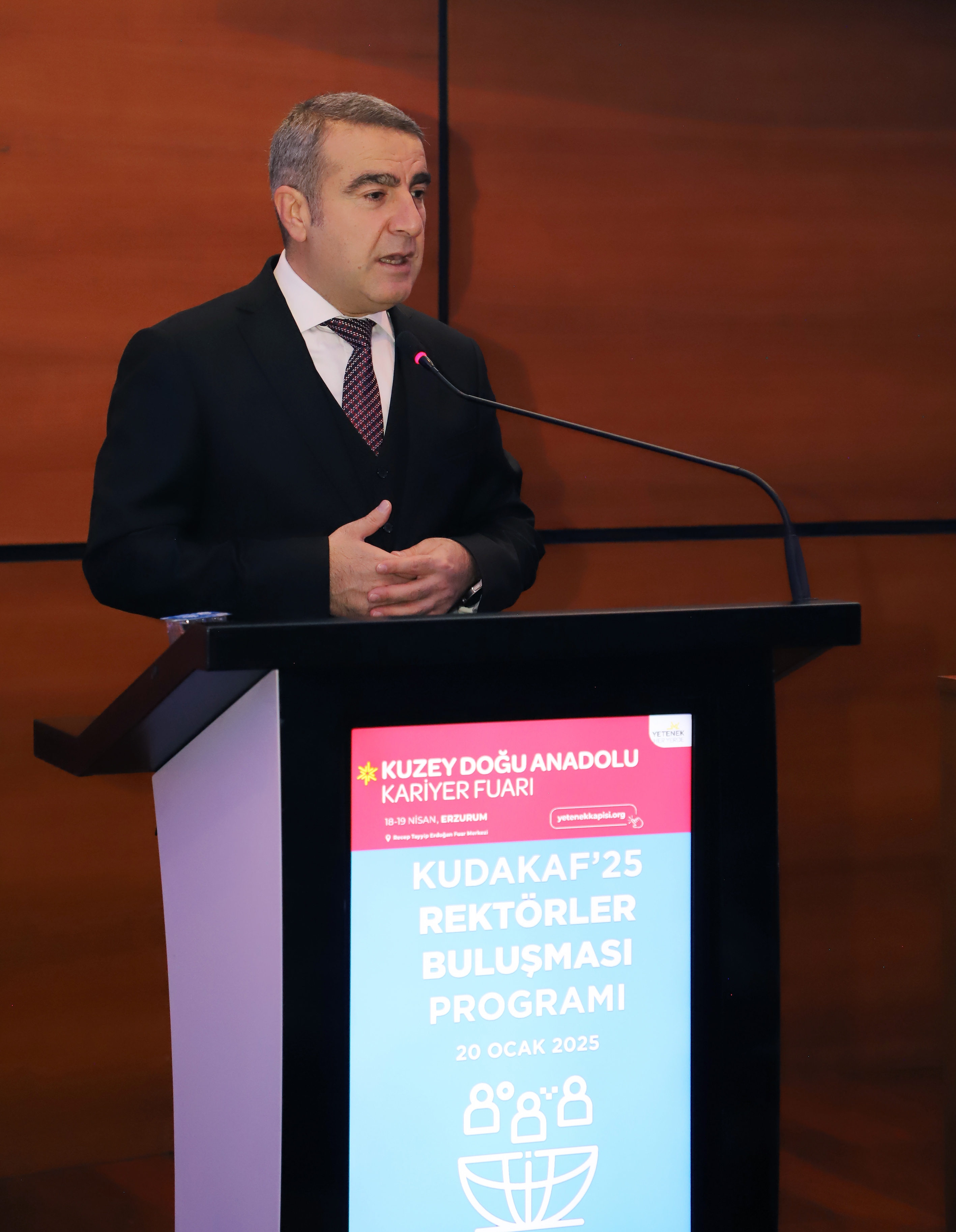 The meeting, which took place in the Prof. Dr. Kemal Bıyıkoğlu Hall of the Cultural Centre, was hosted by Atatürk University Rector Prof. Dr. Ahmet Hacımüftüoğlu, Ağrı İbrahim Çeçen University Rector Prof. Dr. Abdulhalik Karabulut, Ardahan University Rector Prof. Dr. Mehmet Biber, Bayburt University Rector Prof. Dr. Mutlu Türkmen, Bingöl University Rector Prof. Dr. Erdal Çelik, Erzincan Binali Yıldırım University Rector Prof. Dr. Akın Levent and Erzurum Technical University Rector Prof. Dr. Bülent Çakmak, vice rectors and career centre managers attended.