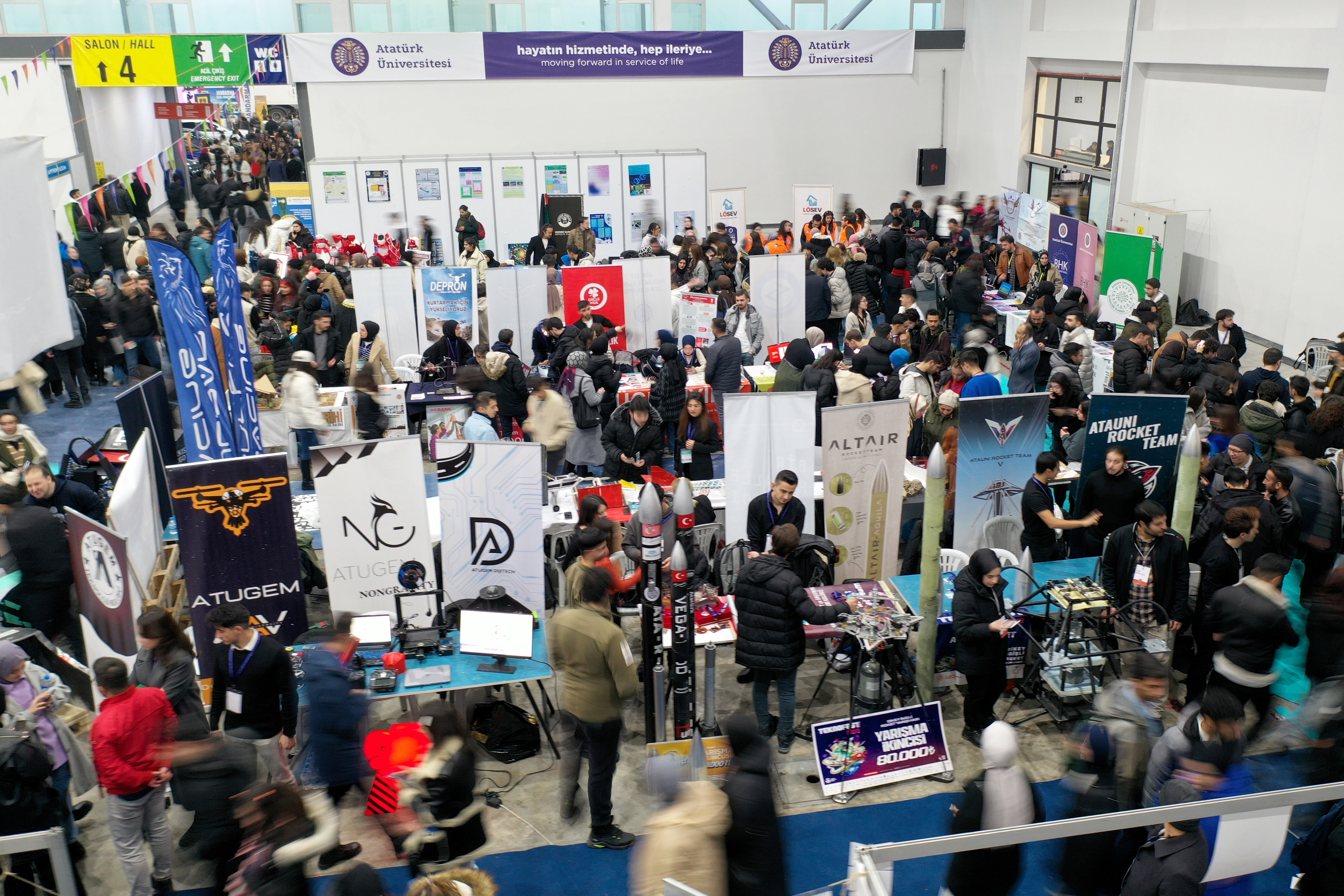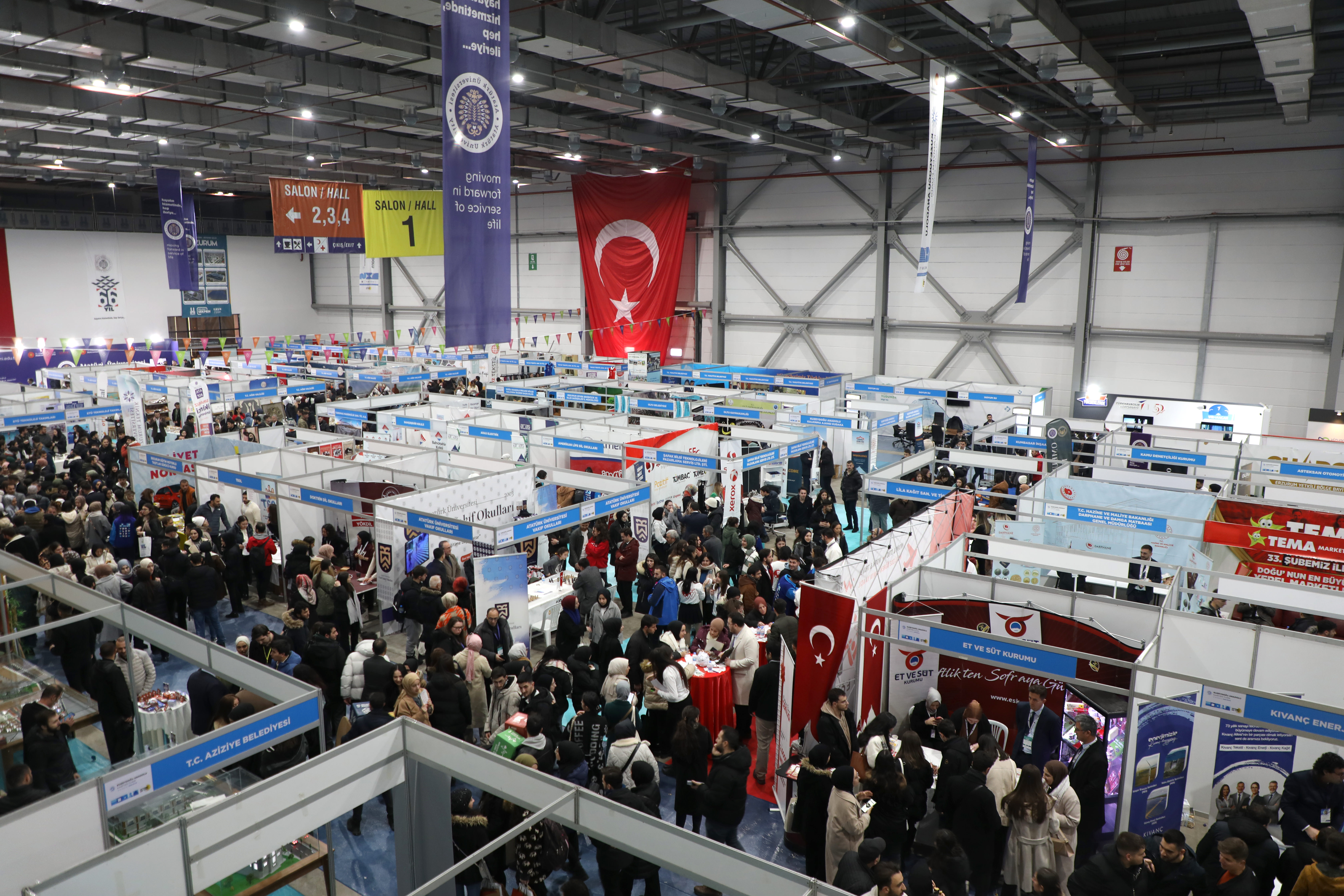 President Atay emphasised that as a result of the steps taken, the number of unemployed young people in the country has decreased by 8 points in the last three years and that career fairs have a great effect on this decrease: ‘91 thousand 270 students have registered to the career fairs held within Atatürk University so far. These young people are constantly receiving information messages about job opportunities and they choose among the offers that suit them. In this process, a total of nearly 2 thousand companies came together with students and graduates. Today, 35 thousand 300 students and graduates registered and entered the event area. We anticipate that 50 thousand students will meet with 379 companies at the end of the event. In the light of this information, a very productive fair awaits us again. I would like to thank everyone who contributed once again and wish our students and sector representatives a good fair.’
