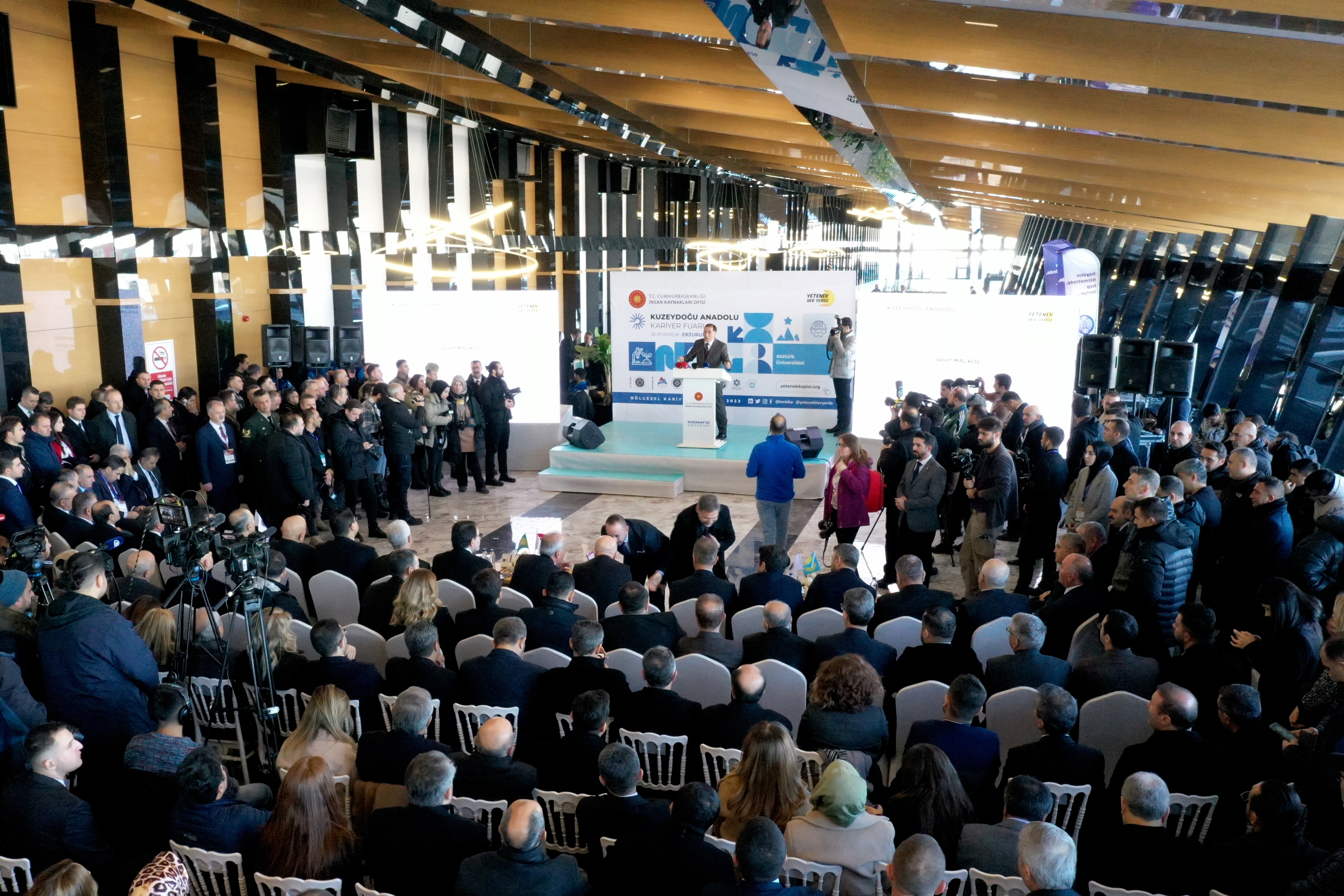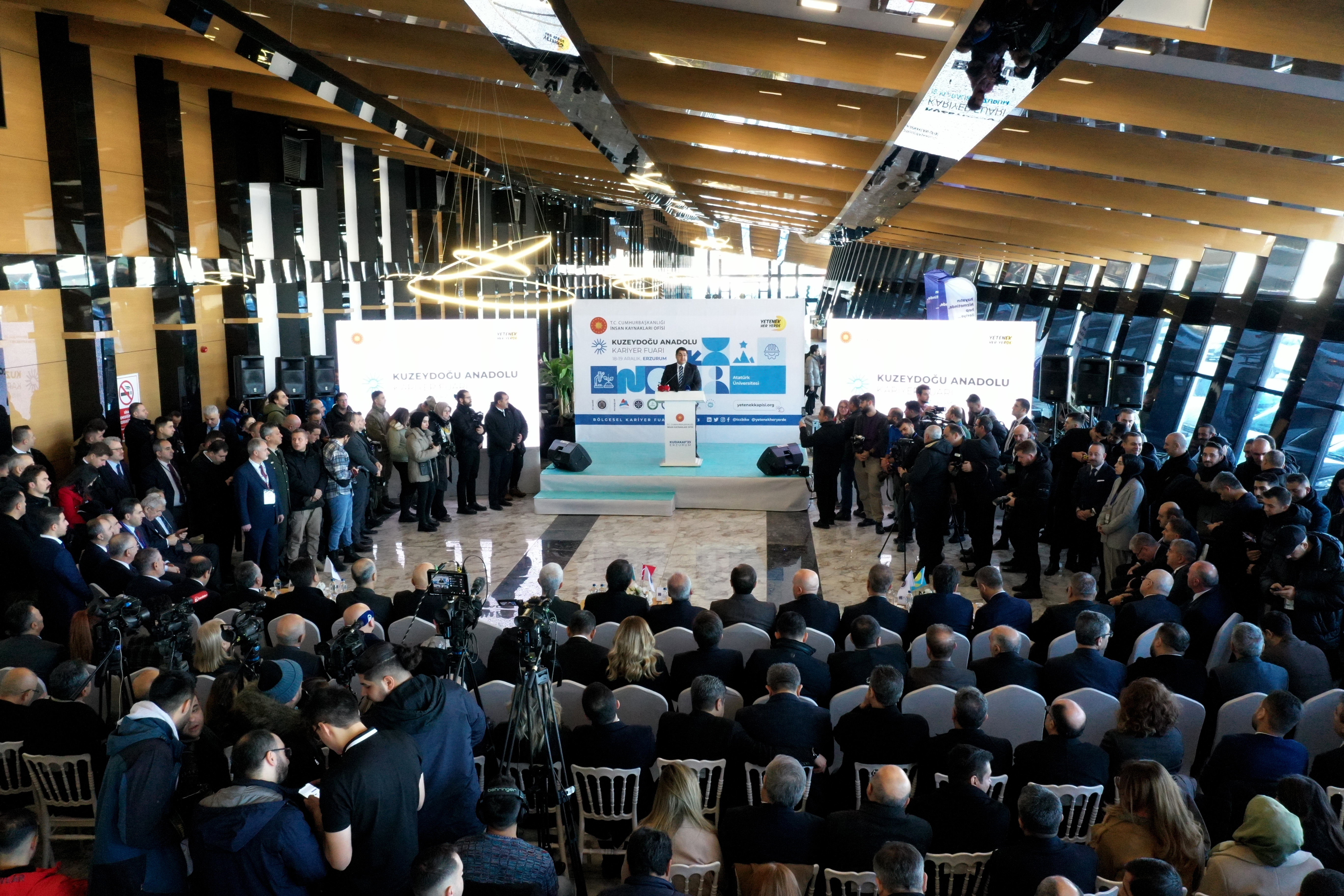 The Northeast Anatolia Career Fair (KUDAKAF'23), organised under the coordination of the Presidential Human Resources Office (CBİKO), hosted by Atatürk University and with the stakeholders of regional universities, started with an intense participation.