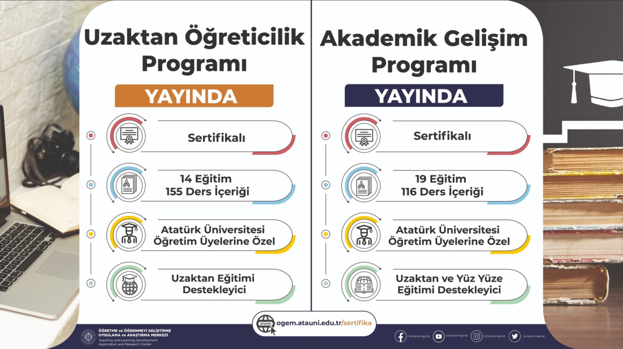 ATA-ÖGEM conducts two main certificate programmes asynchronously, namely academic development and distance teaching certificate programmes, which support diversity in education and contribute to the continuous development of instructors. These programmes, which support face-to-face and distance education, aim to provide the skills and knowledge required by academics in today's dynamic educational environment.