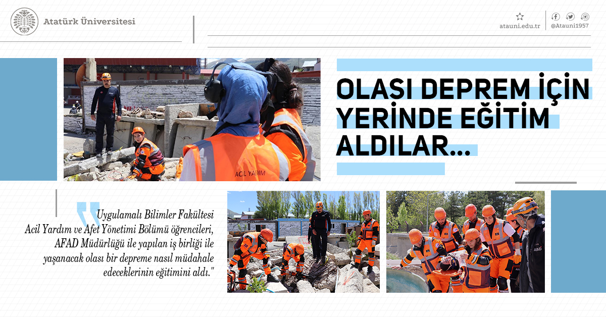 Six days of theoretical and practical instruction were provided to students of the Emergency Aid and Disaster Management Department through a program organized by Atatürk University and the Erzurum AFAD Directorate.