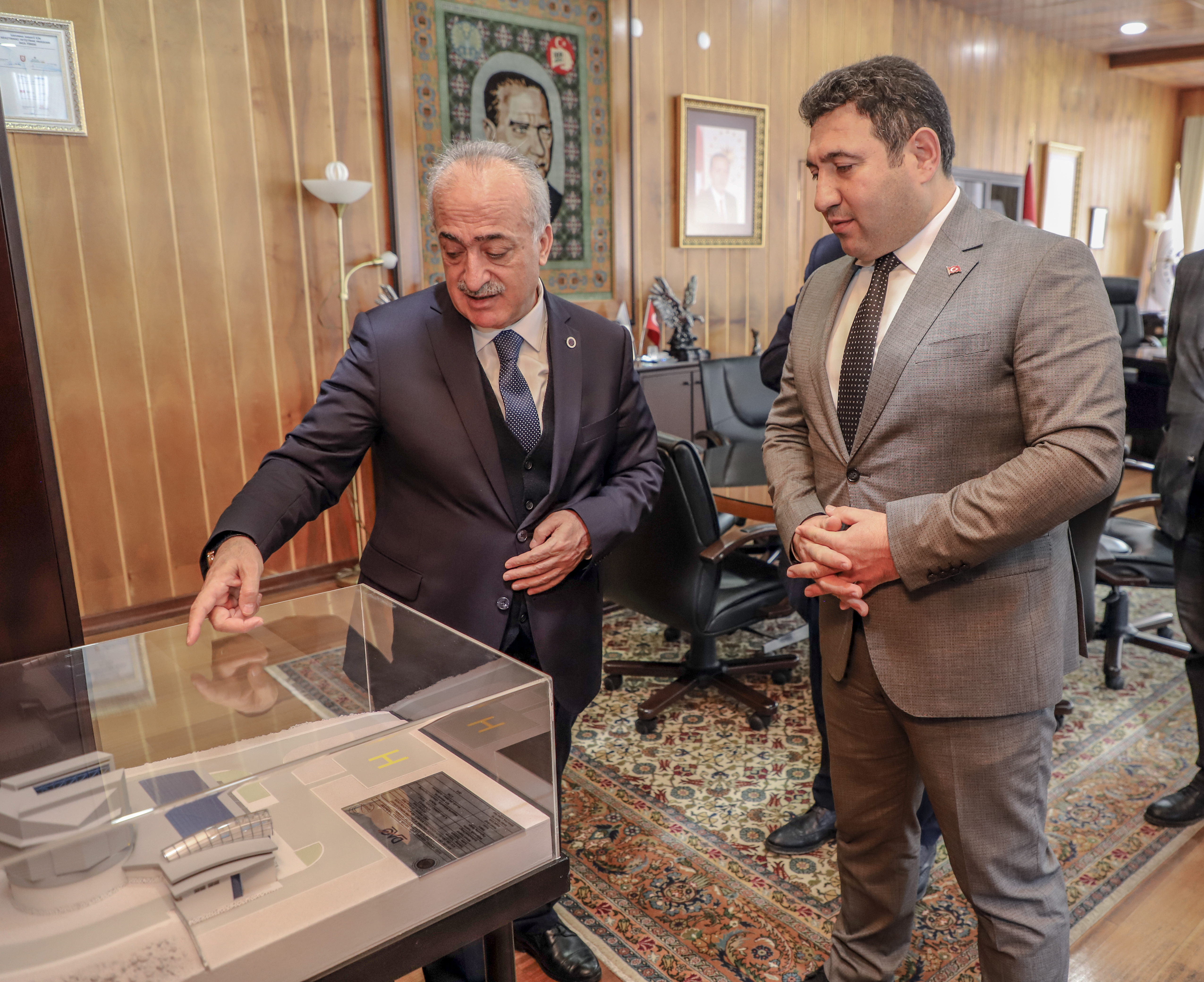 During his visit at the Rector's Office, he thanked Rector Çomaklı for Atatürk University organizing a conference on an important subject such as Syria. Muğlu informed Rector Çomaklı about the issues he would talk about at the conference.