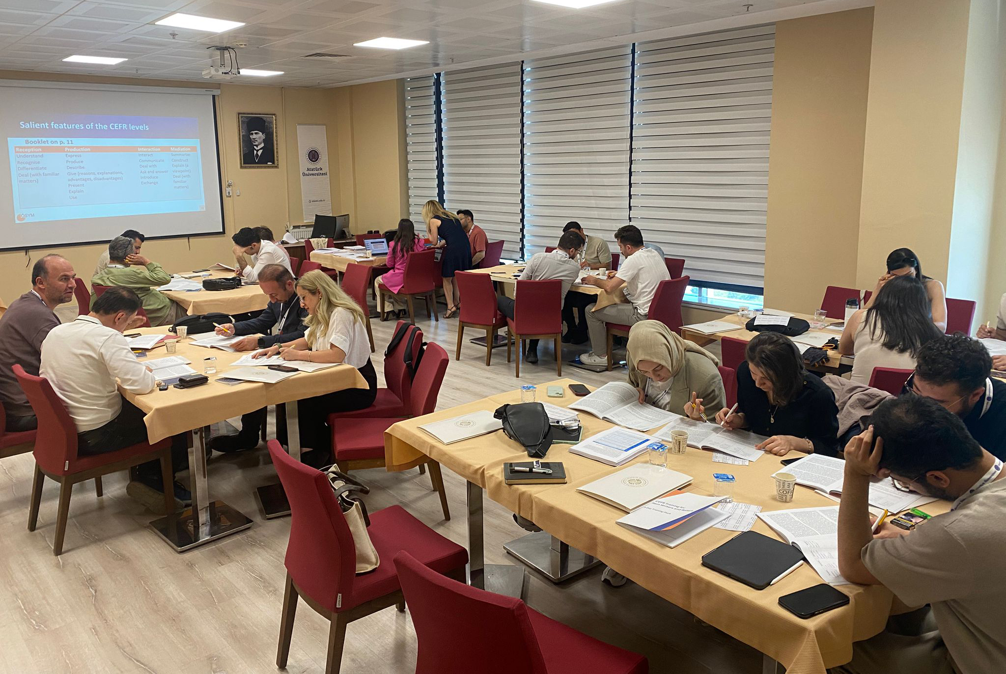The CEFR training was designed as a three-day intensive program to meet the unique requirements of ÖSYM. It was organized to train expert trainers who will participate in the question preparation process for the exam and assess reading and listening skills within the Electronic English Proficiency Exam (e-TEP), a new exam format. Participants were officially assigned through their institutions, despite the fact that the training procedure was conducted under a confidentiality agreement.