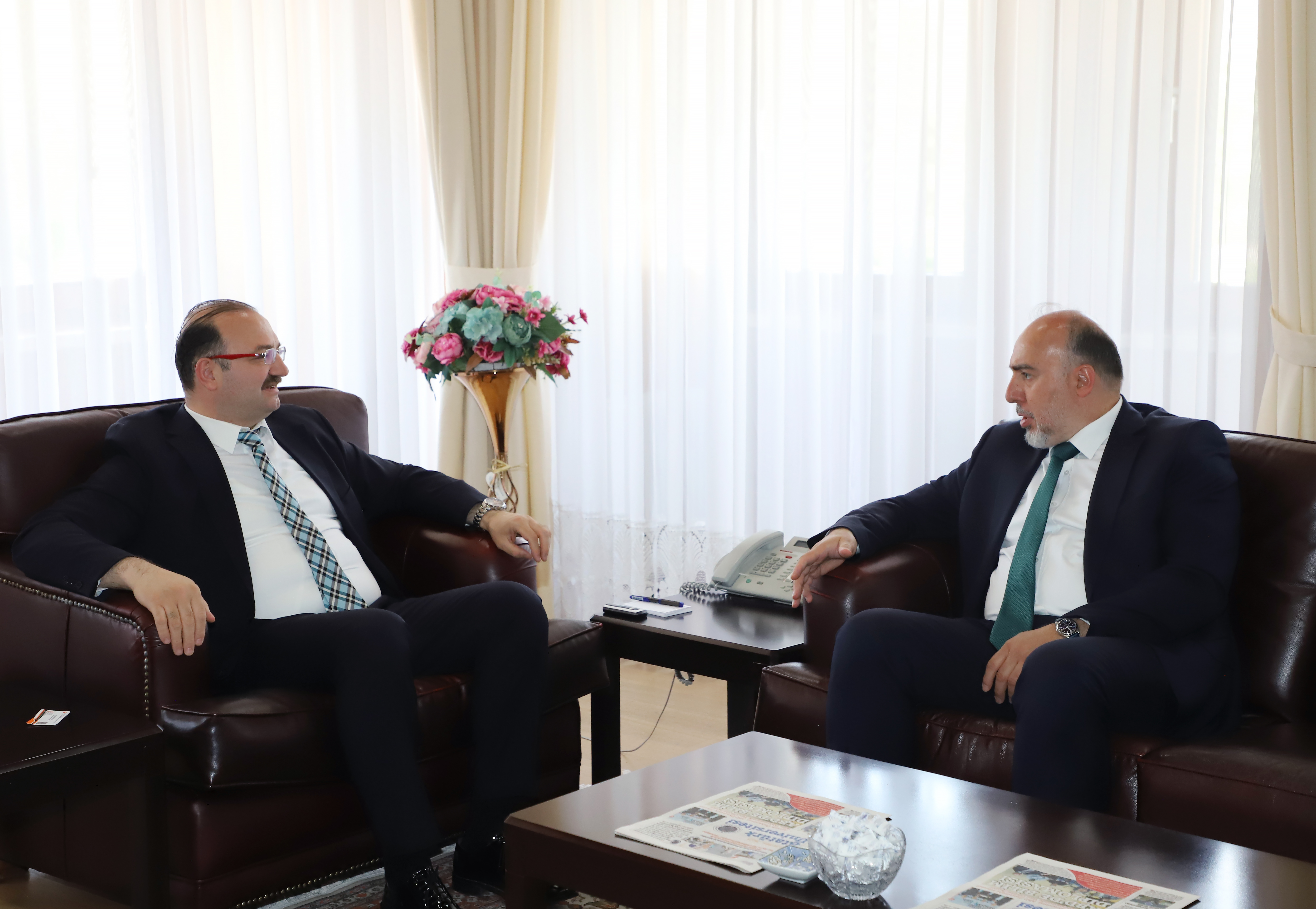 Dr. Nida Kırömeroğlu, the Head of the ÖSYM Foreign Language Exams Department, conferred with Atatürk University Rector Prof. Dr. Ahmet Hacımüftüoğlu during her visit to the university as part of the CEFR Training. The meeting examined potential collaborations within the context of the university's location among ÖSYM's exam centers, its technical apparatus, and academic expertise.