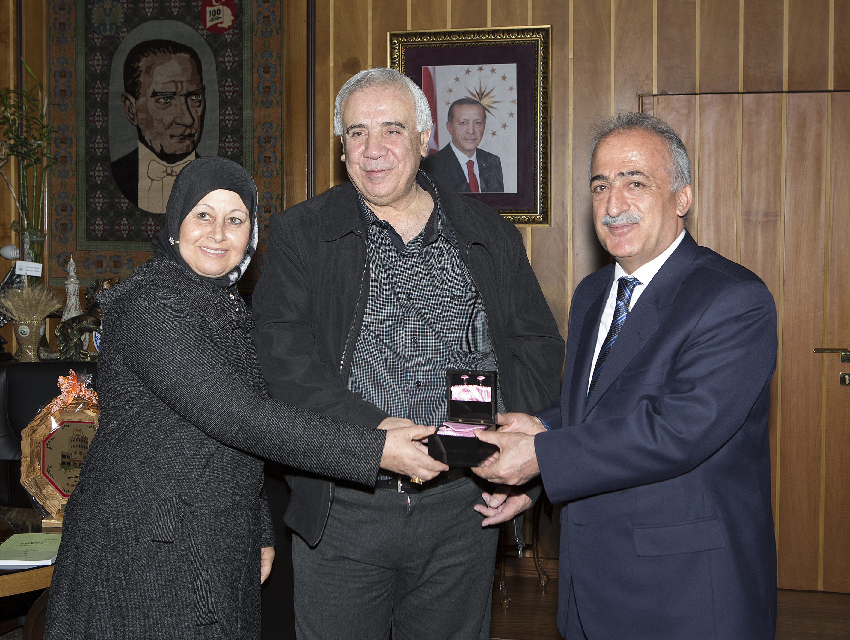 The book “Hicri Onuncu Asırda Yenilik ve Değişim Hareketi: Taşköprüzade Örneği ve Bazı Risalelerinin Tenkitli Neşri” which was prepared by AL-Qasemi Language Academy as result of the agreement which was signed before between AL-Qasemi Academy and Ataturk University was given as a gift to Rector Çomaklı by Prof. Bashar Saad.