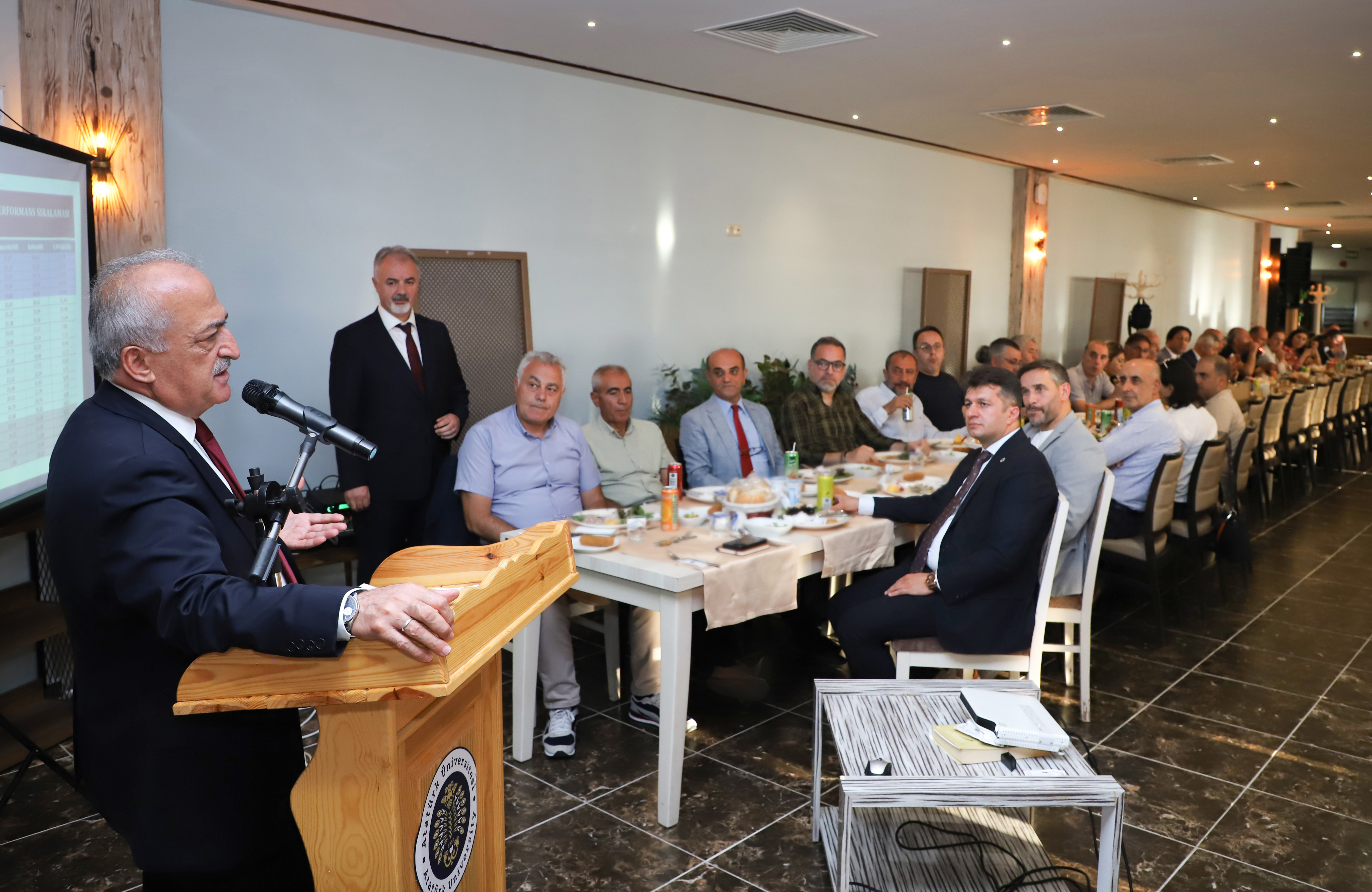The academic and administrative activities of the university were the subject of discussion at the meeting that took place at the Ata Application Hotel. Prof. Dr. Ömer Çomaklı provided an overview of the university's recent accomplishments and advancements. The studies that focused on the enhancement of educational quality, the promotion of scientific research, and the reinforcement of international cooperation were highlighted in this context.