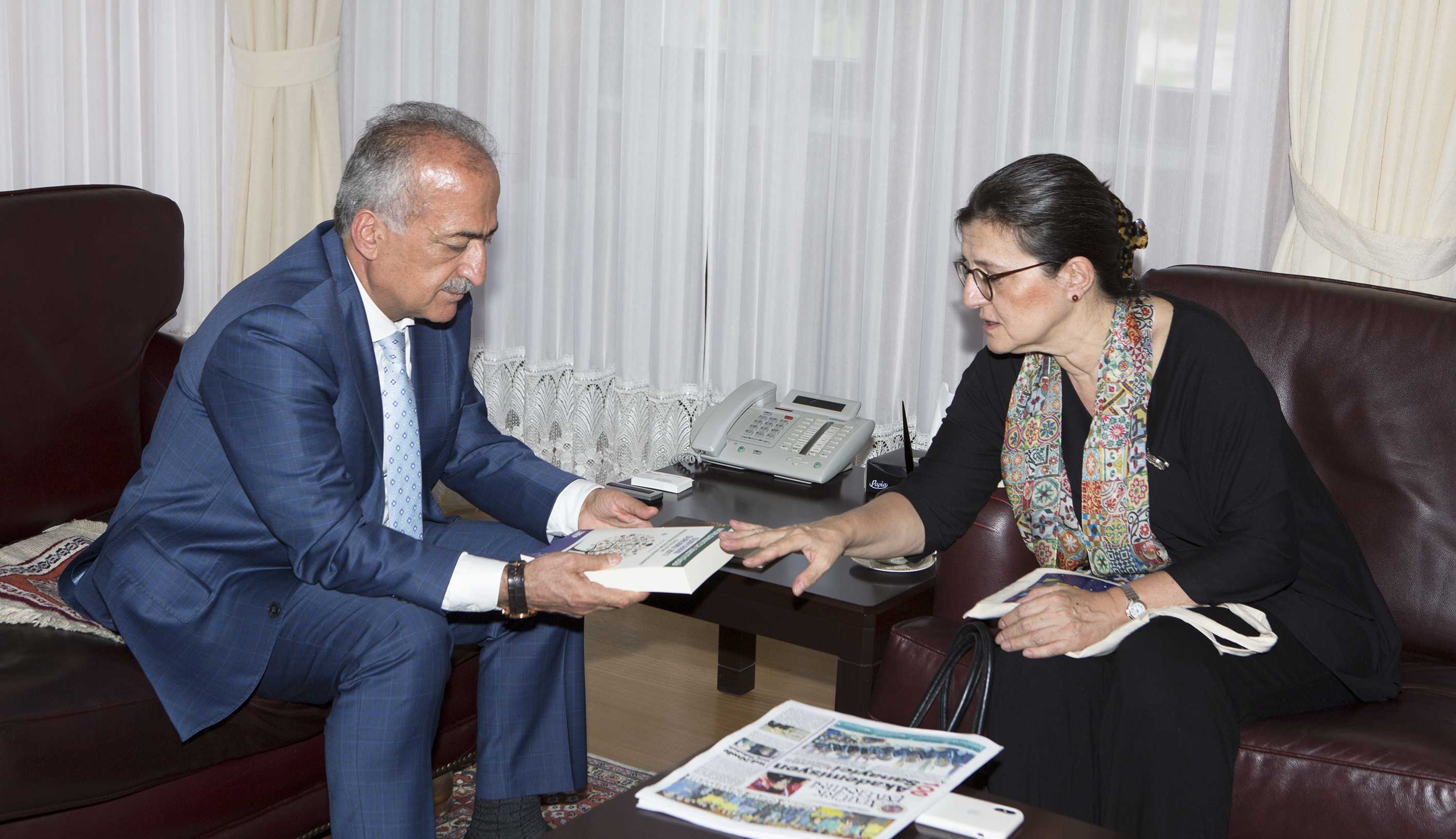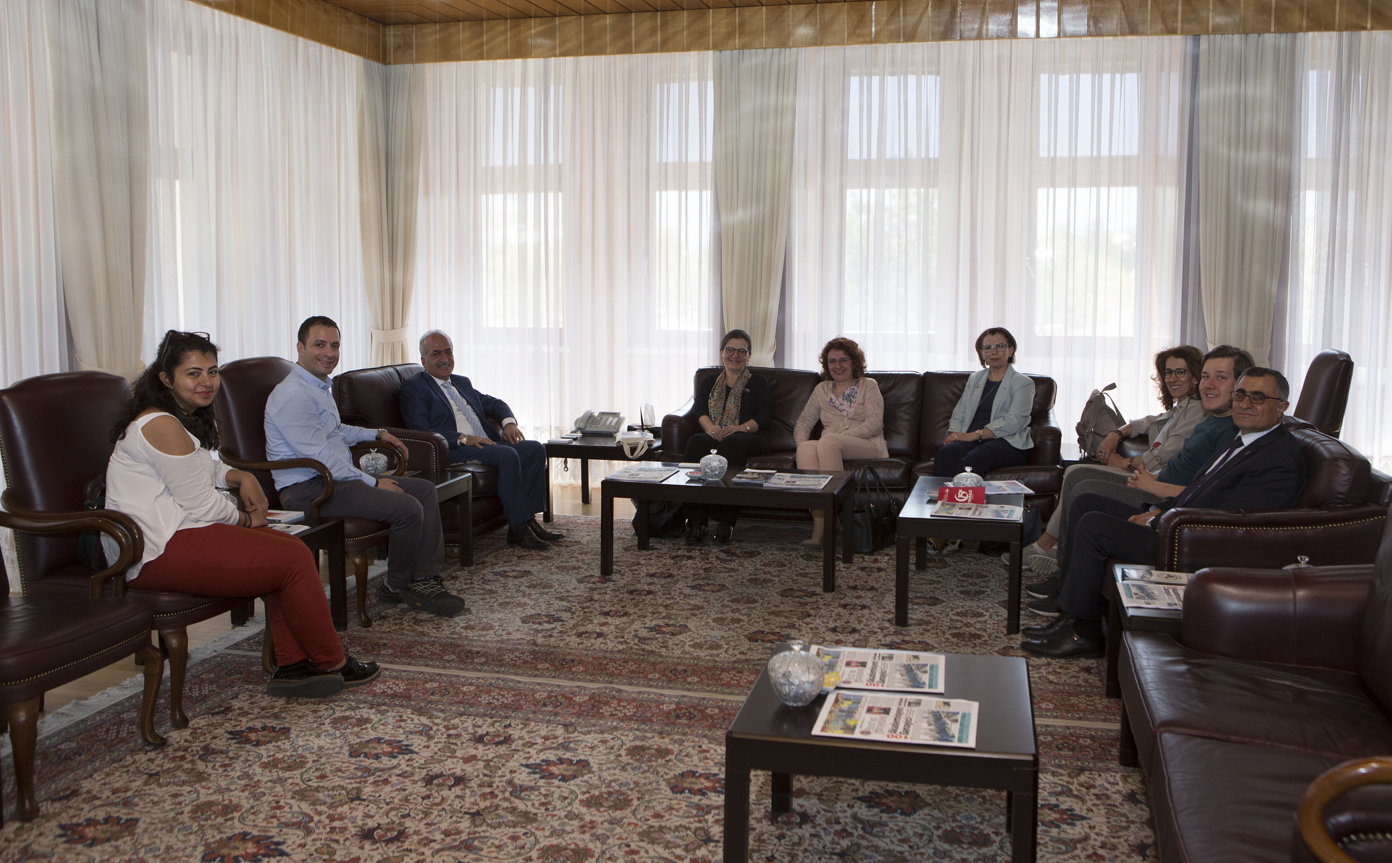 The CEO of Turkish Foundation for Combating Erosion Reforestation and the Protection of Natural Habitats (TEMA) Deniz Ataç and the accompanying committee visited the Rector of Ataturk University Prof. Dr. Ömer Çomaklı in his office.