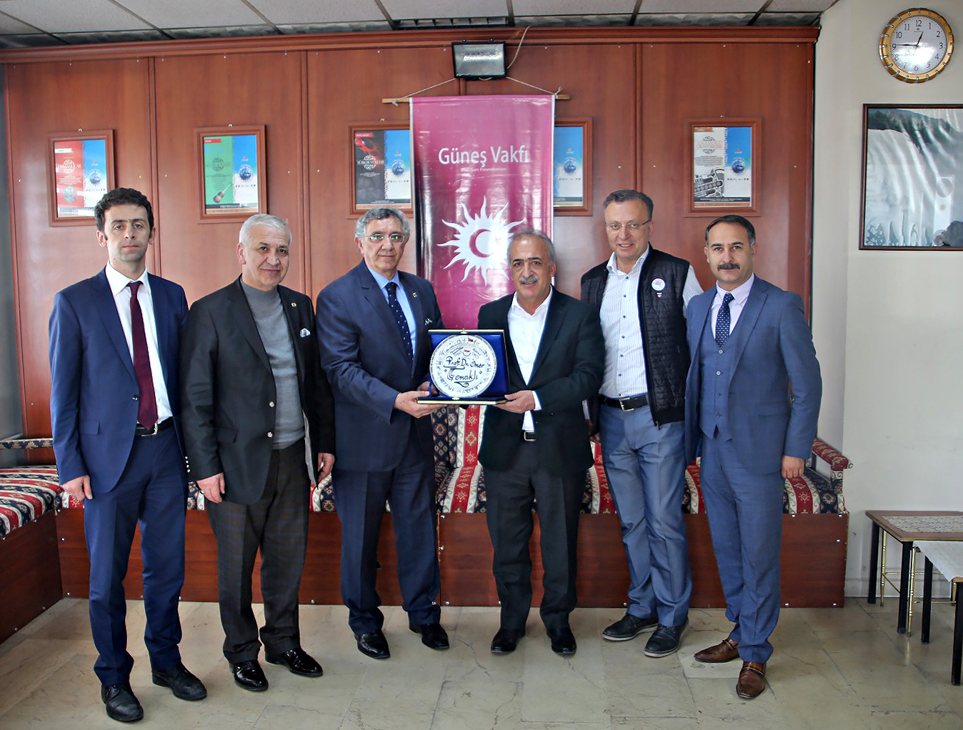 Prof. Dr. Ömer Çomaklı, the President of Atatürk University, paid a visit to Güneş Foundation. The President Çomaklı who pays visits to foundations, associations and non-governmental organizations within the framework of 'University-Society Meeting' mission came together with Prof. Dr. Alpaslan Ceylan, the chair of Güneş Foundation and the board.