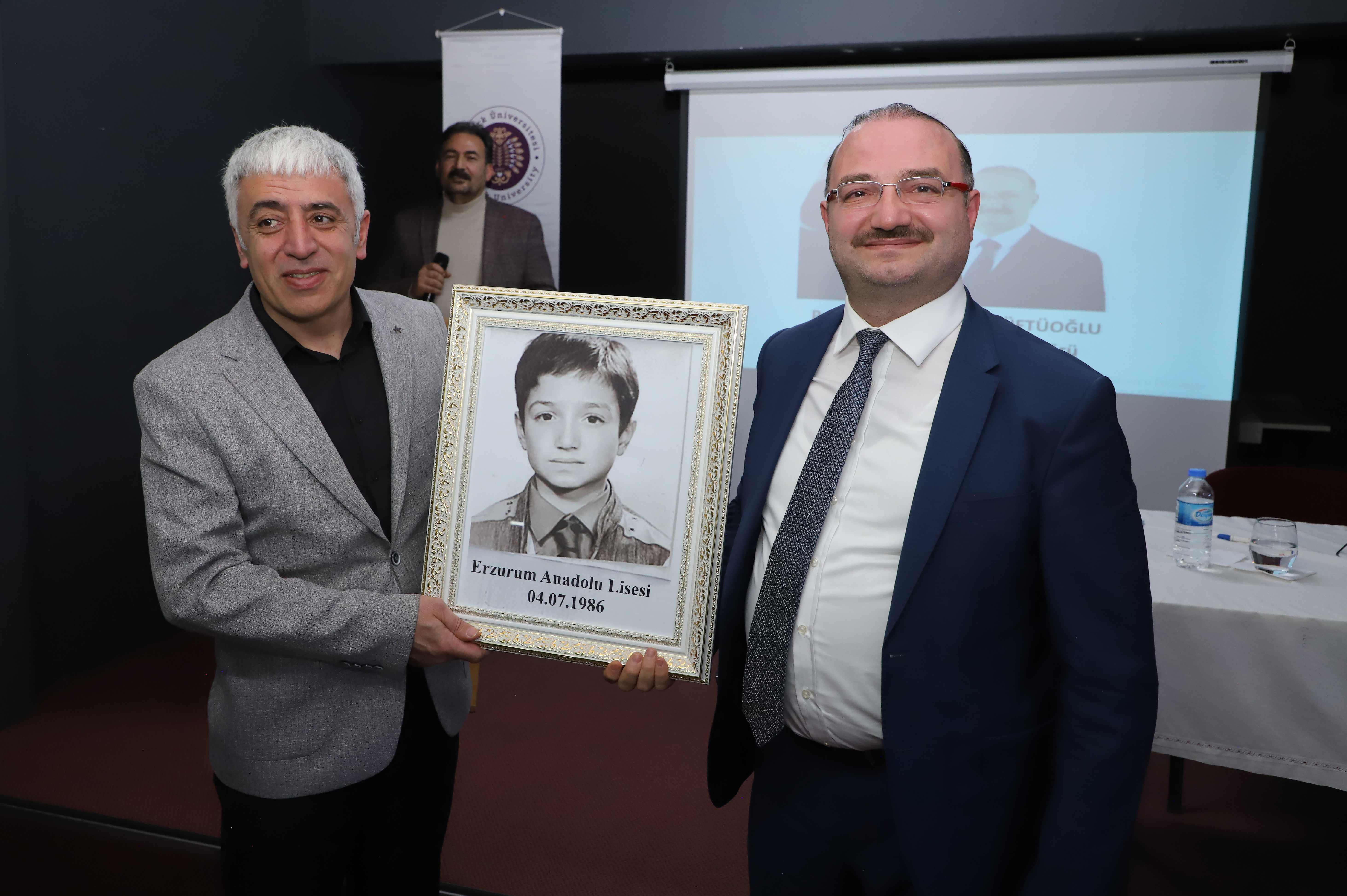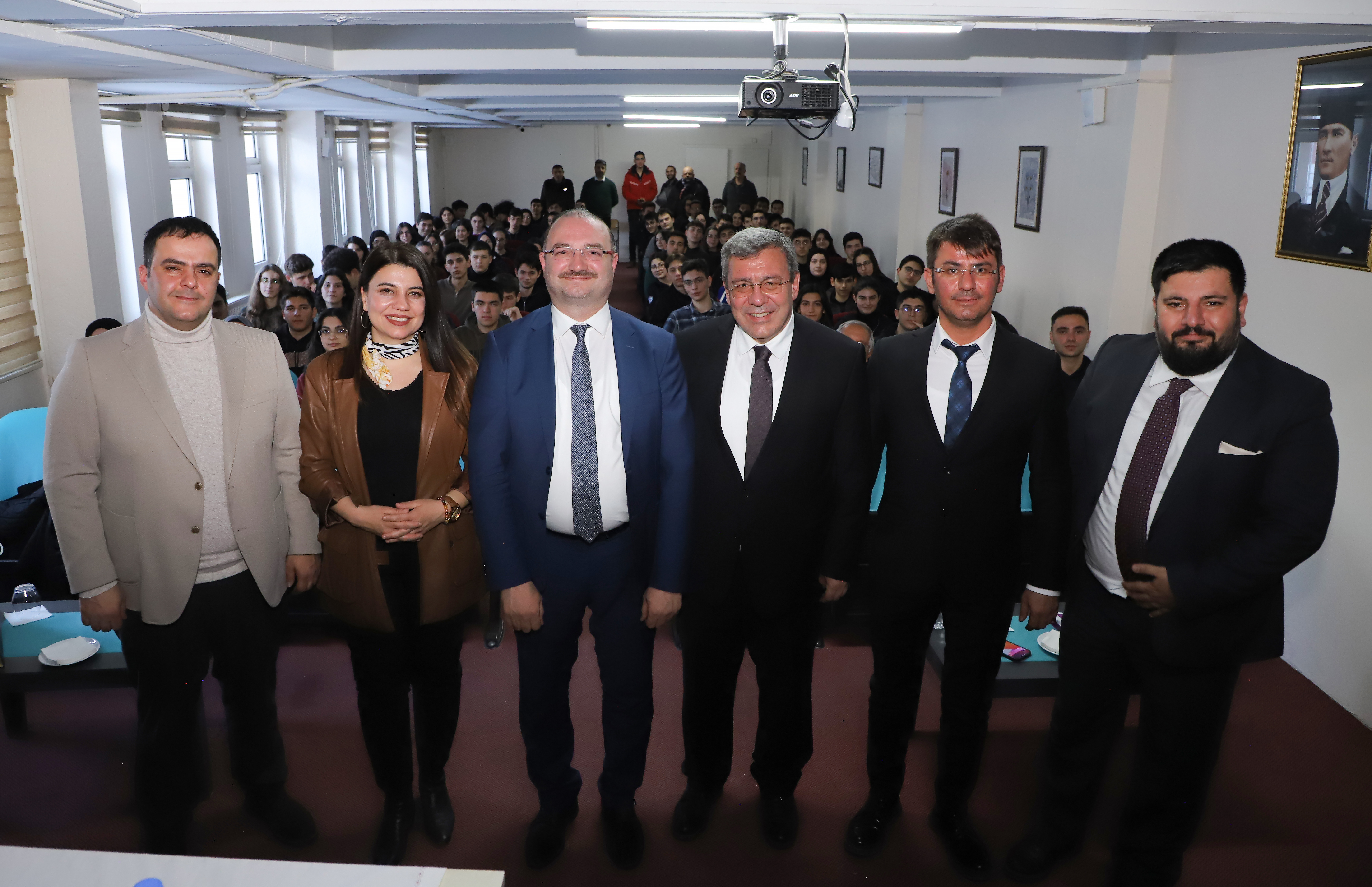 The discussion continued as Rector Hacımüftüoğlu addressed the students' inquiries regarding their inquiries. The photo that Rector Hacımüftüoğlu gave him during his matriculation in high school was presented to him by School Principal Hikmet Polat at the conclusion of the program. Hacımüftüoğlu expressed his gratitude to the school administration and the students for this unexpected and emotional experience, and he also posed for a commemorative photo.