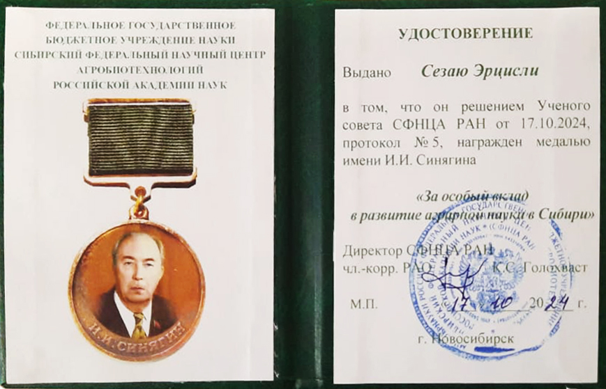 At a meeting on October 17, 2024, the Russian Academy of Sciences, which is affiliated with the Ministry of Science and Higher Education of the Russian Federation, awarded Prof. Dr. Sezai Ercişli, a faculty member of the Horticulture Department of the Faculty of Agriculture at Atatürk University, the 2024 Irakly Sinyagin Medal for his contributions to world agricultural science, his international success in science, and his effectiveness in international relations.
