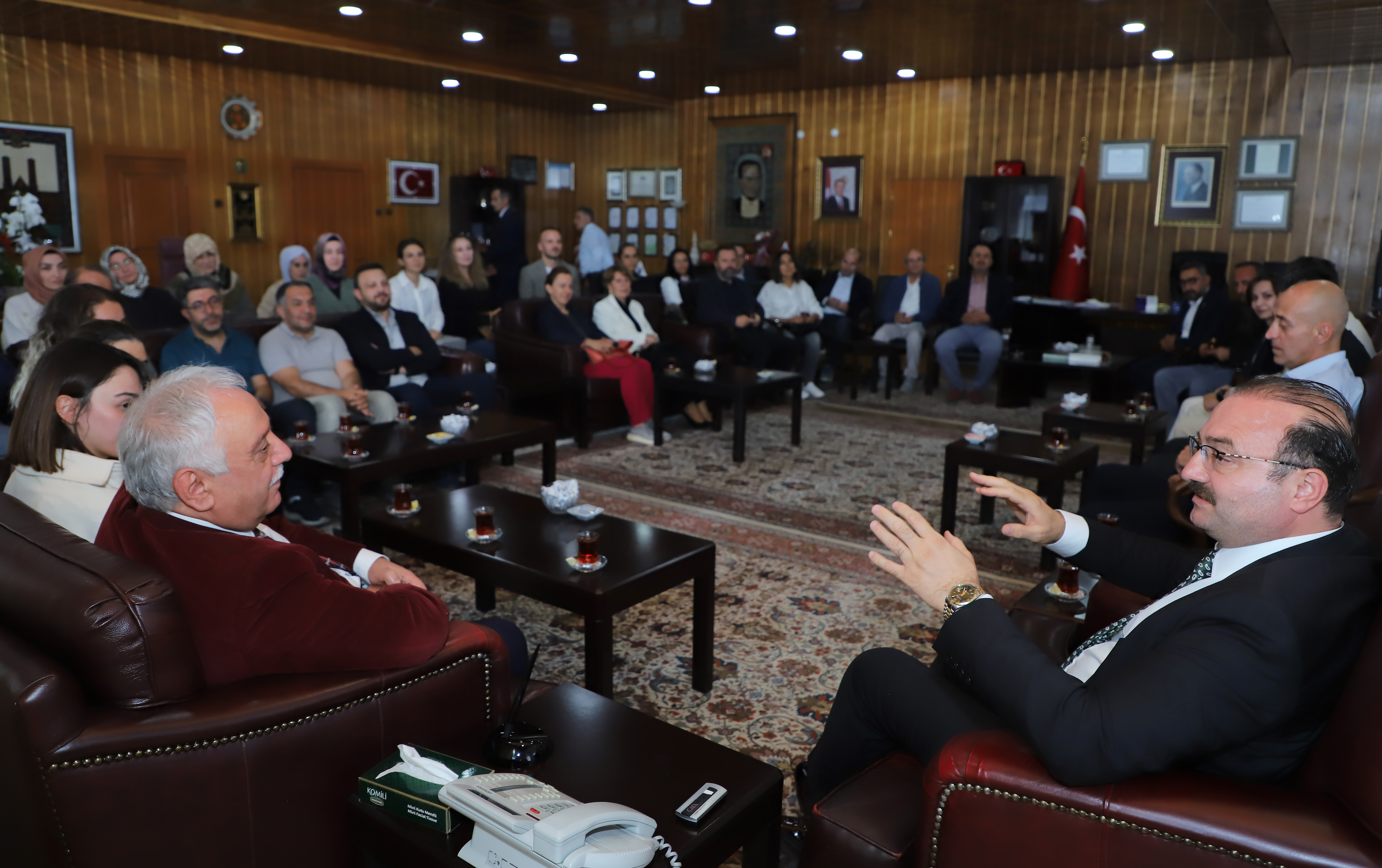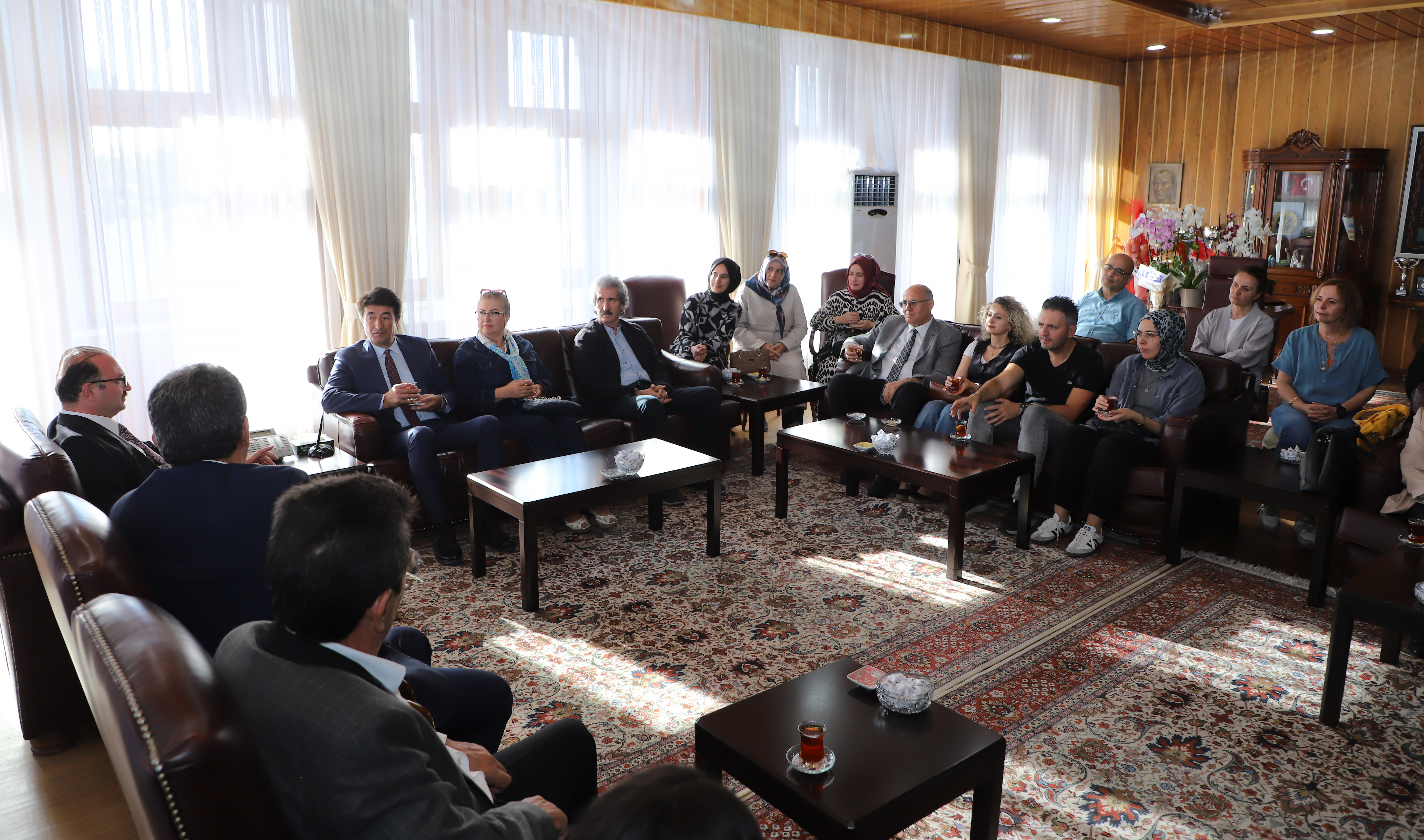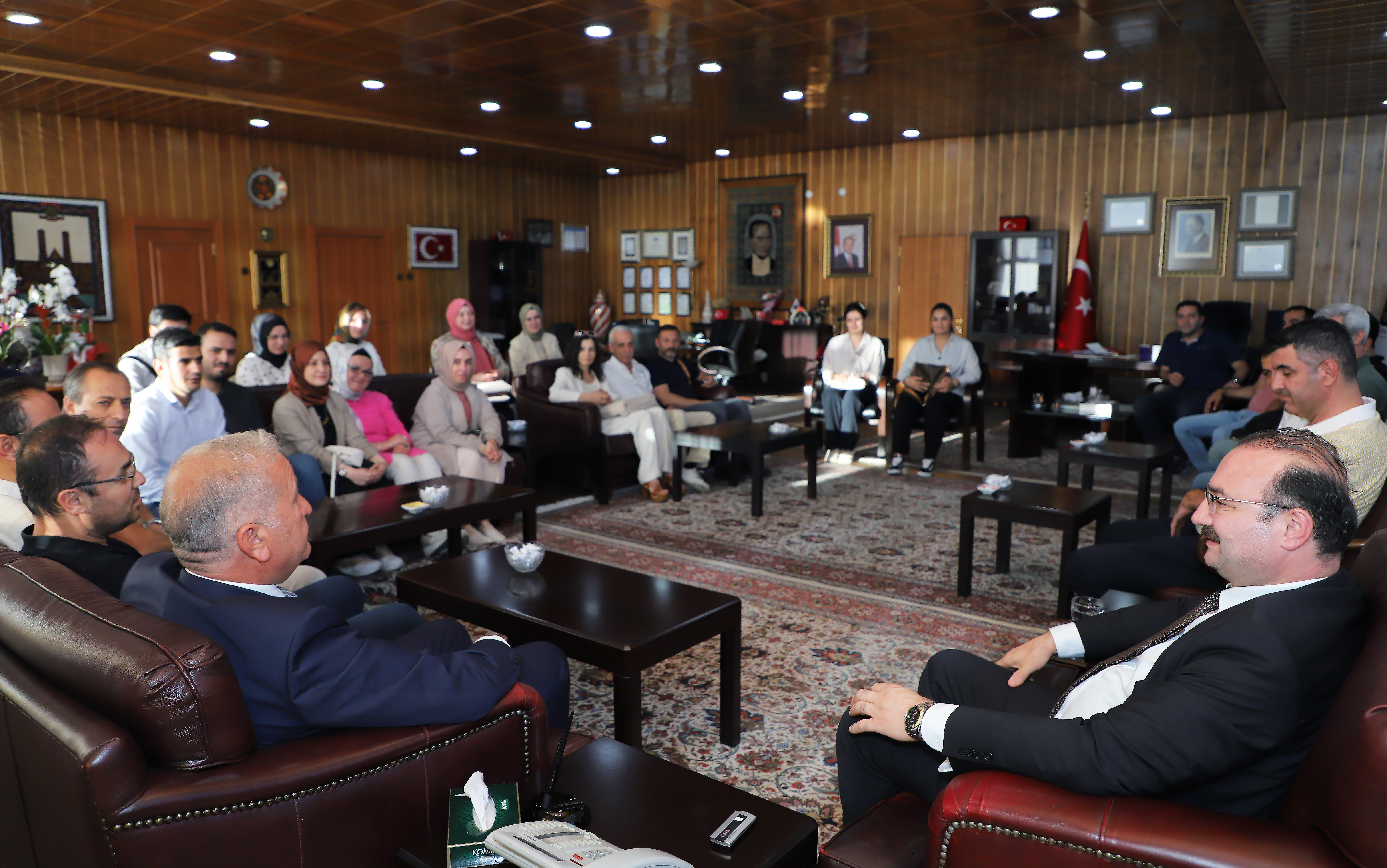 Within the framework of his congratulatory visits, Rector Prof. Dr. Ahmet Hacımüftüoğlu of Atatürk University continues to convene with public institution managers, academic and administrative staff, students, and representatives of civil society organizations, associations, and foundations to contribute to the development of the university and the region. The university's mission of serving as a gateway to society is fortified by the consultation meetings conducted within this framework, which also reinforce the concept of acting with common sense.