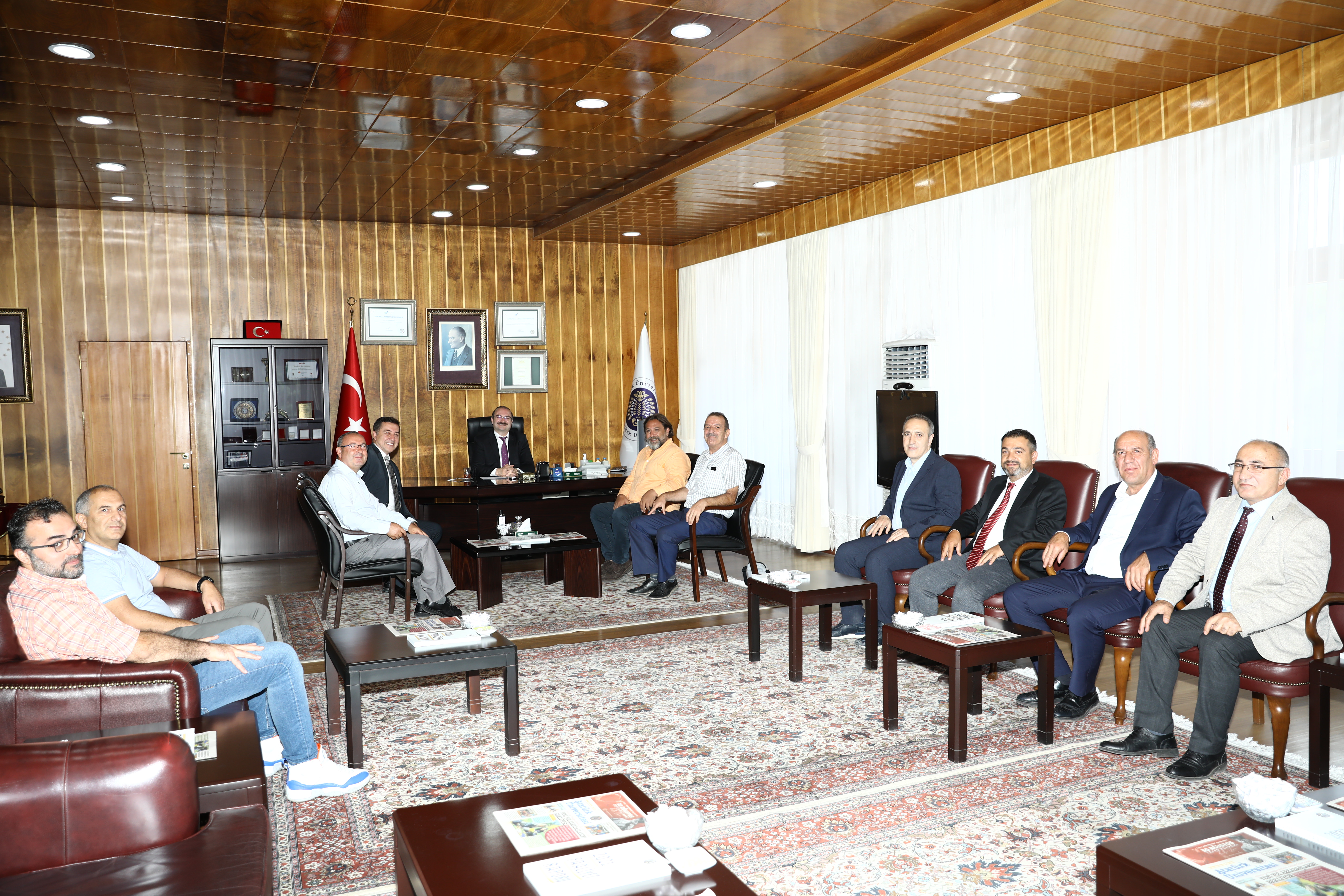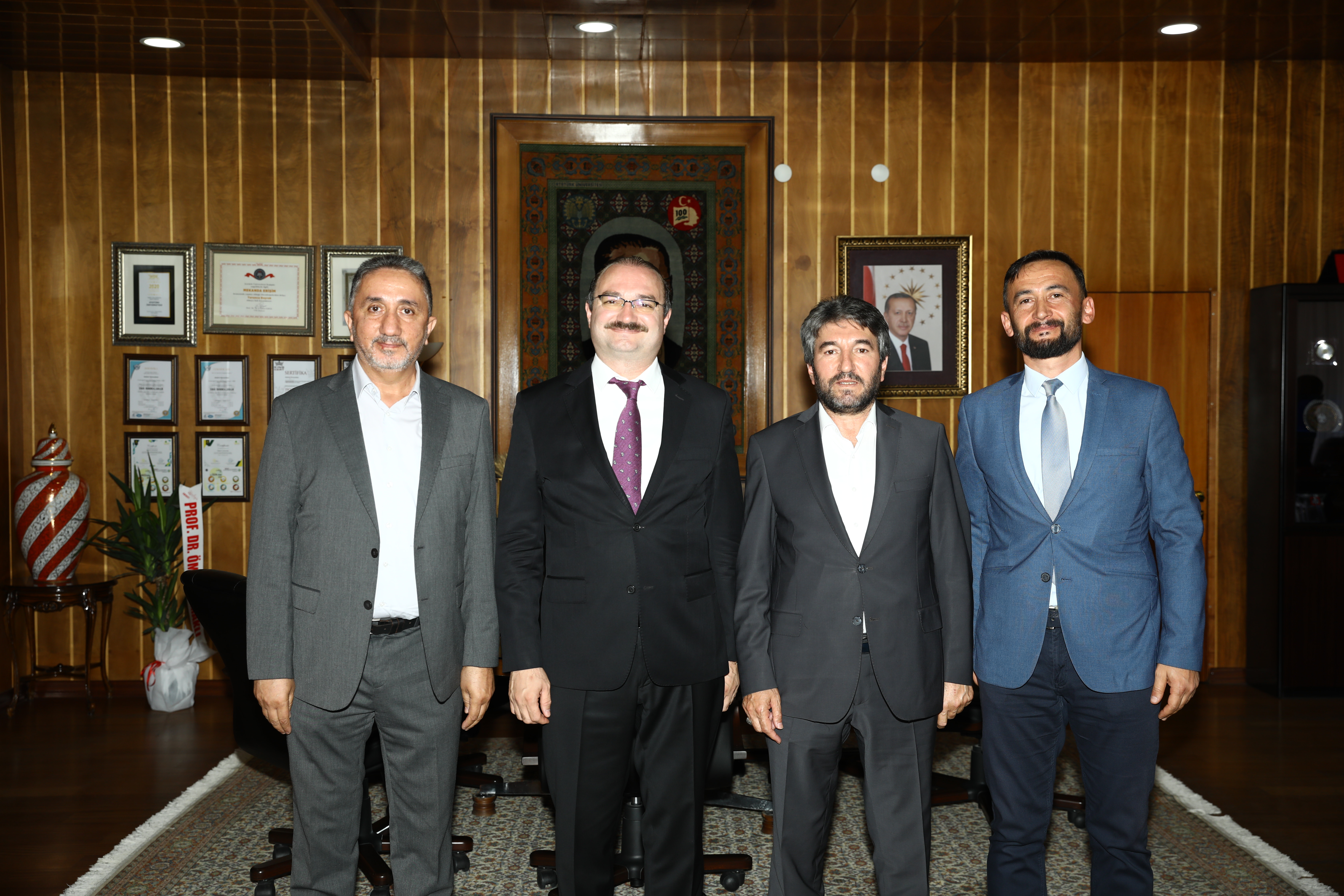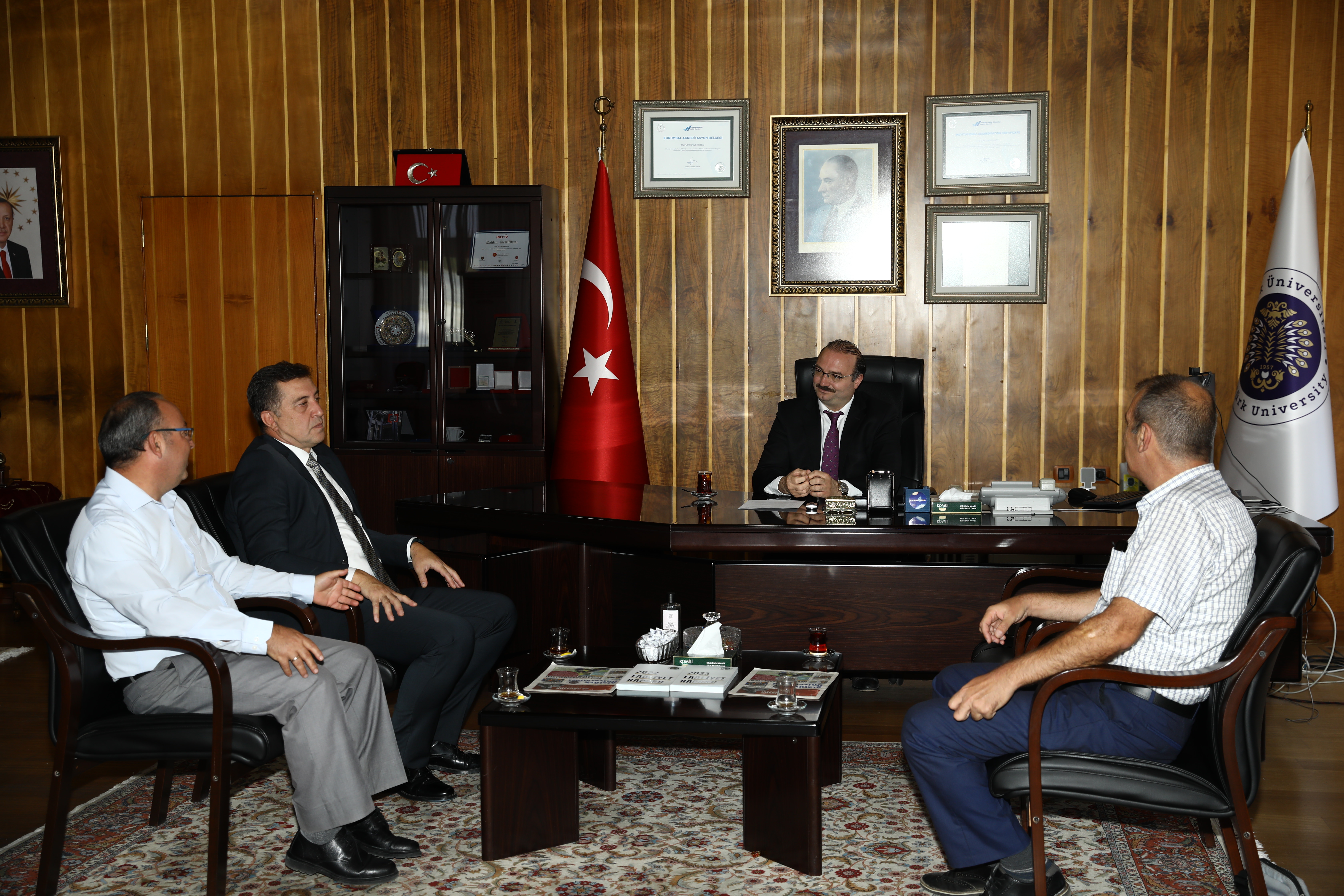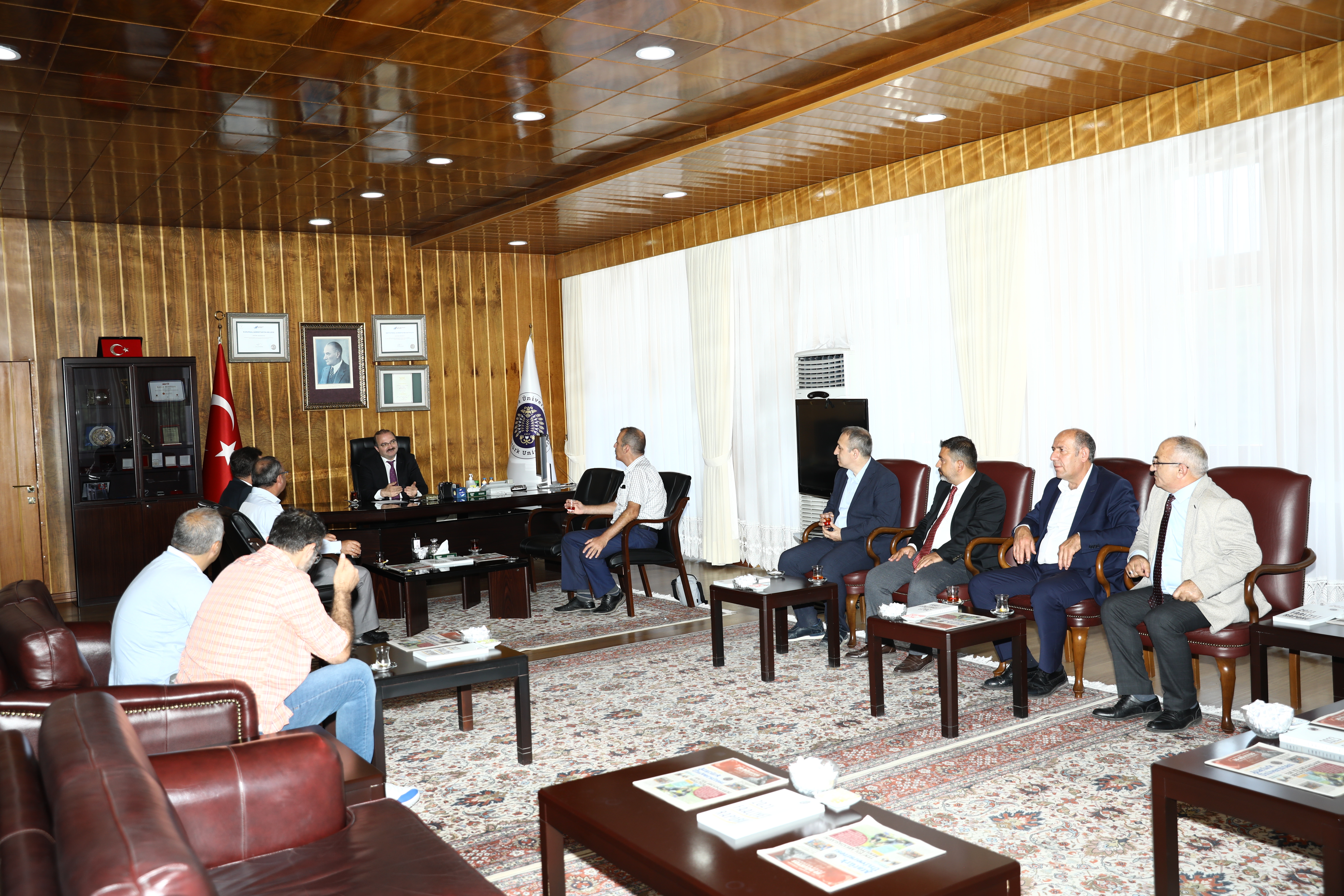 Prof. Dr. Ahmet Hacımüftüoğlu continues to receive congratulations following his appointment as the Rector of Atatürk University. Academic and administrative personnel, administrators of public institutions, and representatives of civil society organisations continue to visit Rector Hacımüftüoğlu in his office to extend their congratulations.