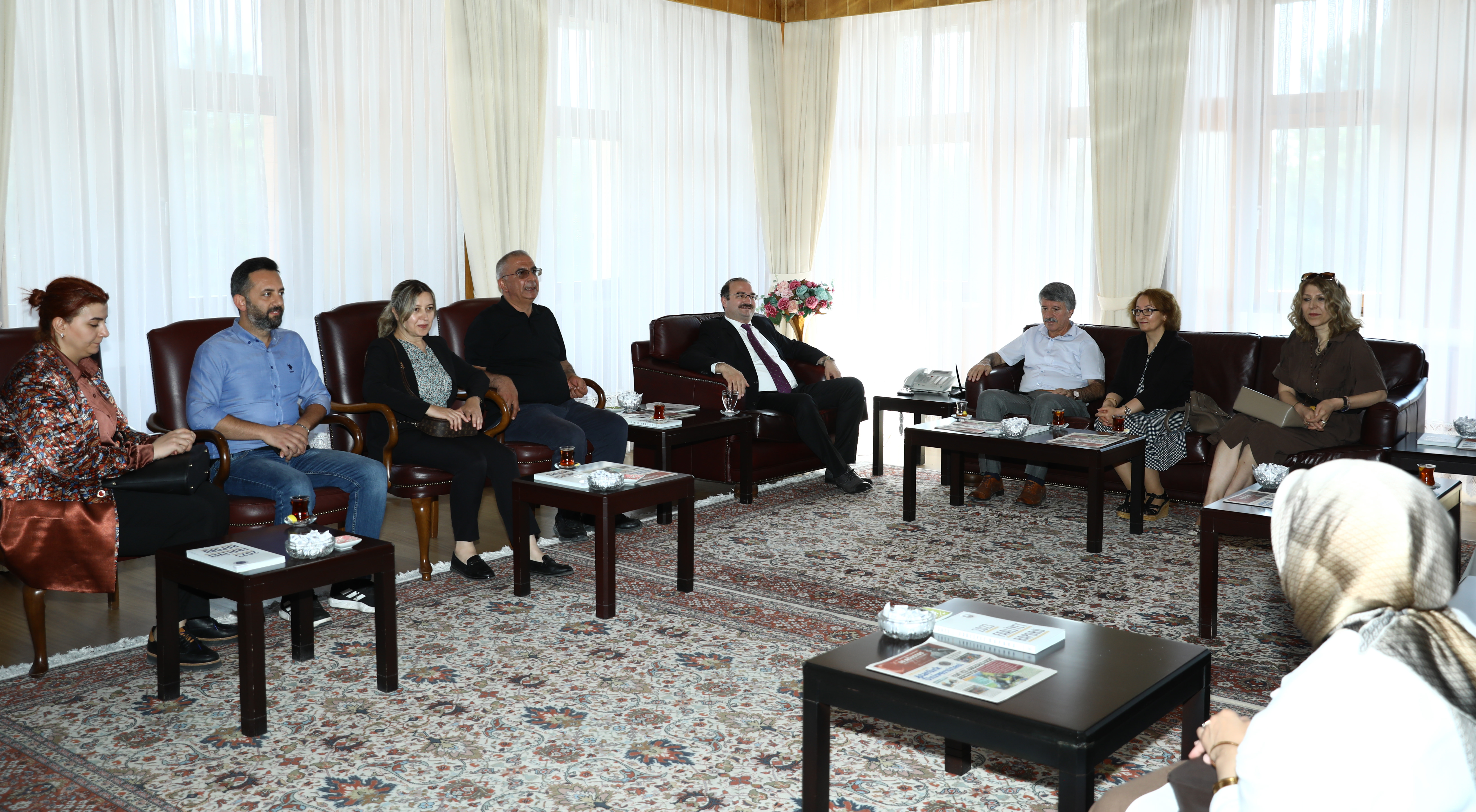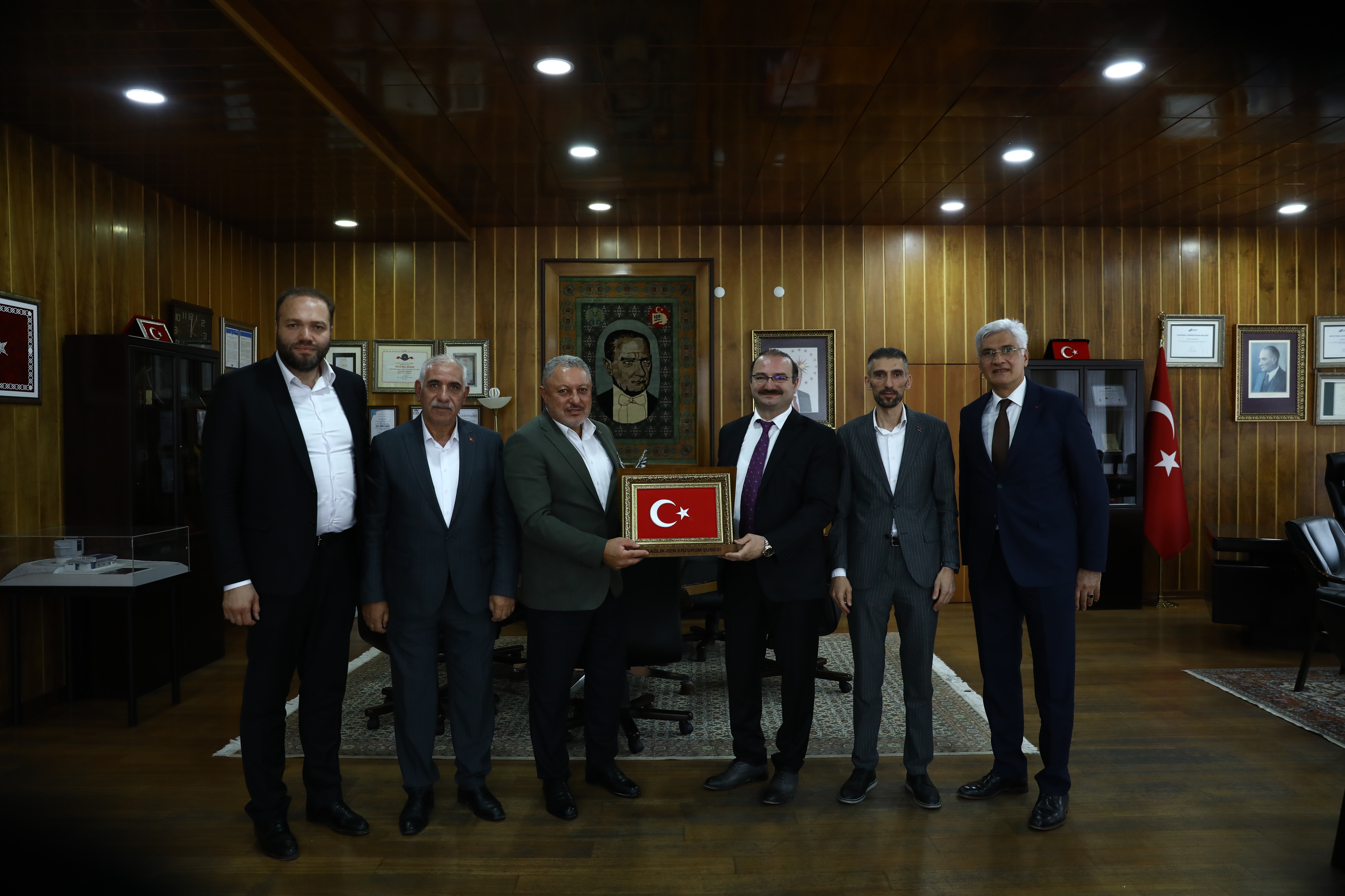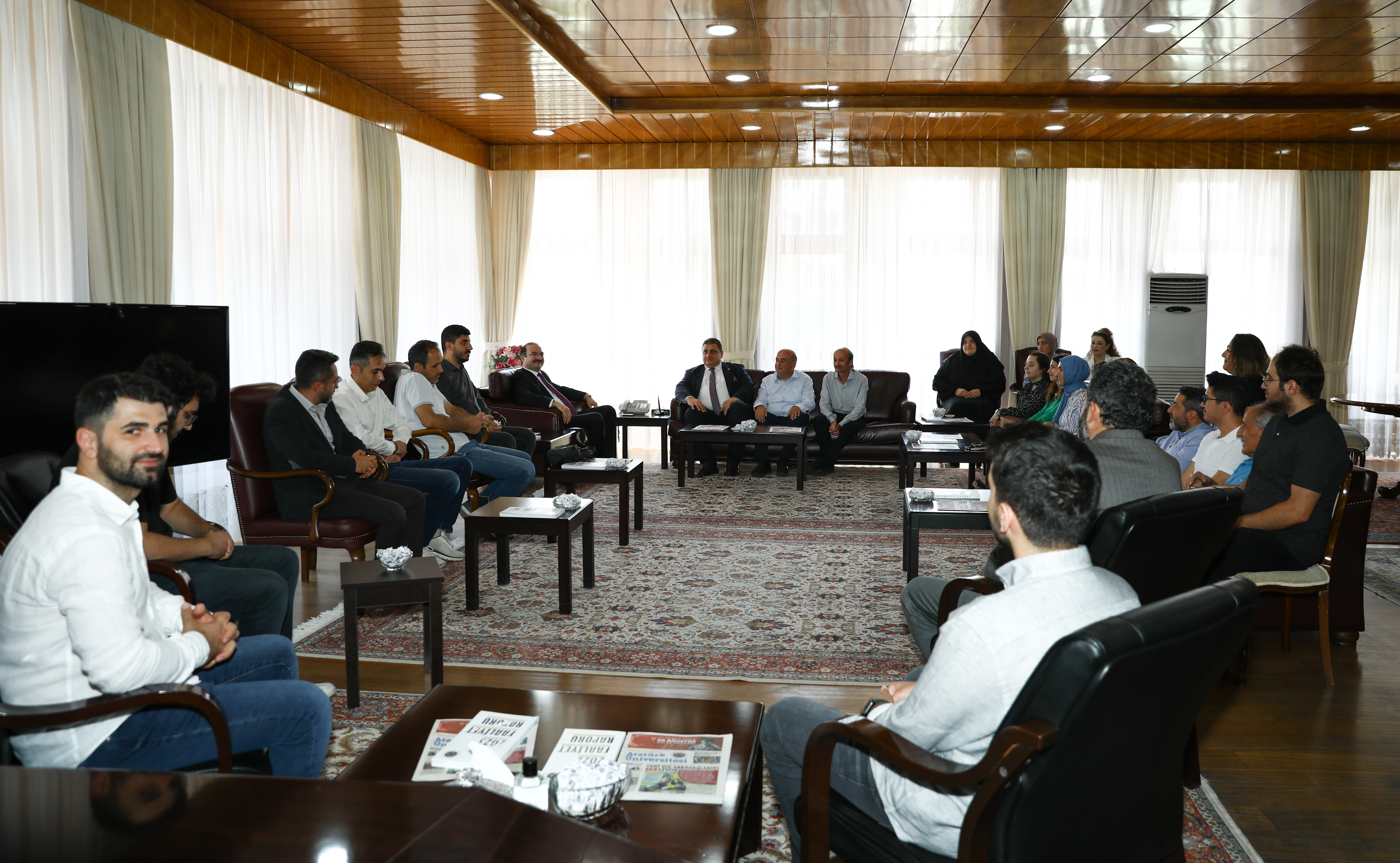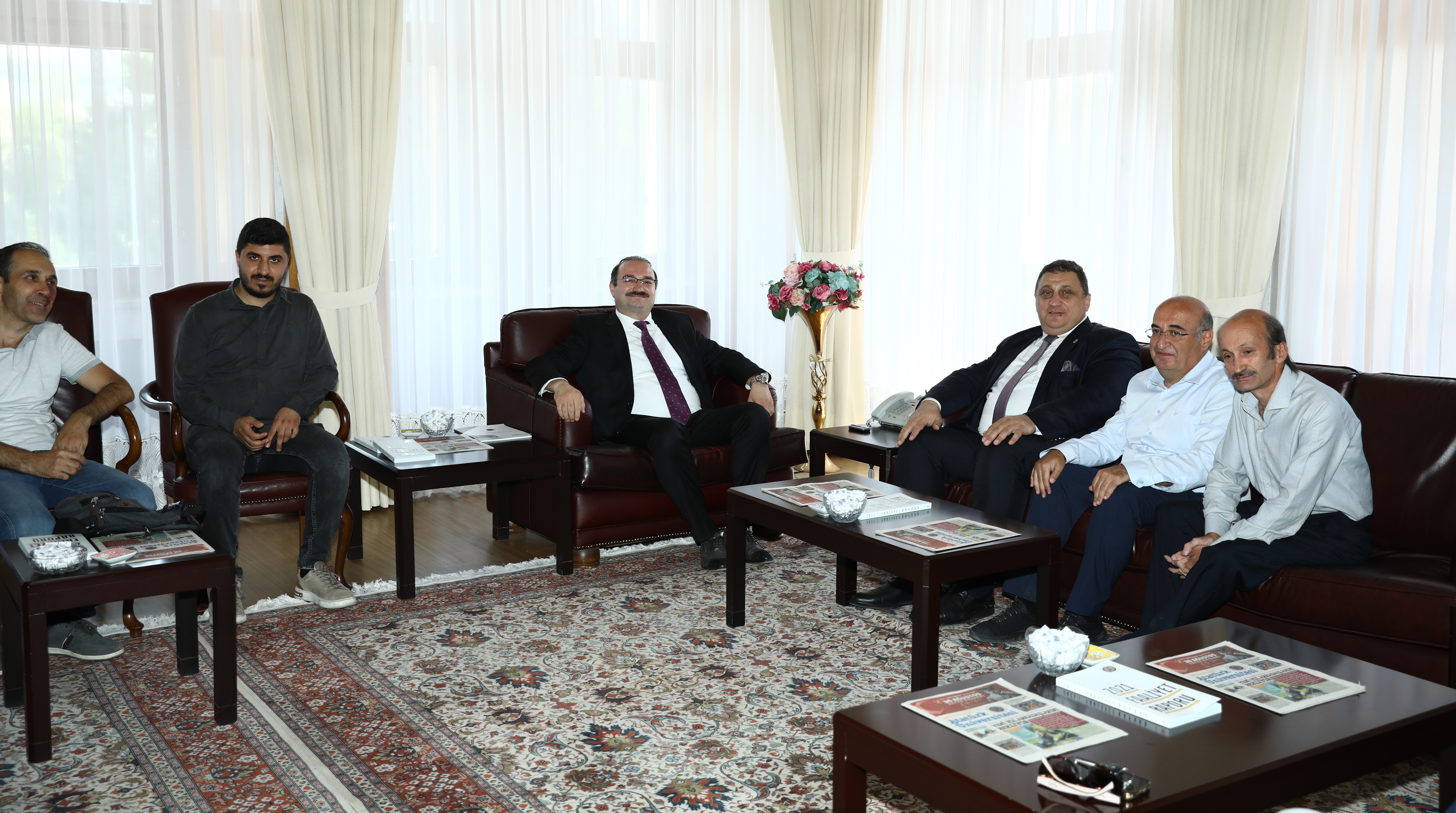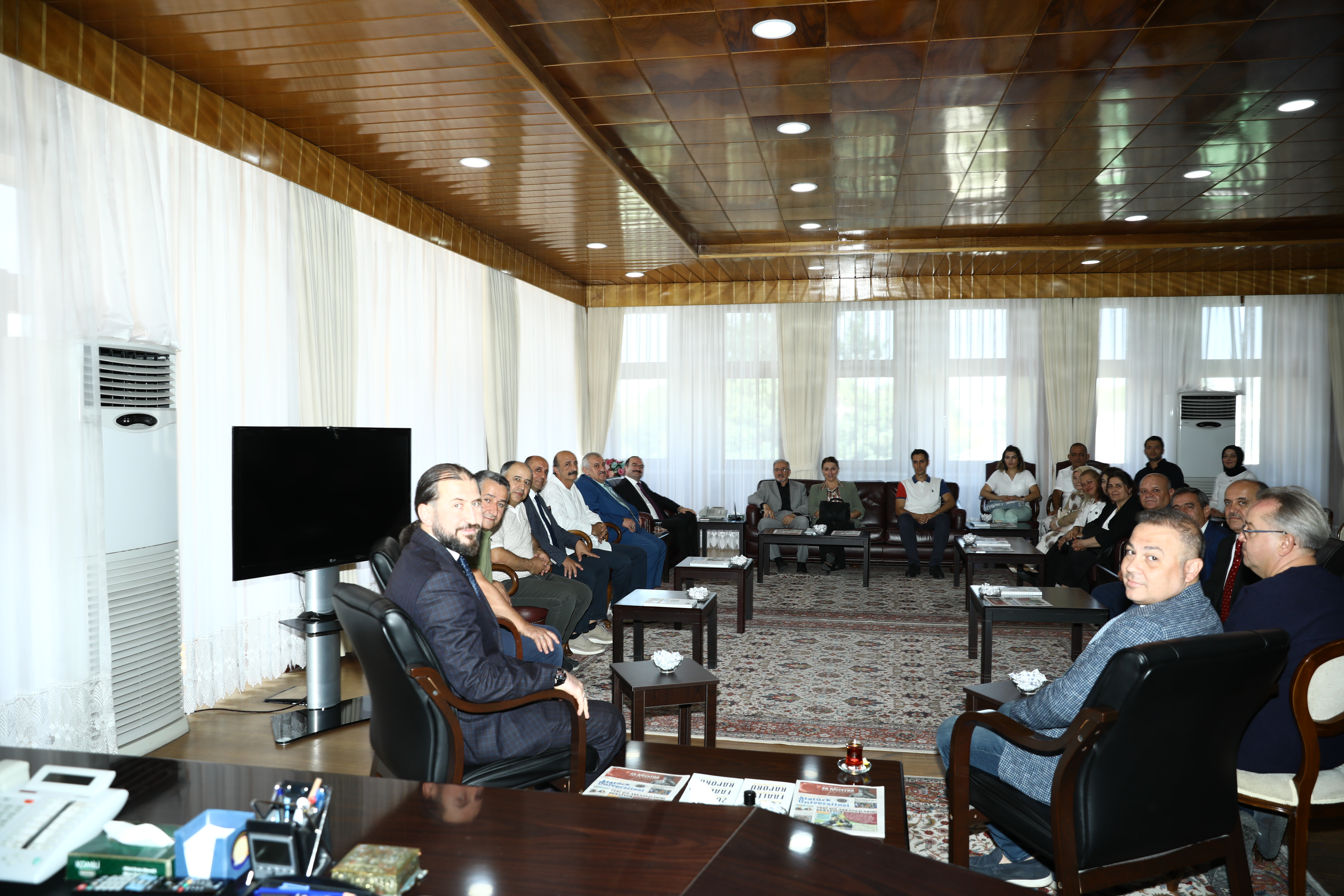 Prof. Dr. Ahmet Hacımüftüoğlu continues to receive congratulations following his appointment as the Rector of Atatürk University. Academic and administrative personnel, administrators of public institutions, and representatives of civil society organisations continue to visit Rector Hacımüftüoğlu in his office to extend their congratulations.