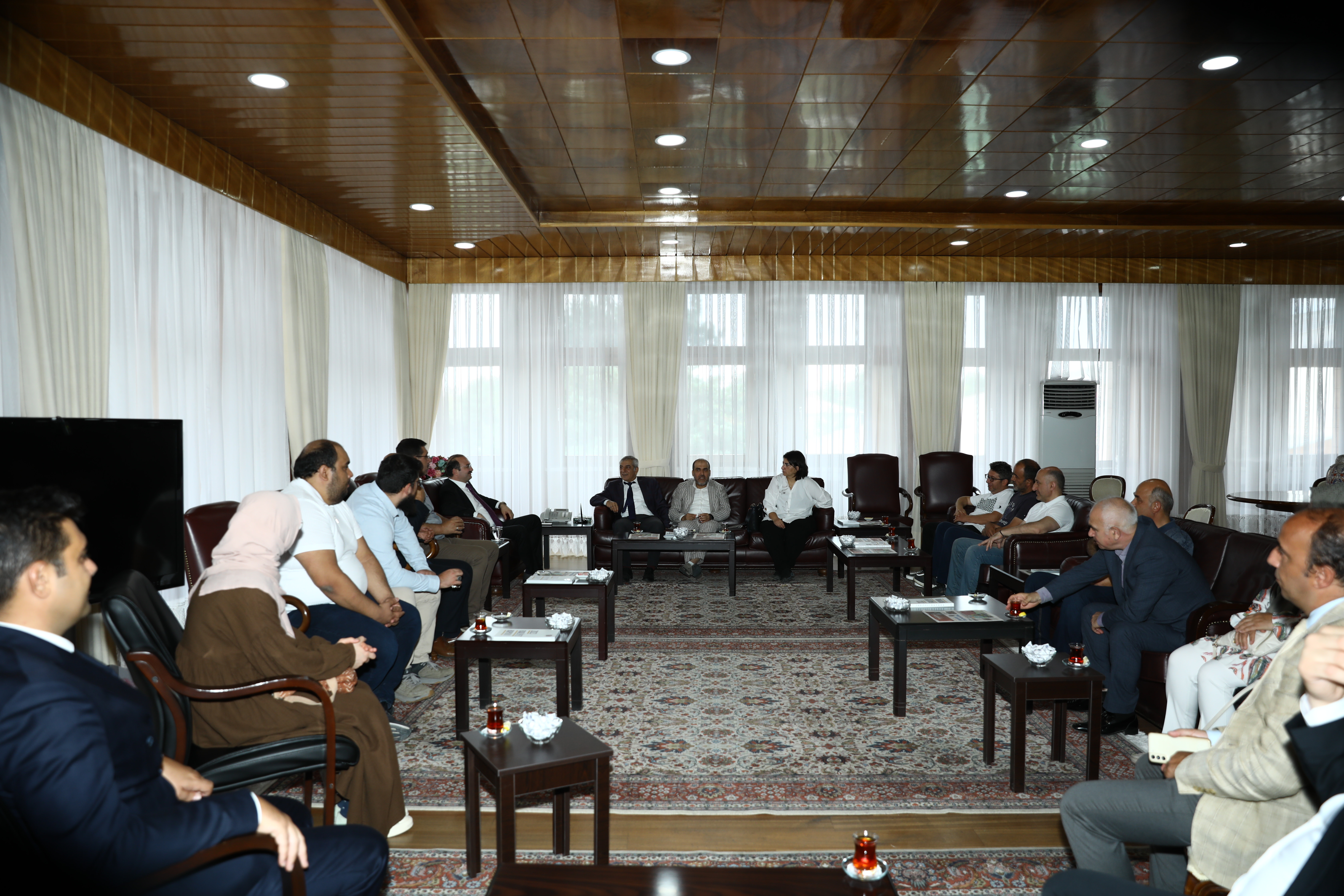 Rector Hacımüftüoğlu, who addressed his guests individually and discussed the university's future plans and projects, stated, "I am of the opinion that scientific research at our institution should not be restricted to academic publications and patents, but should also culminate in tangible products." One of the most critical responsibilities of universities is to convert scientific knowledge into societal benefits. In this direction, we will guarantee that our research endeavours are adequately funded to facilitate the development and commercialisation of innovative products. Our university will adopt an approach that assesses academic performance based on the economic and social impact of the products presented, in addition to the number of publications and patents. Consequently, our university will establish itself as a hub that directly contributes to society by implementing this knowledge, in addition to the generation of scientific knowledge.