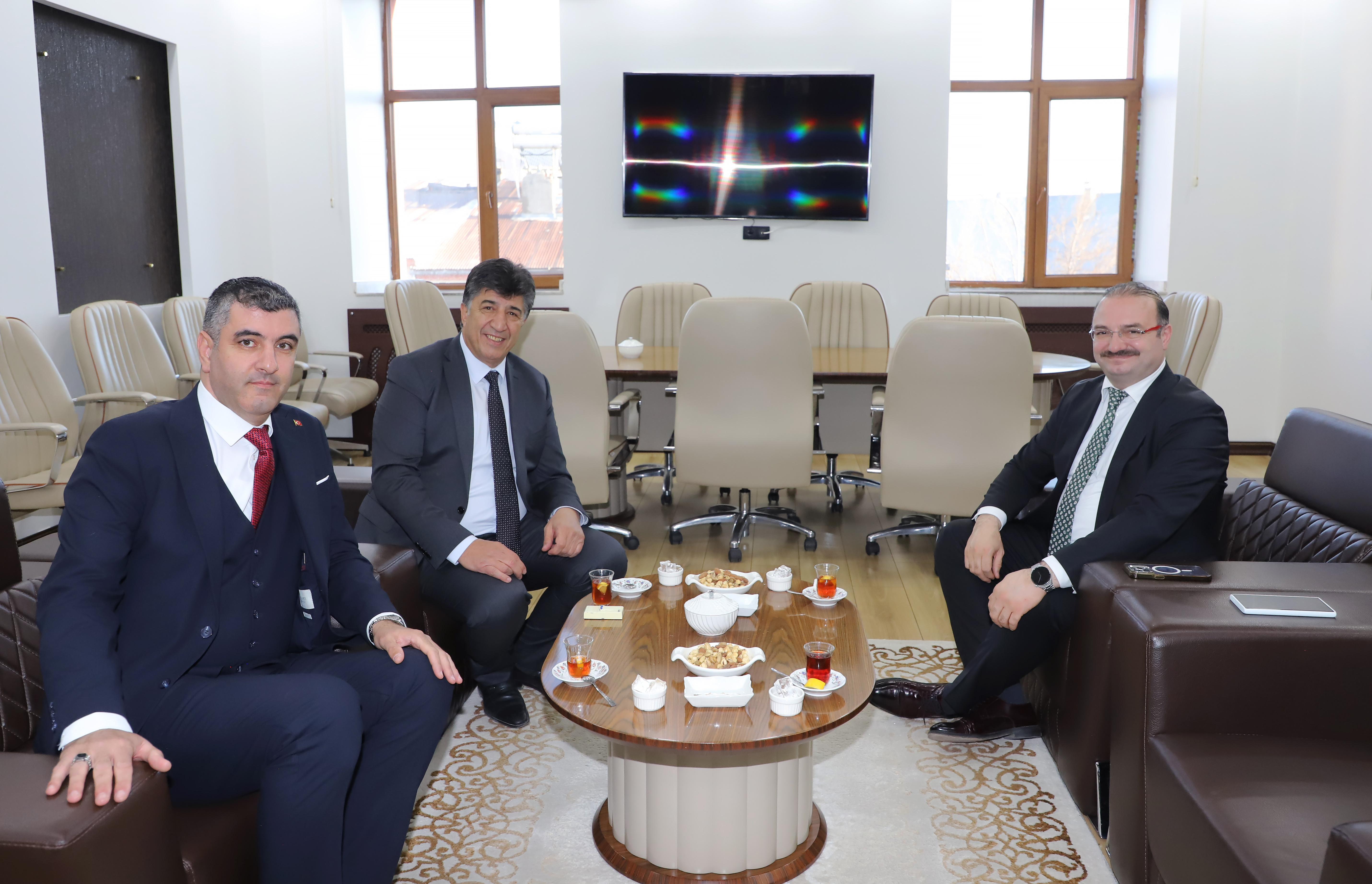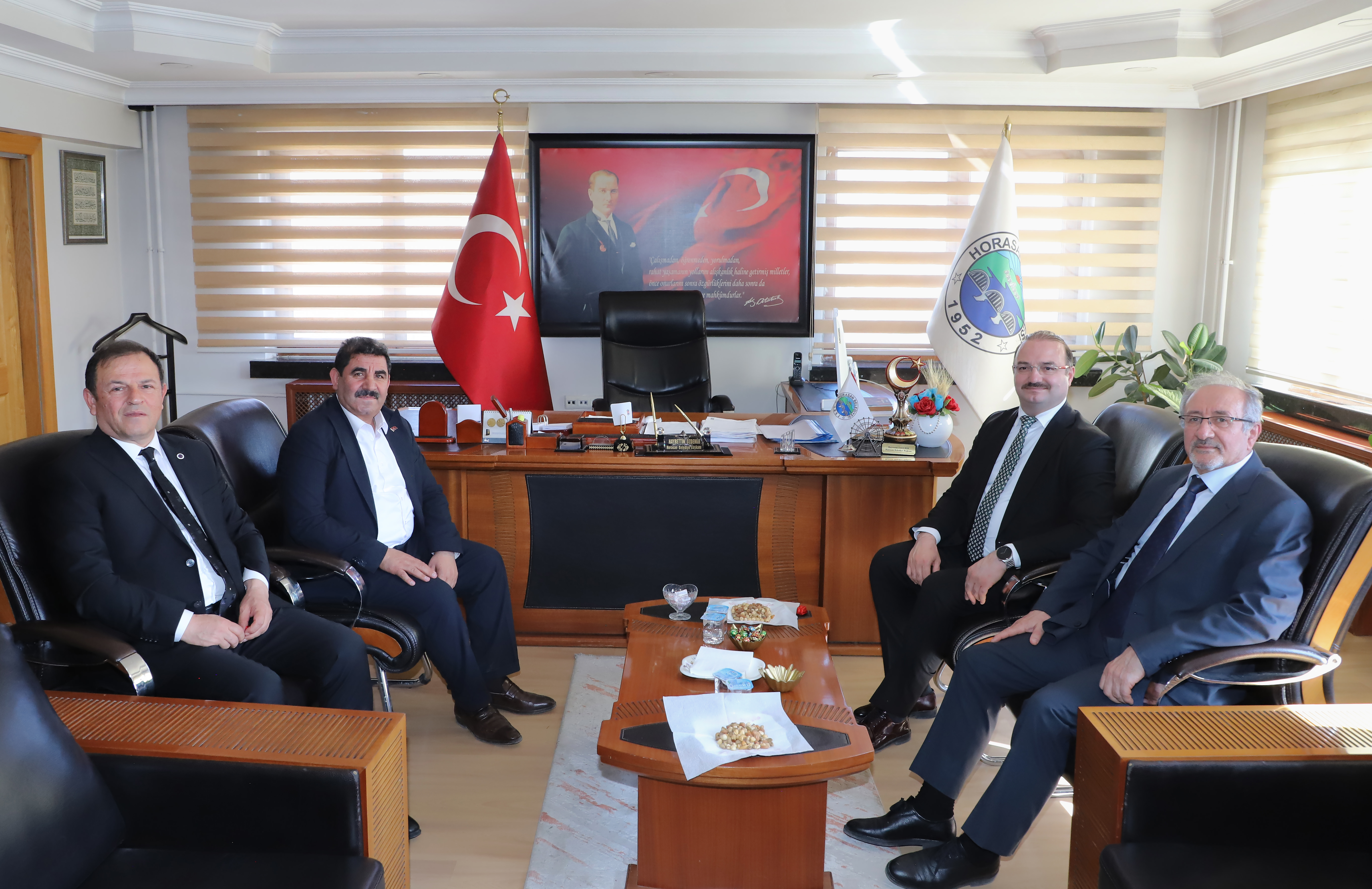 Rector Hacımüftüoğlu and his delegation, who also met with the district protocol, visited Horasan District Governor Mesut Ozan Yılmaz and Mayor Hayrettin Özdemir, as well as Pasinler Mayor Ünsal Sertoğlu, in their offices following the Vocational School visits.