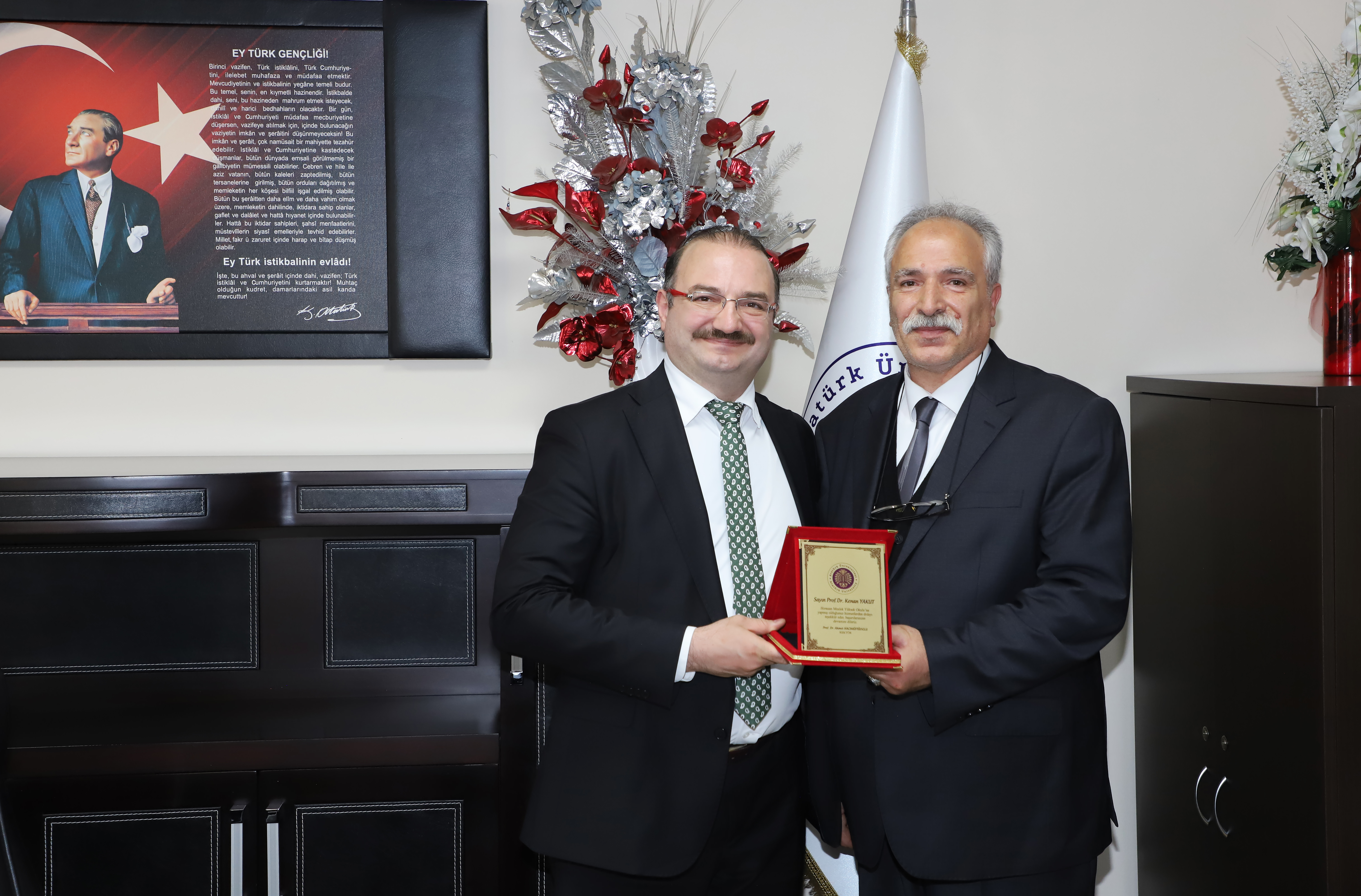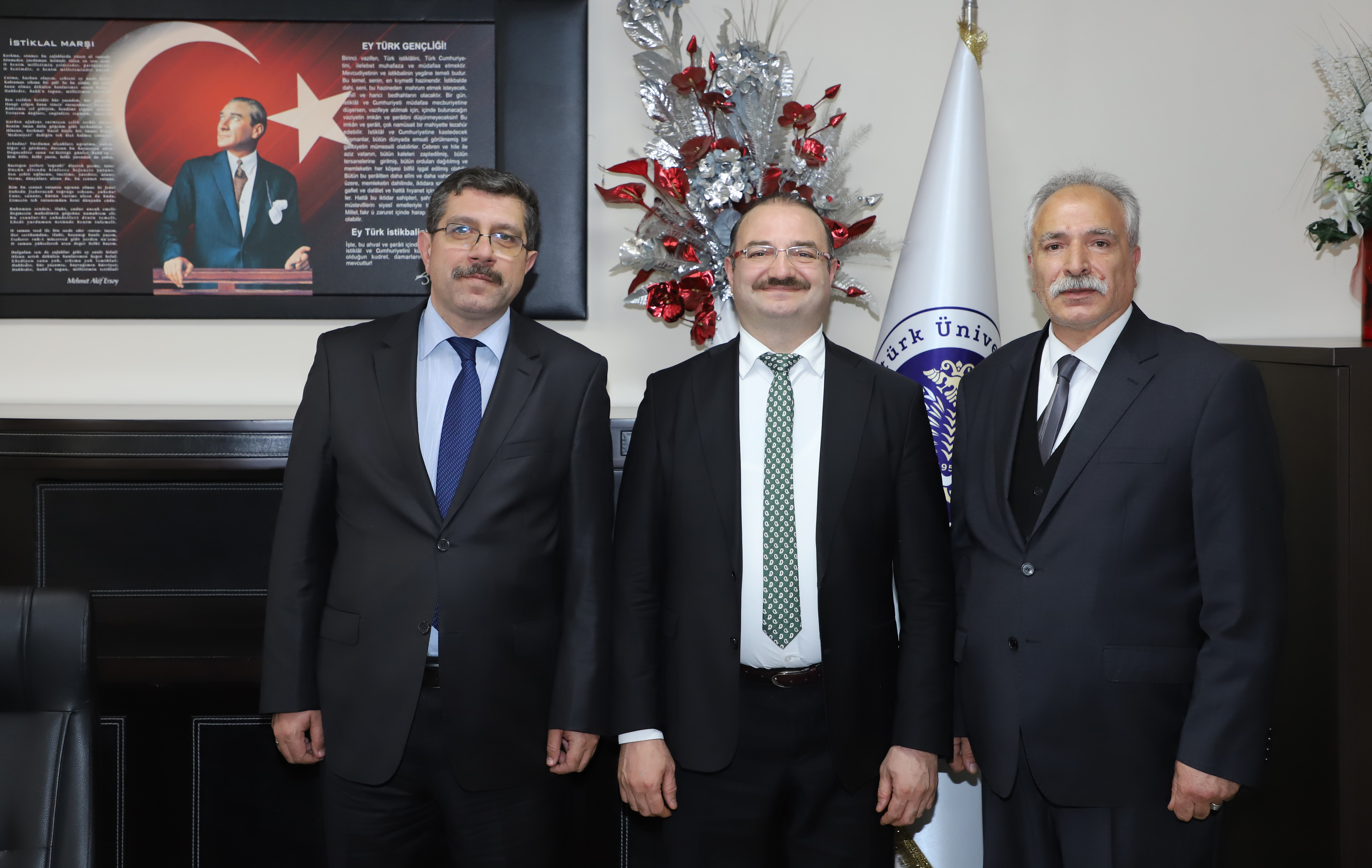 Handover ceremonies were also conducted at the directorates of the Vocational School as part of the visits. In this context, Prof. Dr. Kenan Yakut transferred his responsibilities to Prof. Dr. Oğuz Akın Düzgün, and Dr. Lecturer Zinnur Çelik transferred her responsibilities to Assoc. Prof. Dr. Melih Okcu at Pasinler Vocational School.