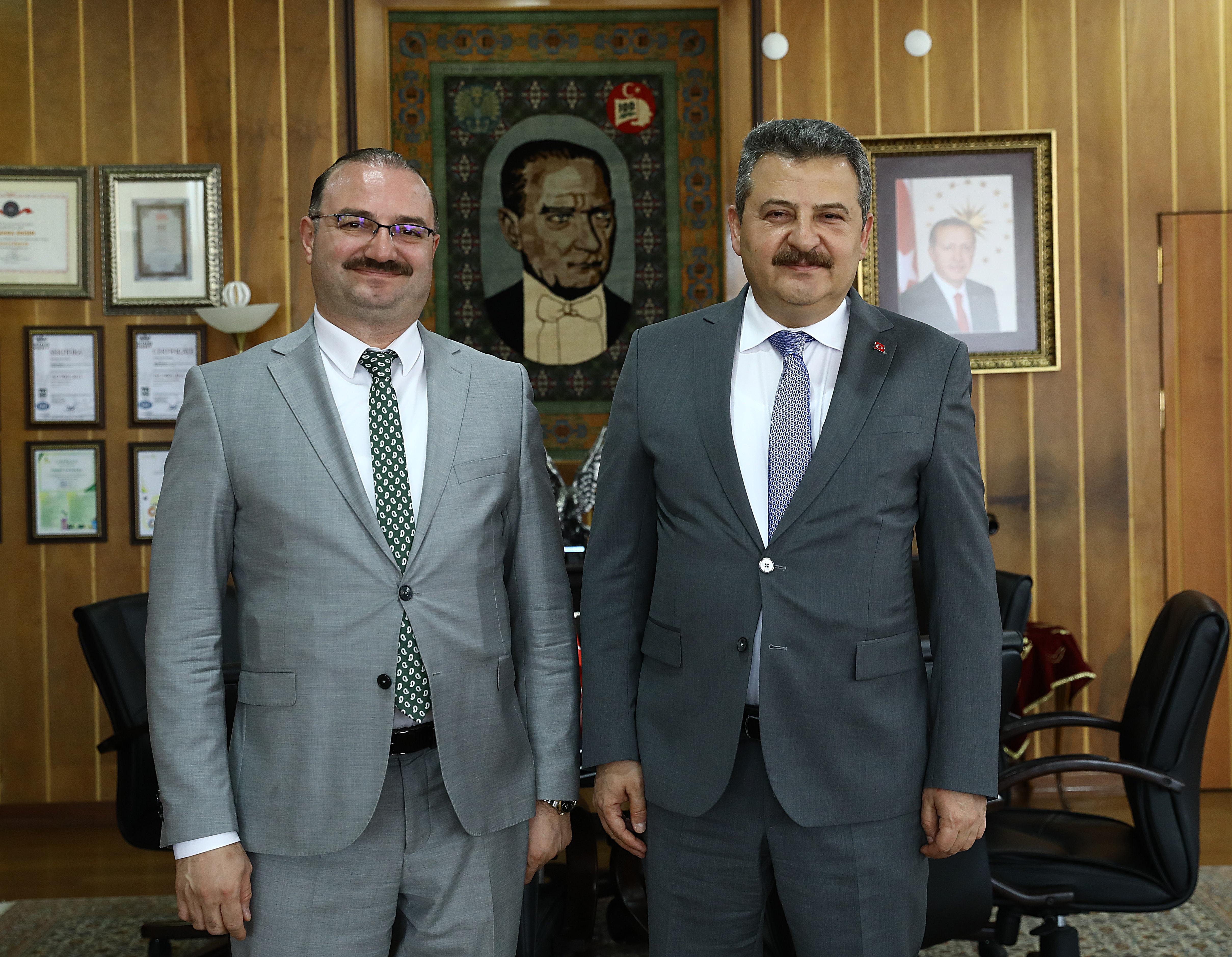 Professor Dr. Ahmet Hacımüftüoğlu, the rector of Atatürk University, was visited by Erzurum Police Chief Kadir Yırtar in his office. University-police cooperation and city security concerns were addressed during the visit.