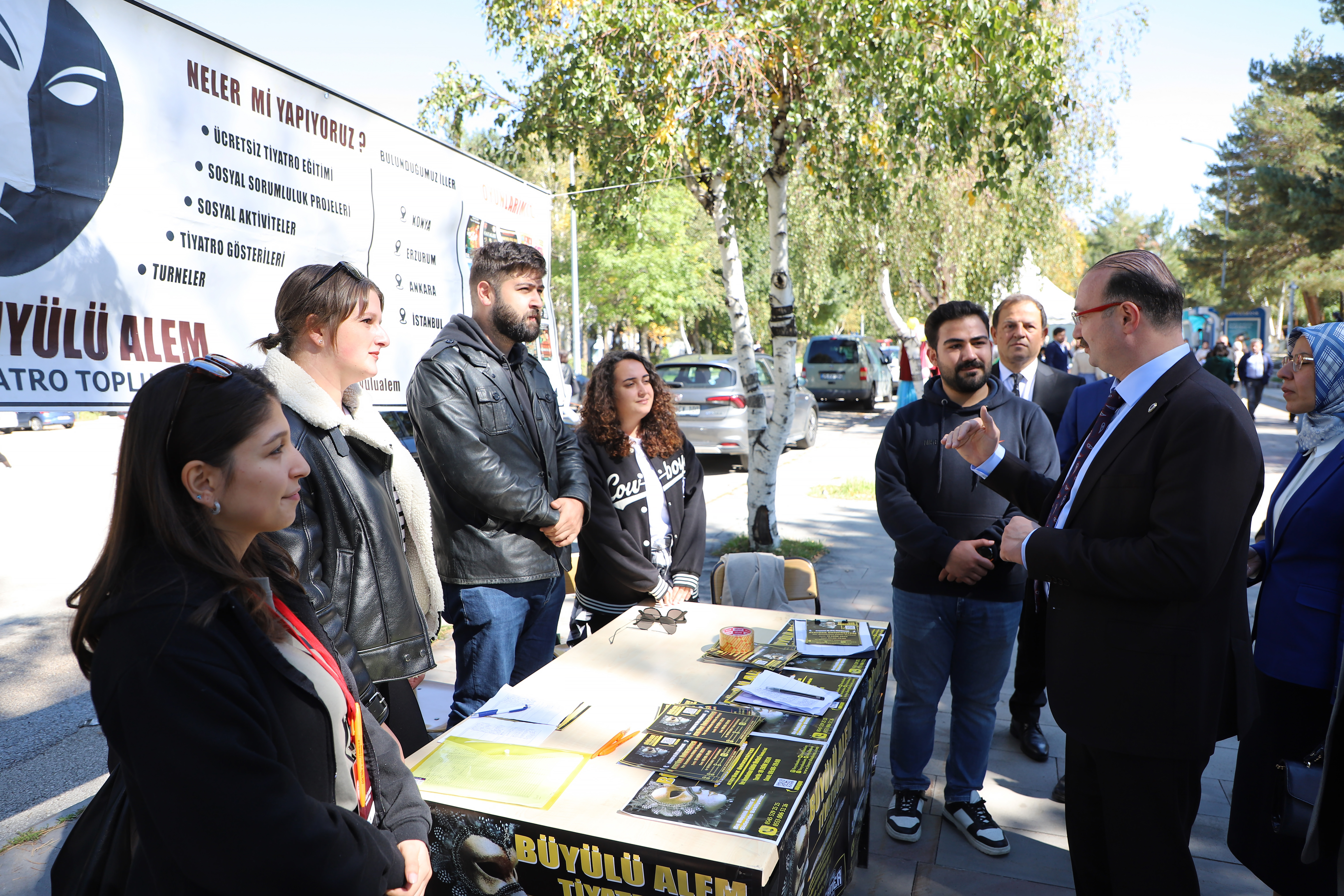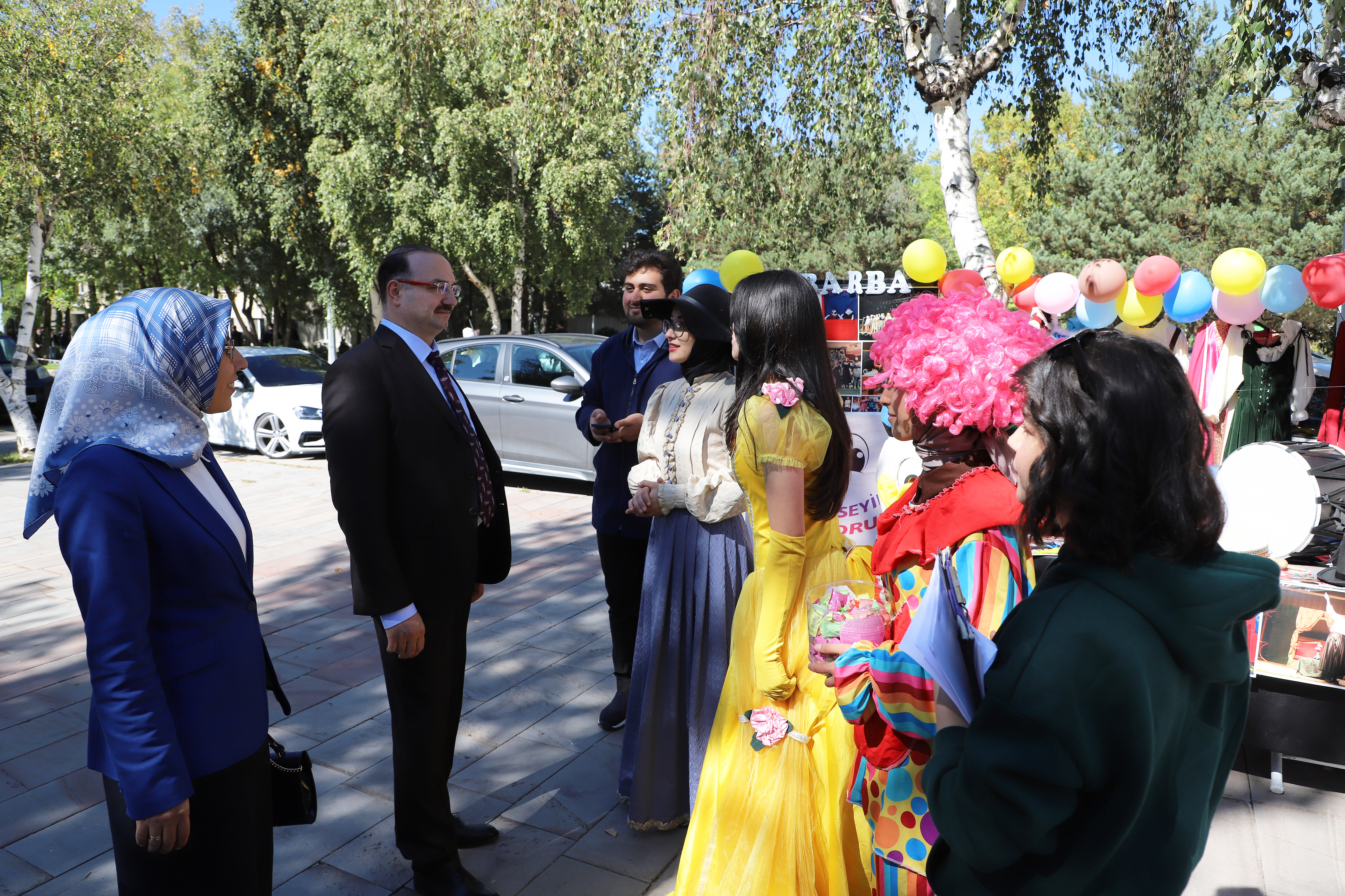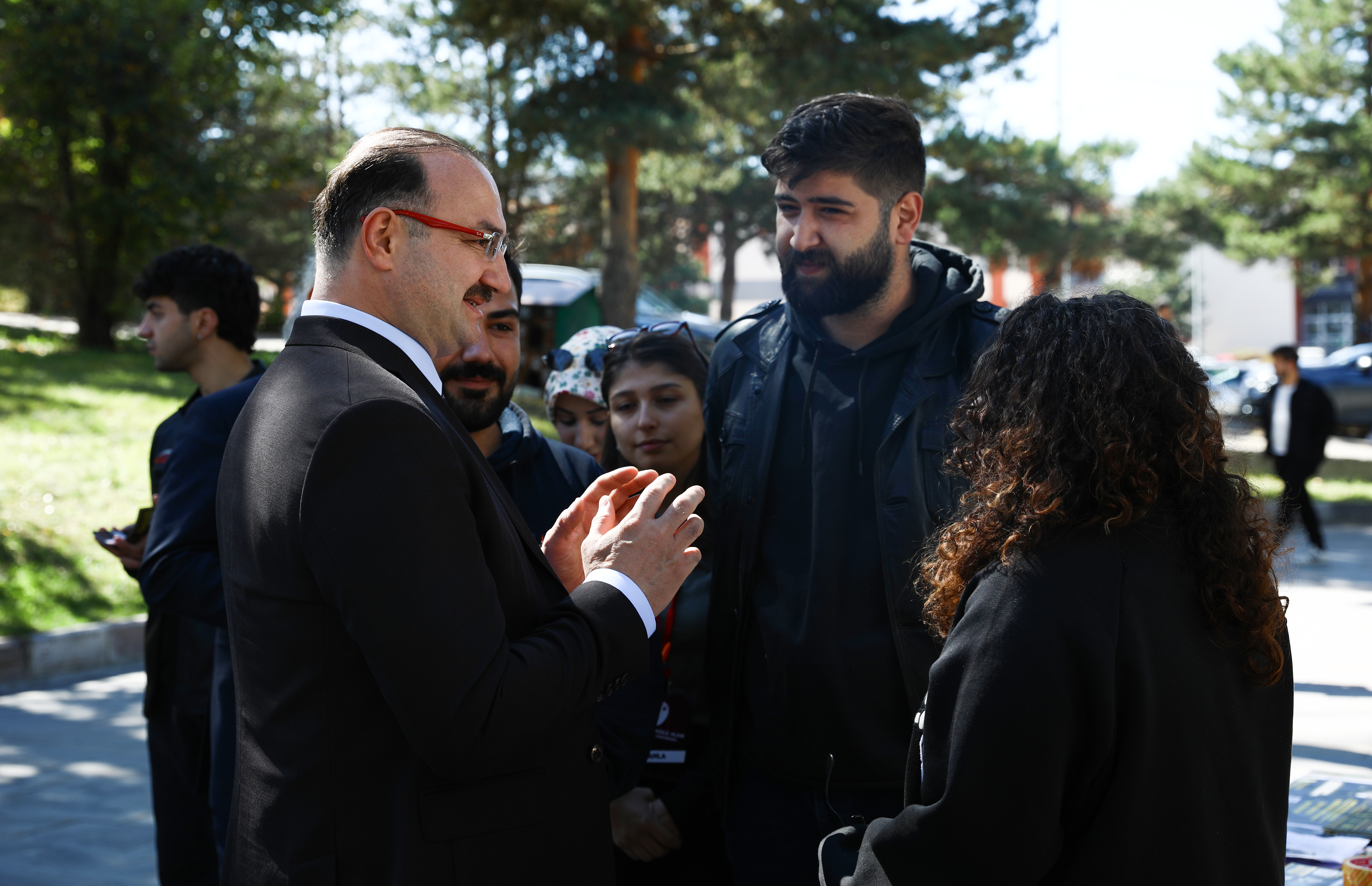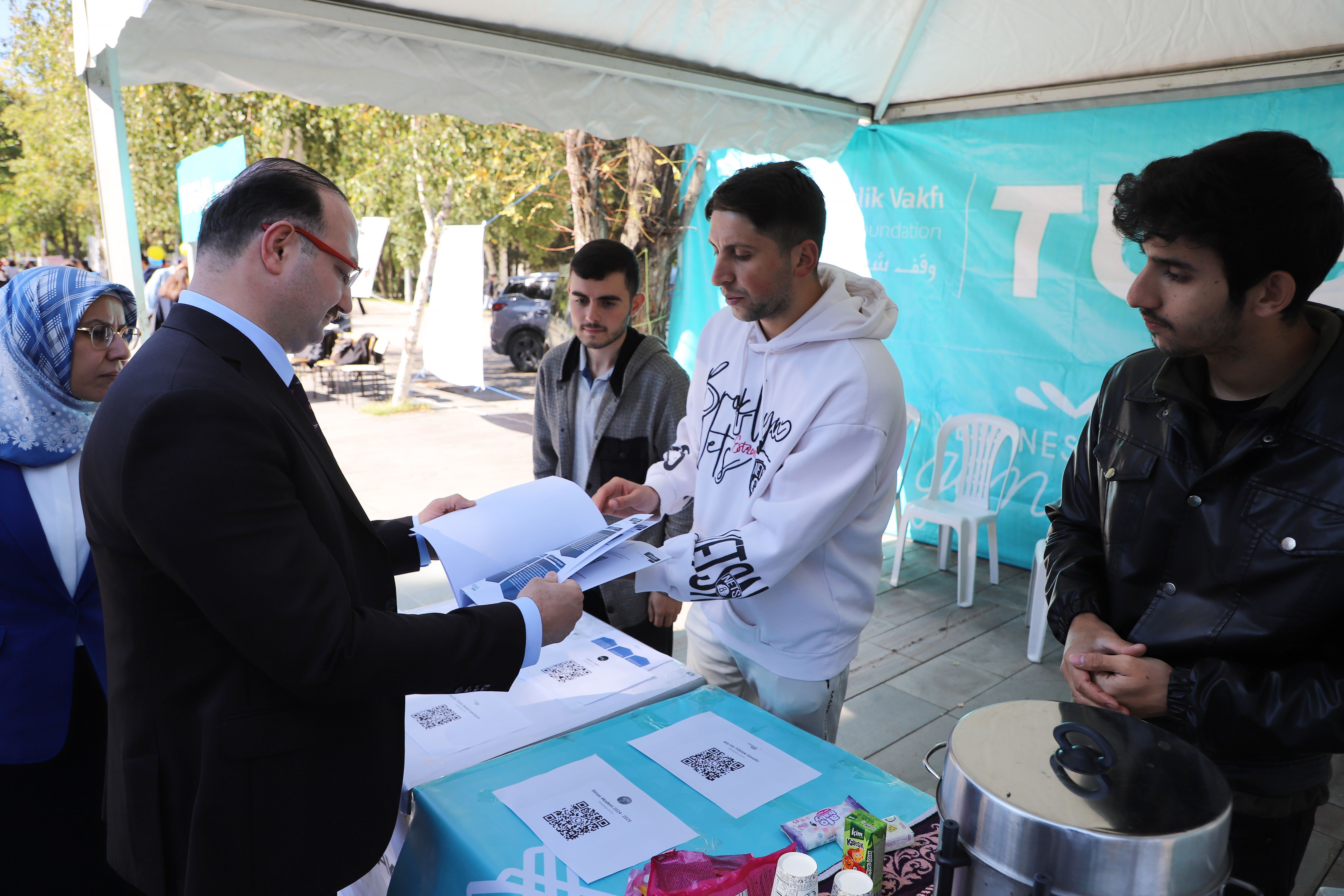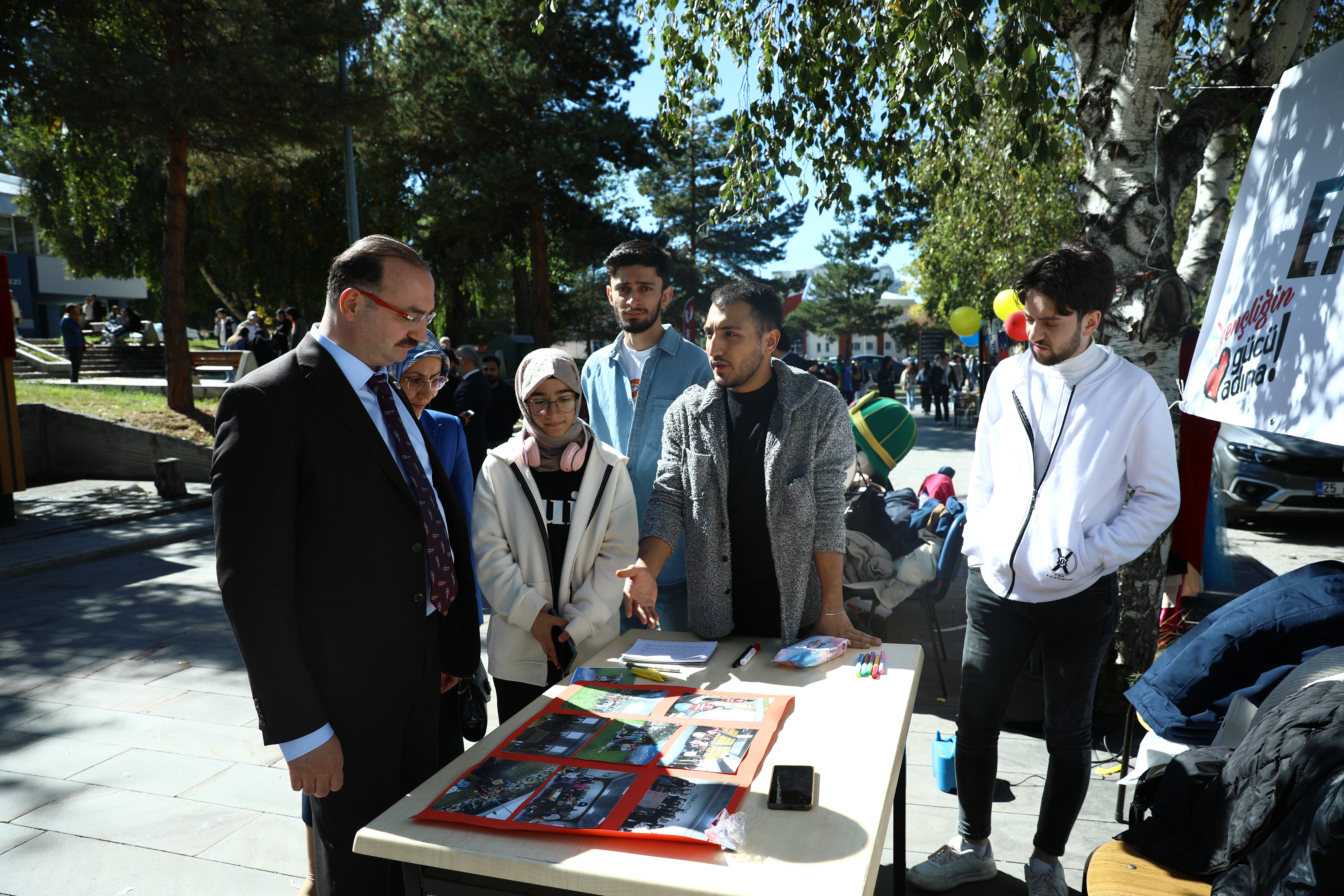 After the lunch program, Rector Hacımüftüoğlu inspected various sections of the cafeteria, received information from the authorities, and visited the kiosks set up by student clubs and civil society organizations on the campus. Prof. Dr. Hacımüftüoğlu underscored the significance of students' involvement in a variety of activities and socializing, asserting that such events are crucial.