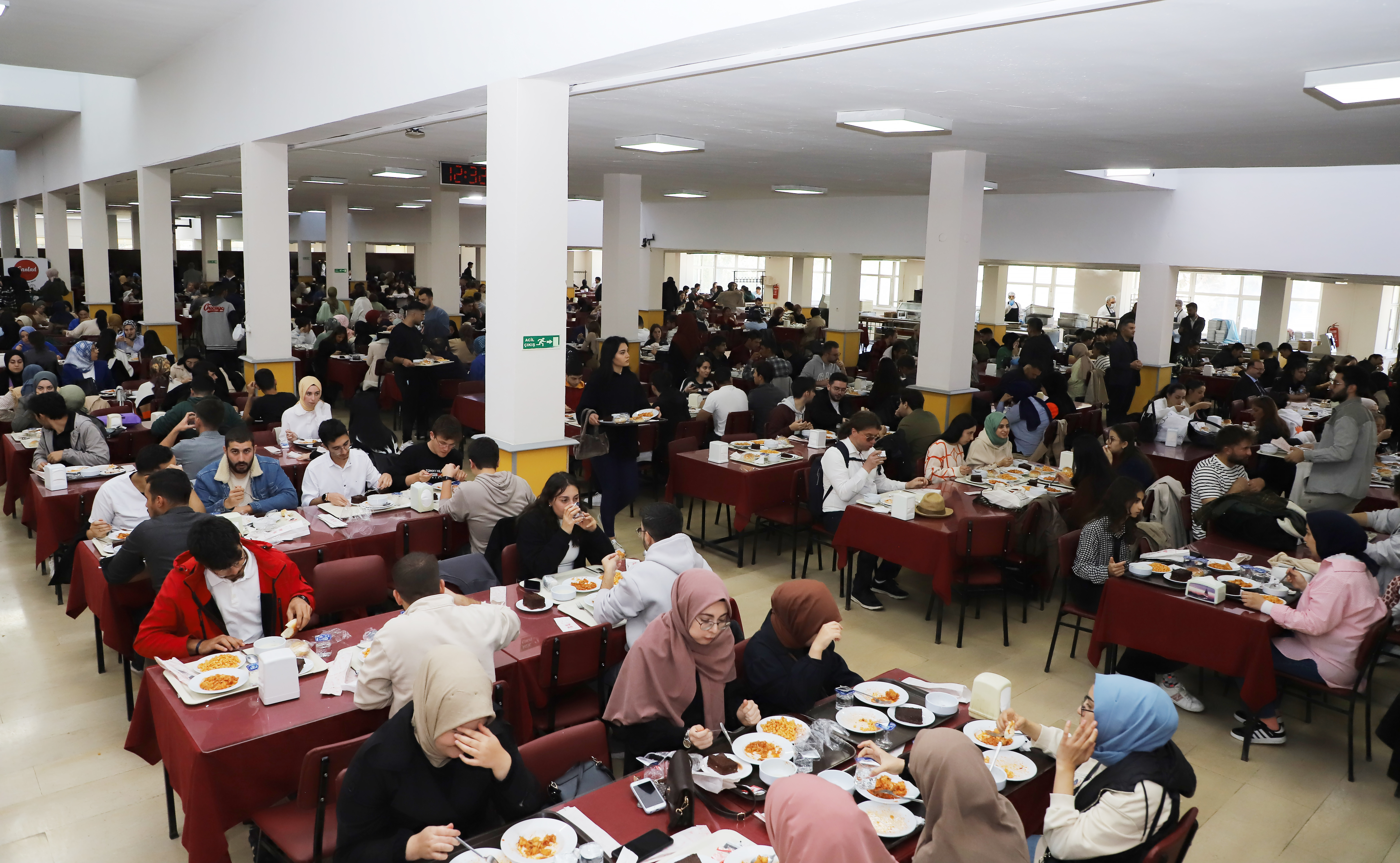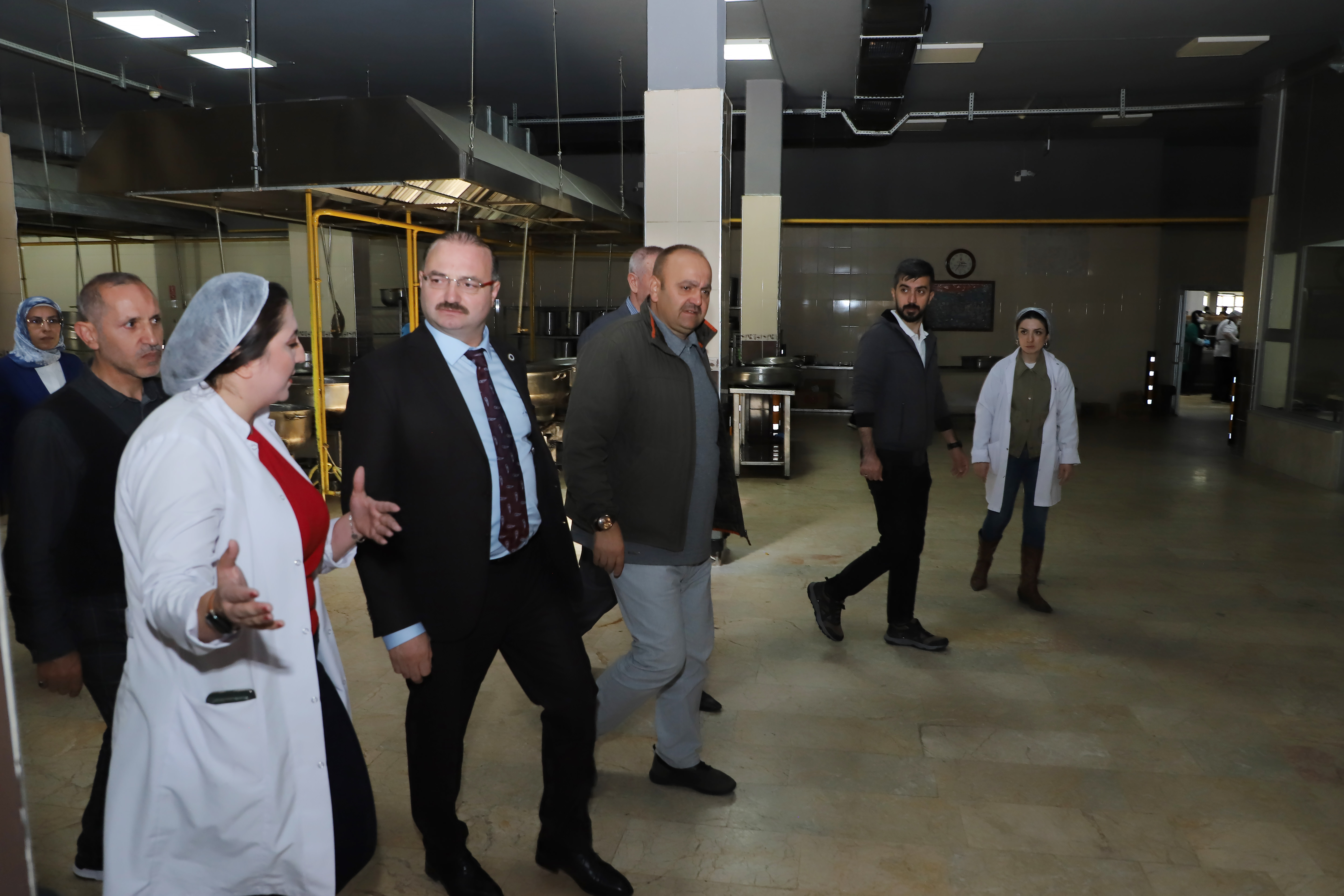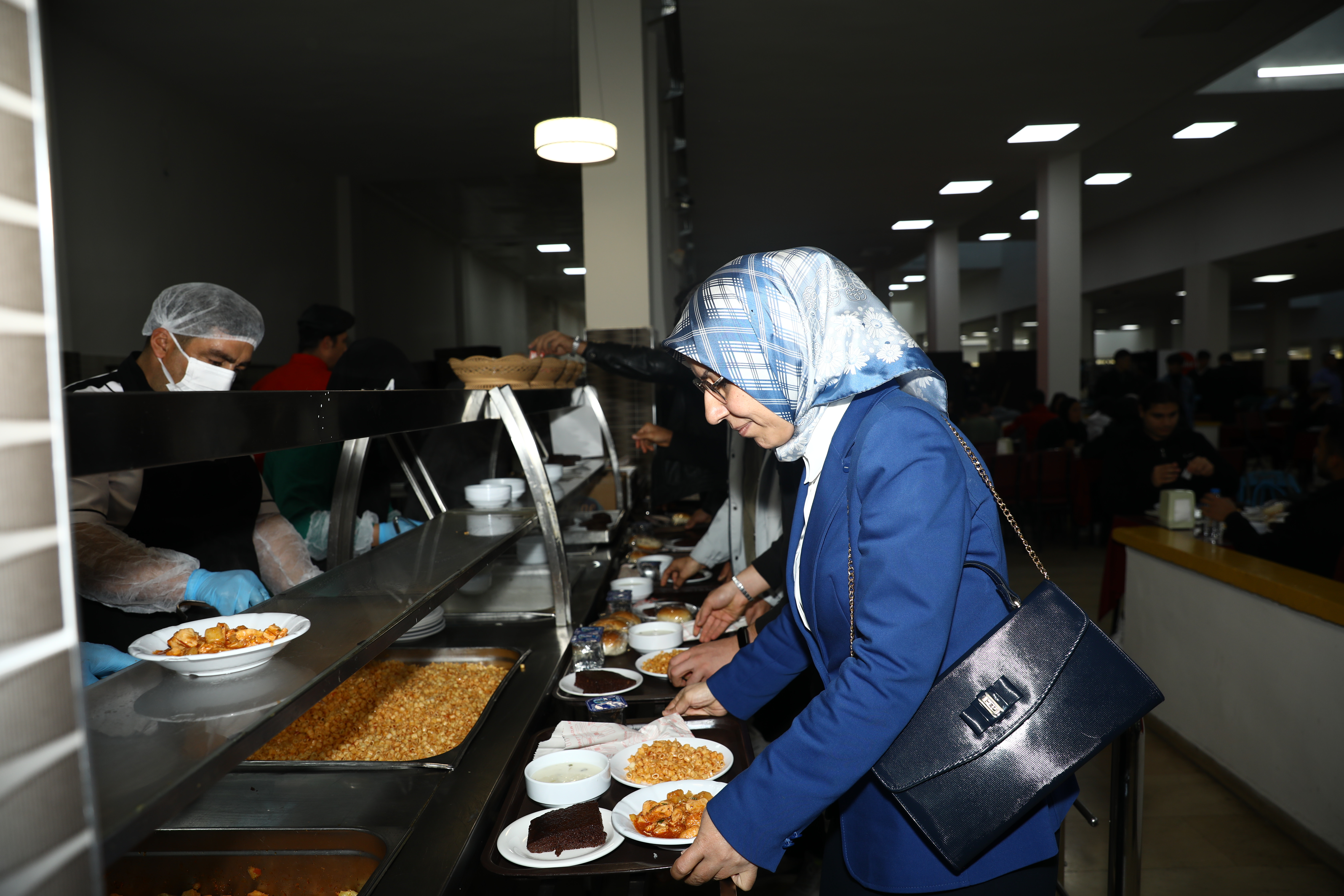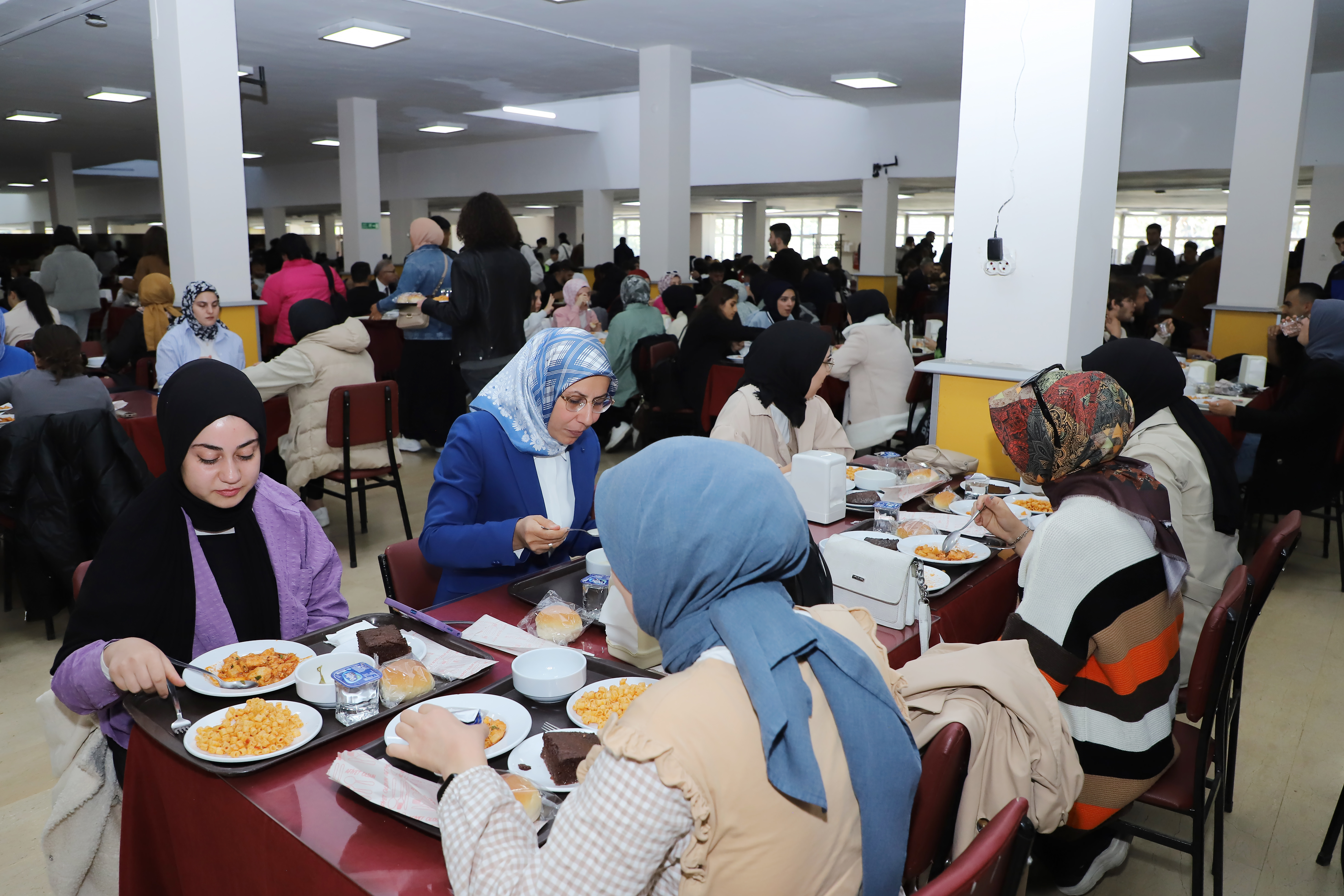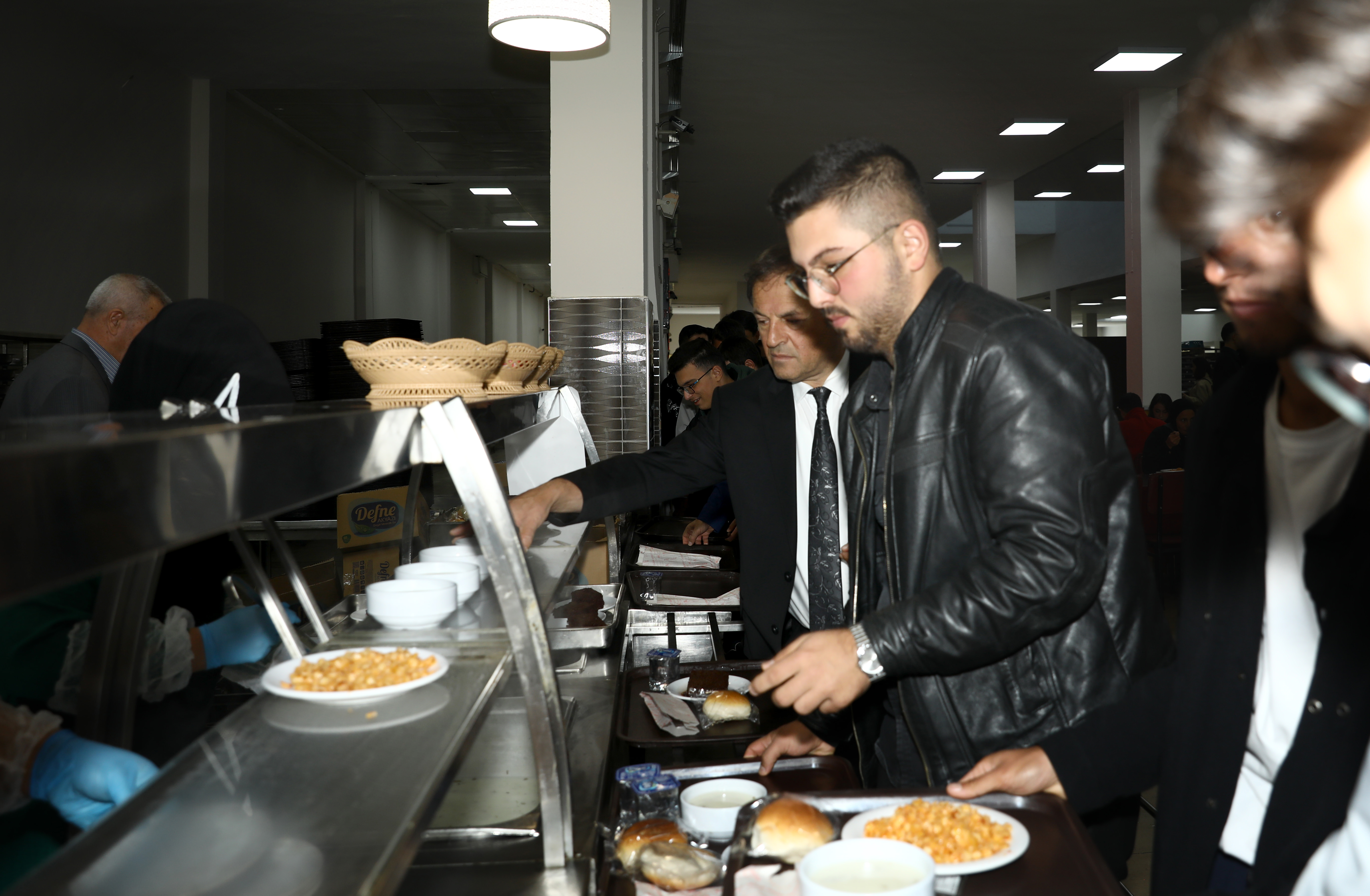Vice rectors and advisors to the rector accompanied Rector Hacımüftüoğlu as he visited the central cafeteria and had lunch with students. Hacımüftüoğlu, who queued up with students and was served his supper at the cafeteria, which serves approximately 10,000 students daily, conversed with the students at their tables.