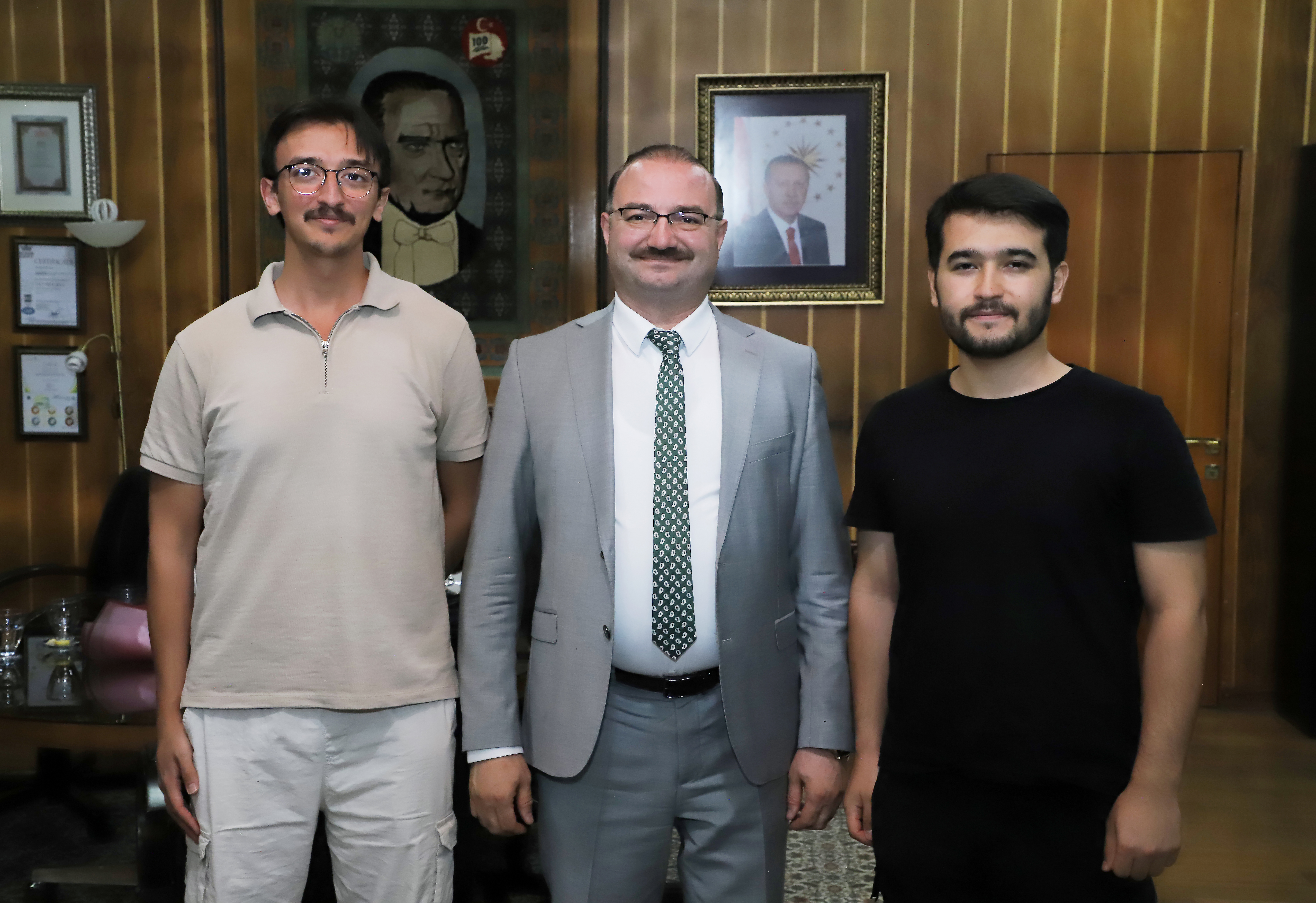 Furkan Güneş and Ömer Faruk Aydın, students at the Faculty of Medicine at Atatürk University, paid a visit to Rector Prof. Dr. Ahmet Hacımüftüoğlu.