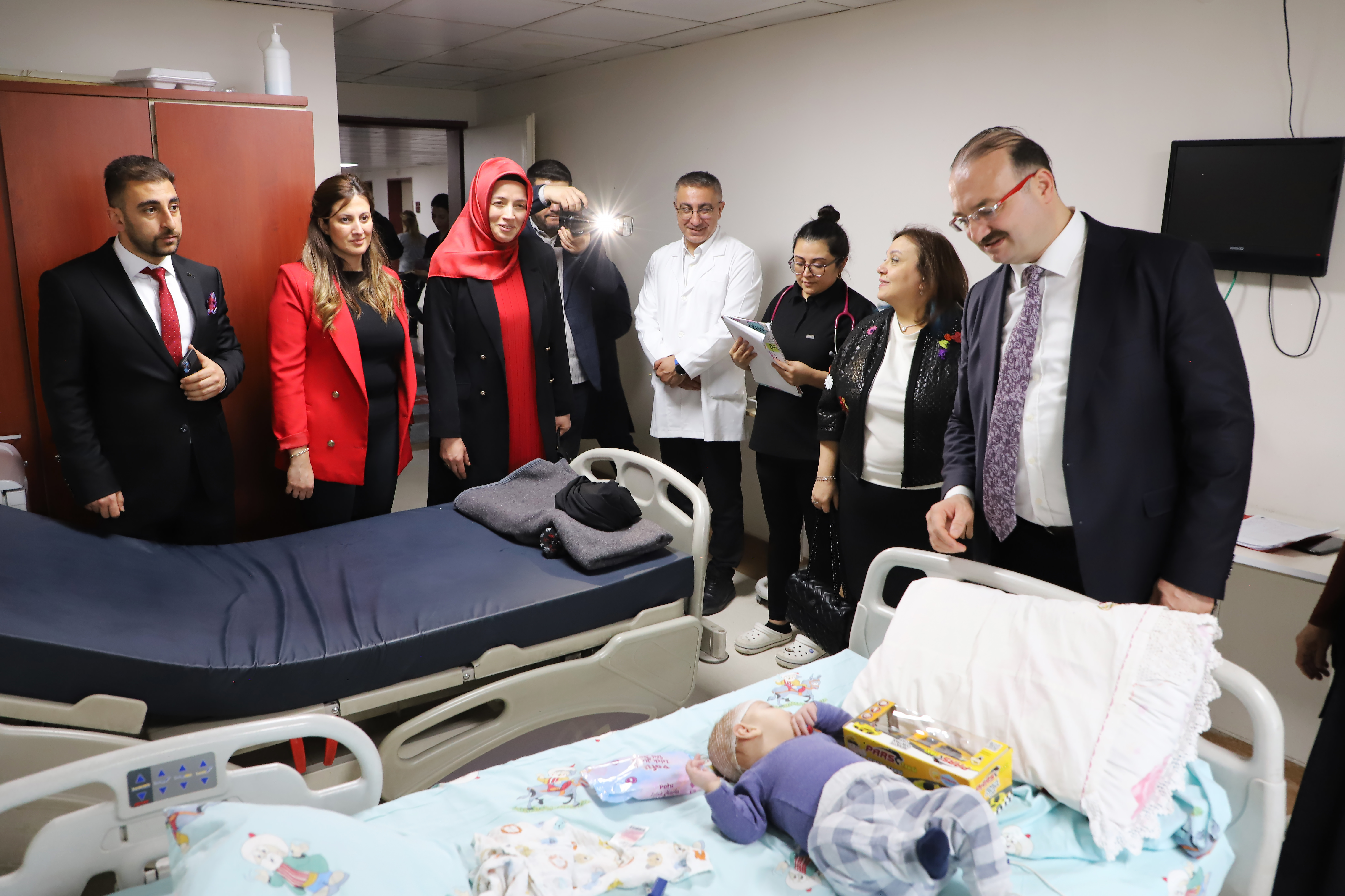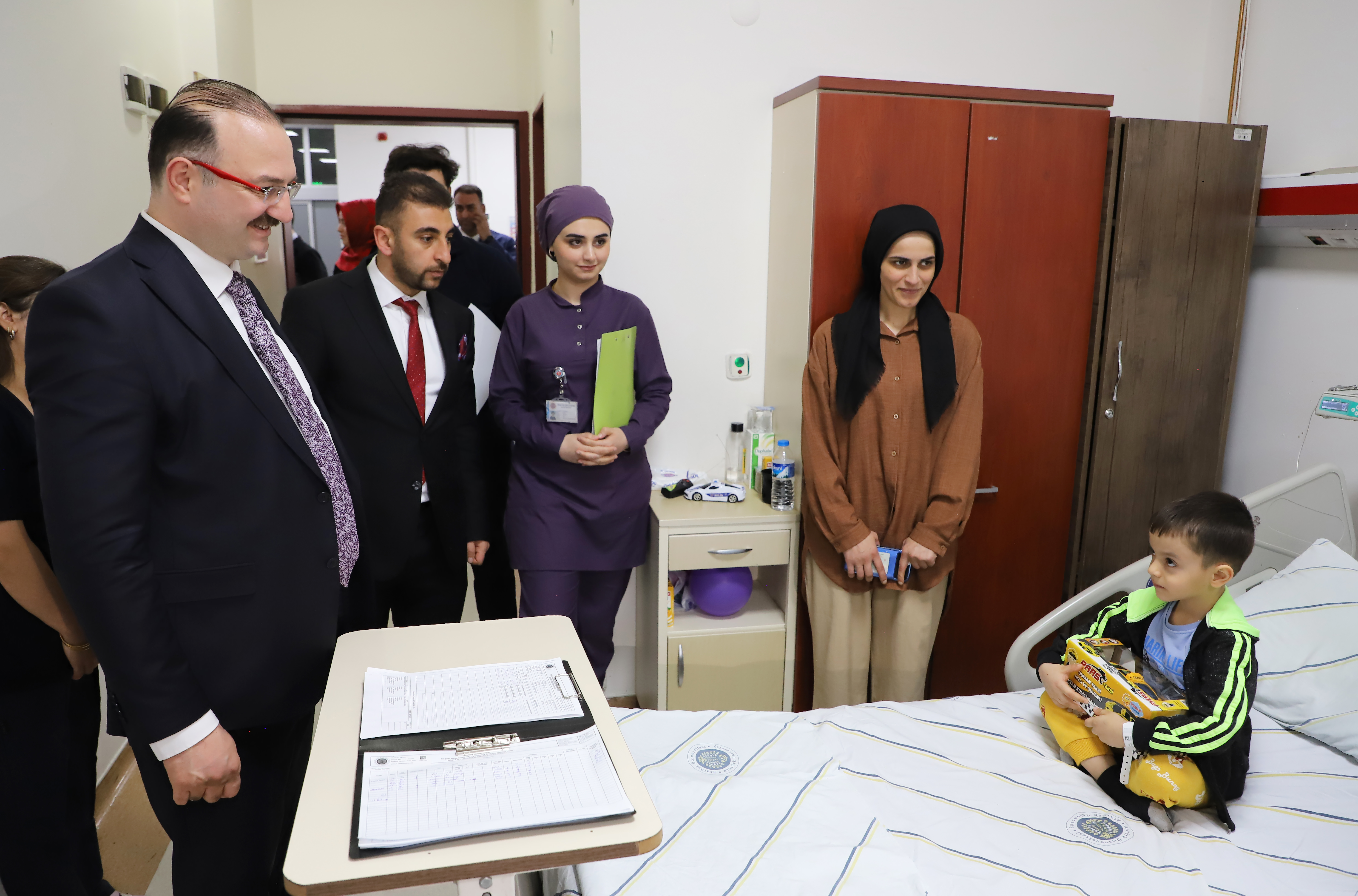 On the occasion of the Ramadan Feast, Prof. Dr. Ahmet Hacımüftüoğlu, the Rector of Atatürk University, and his wife, Prof. Dr. Esra Hacımüftüoğlu, visited infant and child patients undergoing treatment at the Atatürk University Research Hospital. The hospital administration and healthcare personnel accompanied the Hacımüftüoğlu couple, who celebrated the holiday of the patients and their families during the visit.