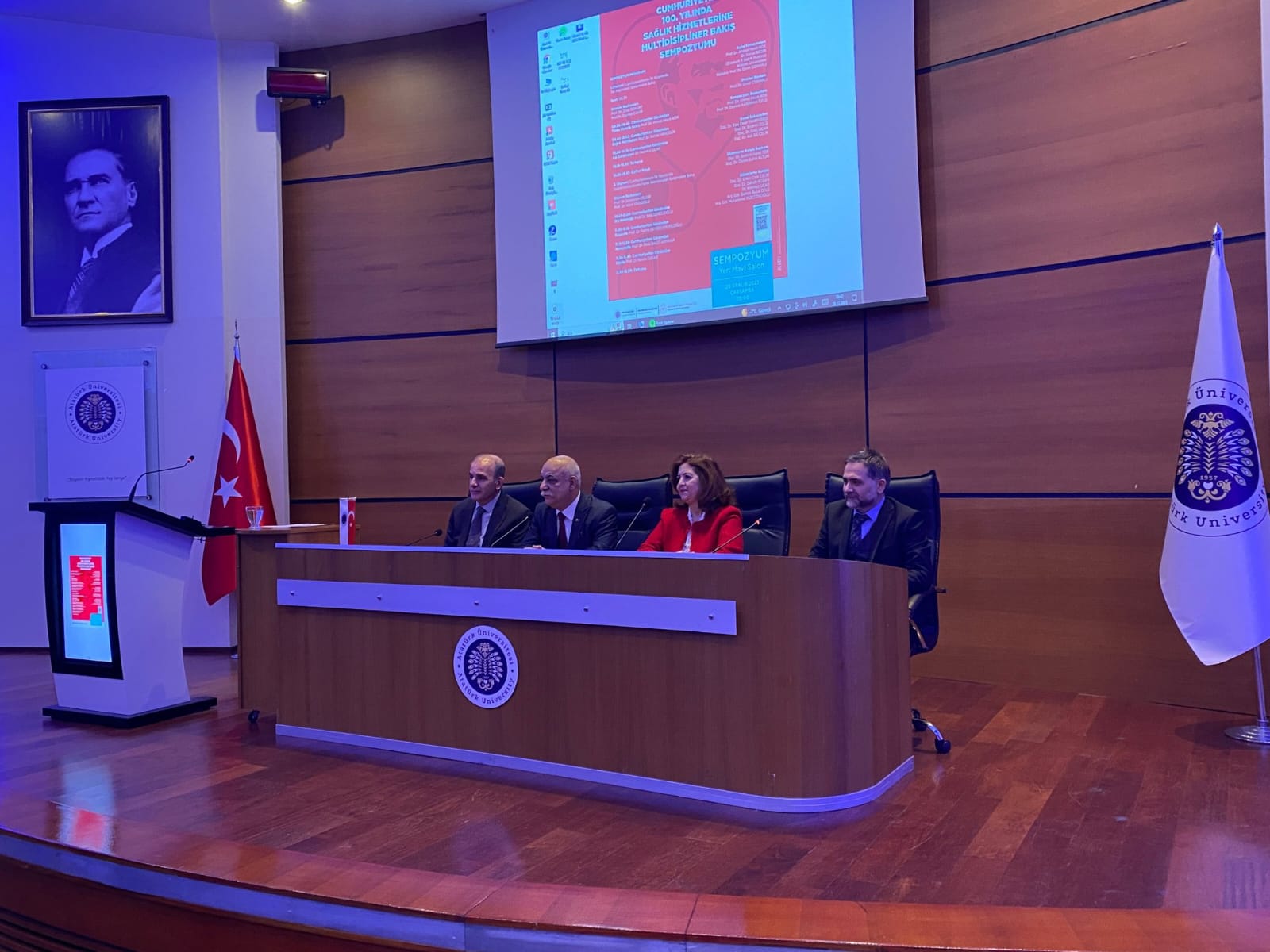 A discussion was held on the evolution of academic disciplines from the time of the Republic to the present.The first session of the symposium was conducted by Prof. Dr. Zülal Özkurt and Zeynep Çakır of the Faculty of Medicine. The presentation titled "Plathic View of Medicine from the Republic to the Present" was delivered by Ahmet Nezih Kök, who serves as the Head of the Department of Forensic Medicine at the Faculty of Medicine. Additionally, Prof. Dr. Serhat Vançelik's talk on "Health Policies from the Republic to the Present" marked the conclusion of the event.