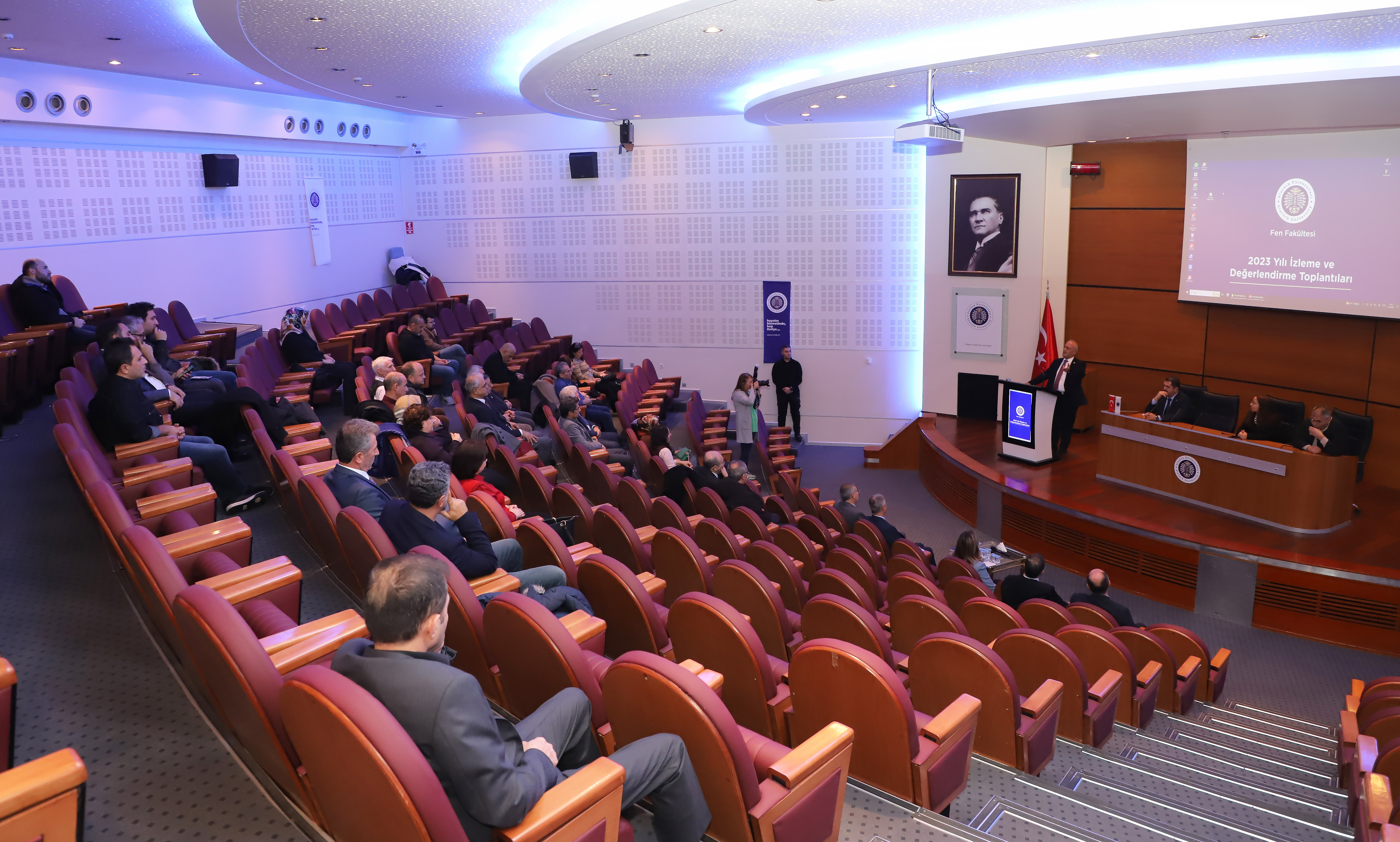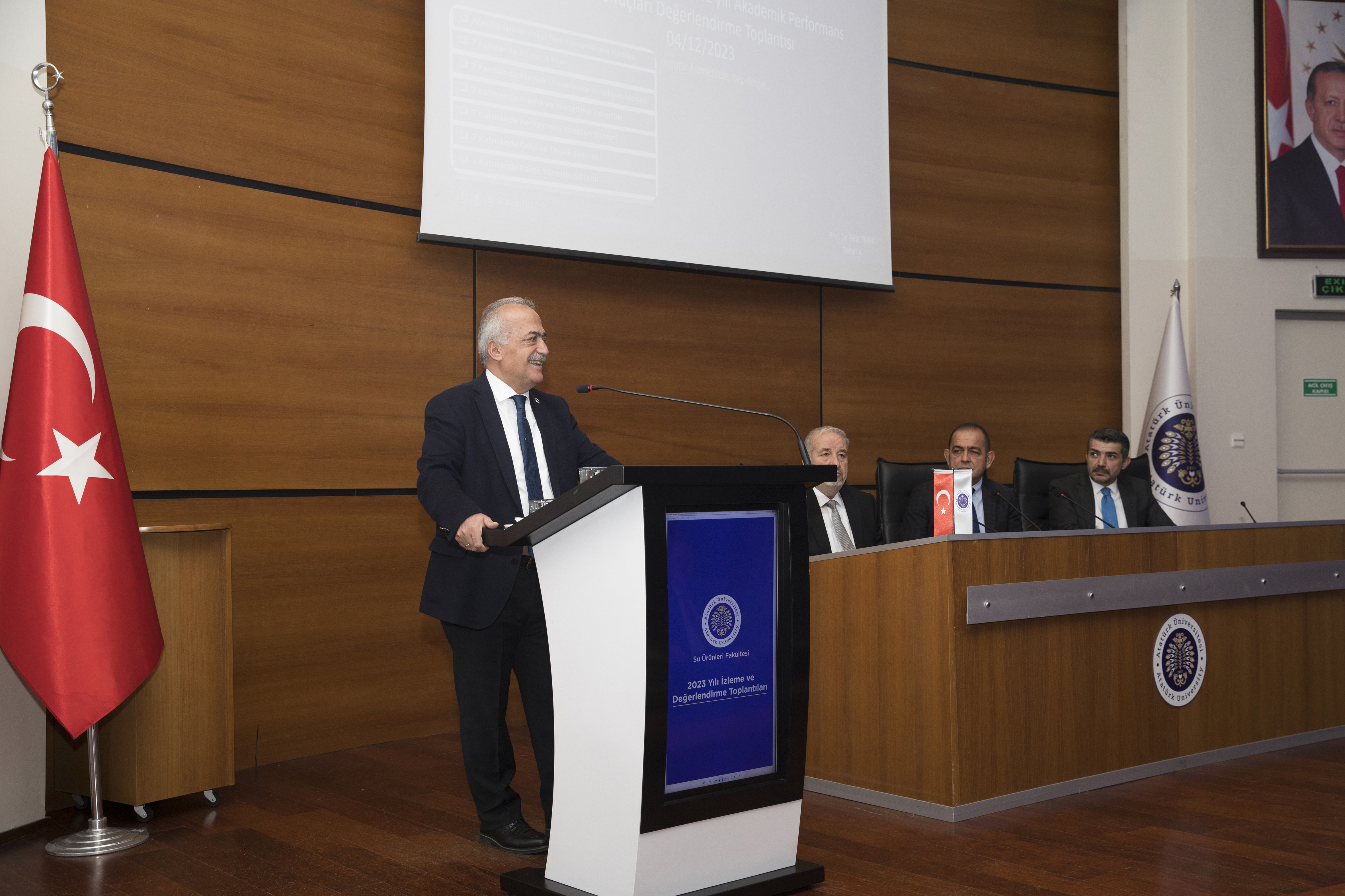Rector Çomaklı and his management team, who met with the academicians of the Faculty of Aquaculture in the morning and the Faculty of Science in the afternoon in the Blue Hall of the Culture Centre, made presentations to the deans of faculties and college directors about the work carried out in their units.