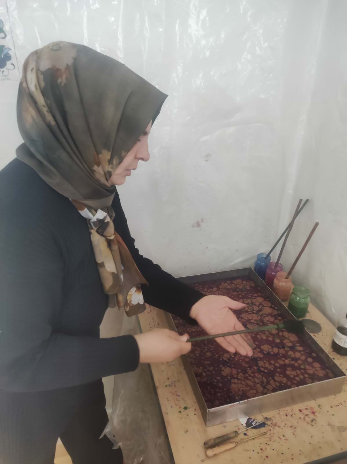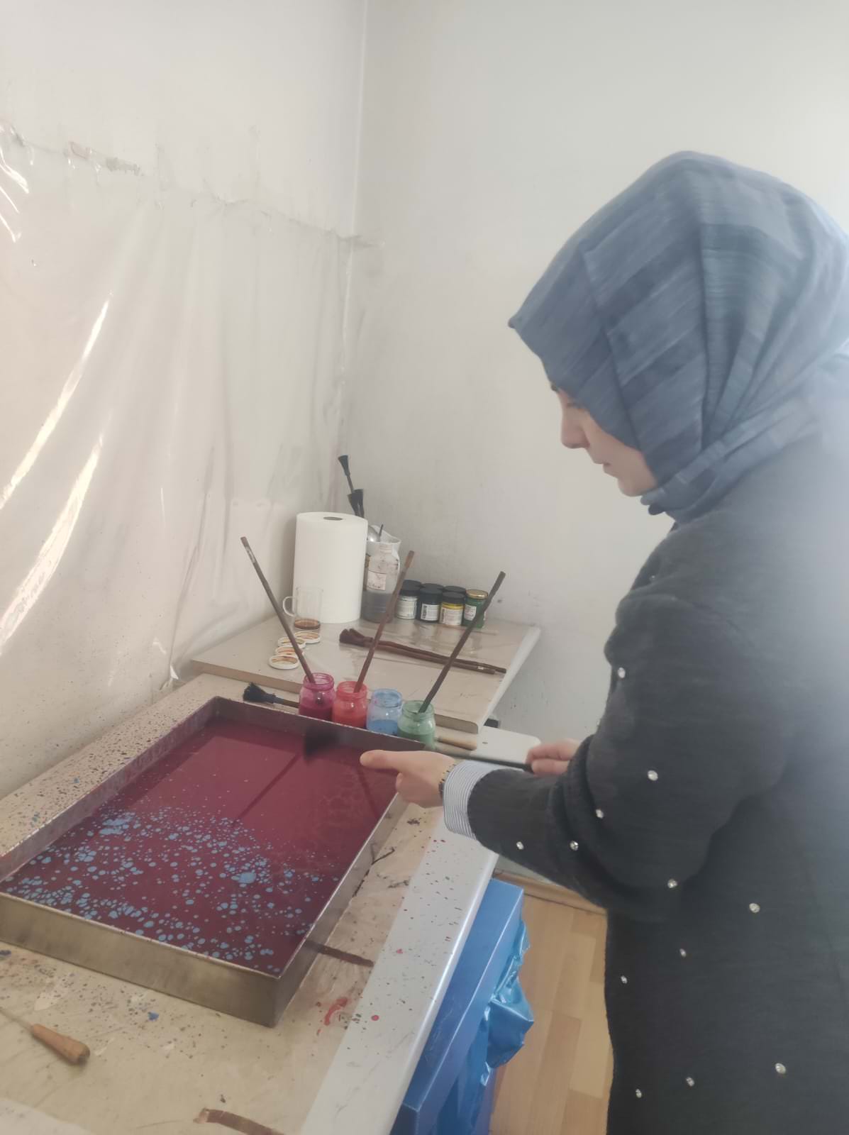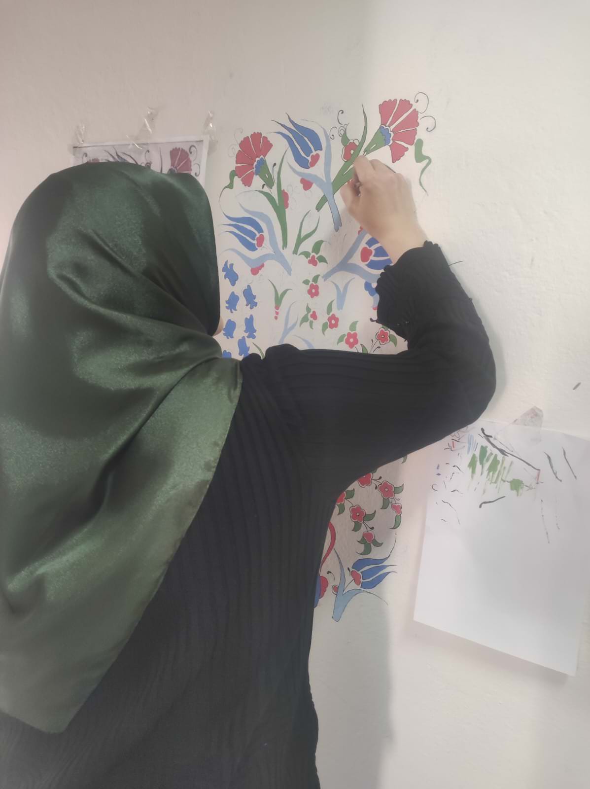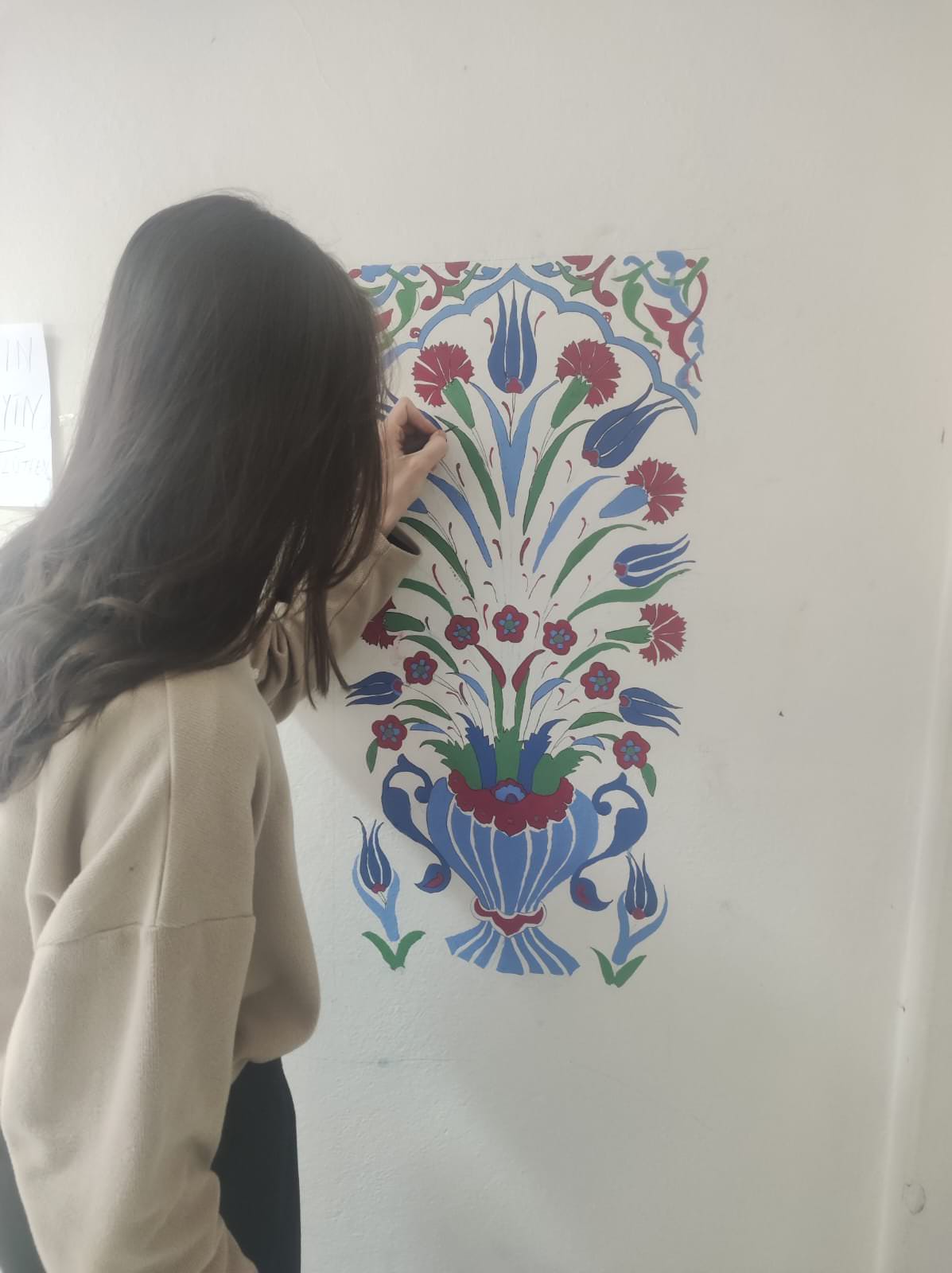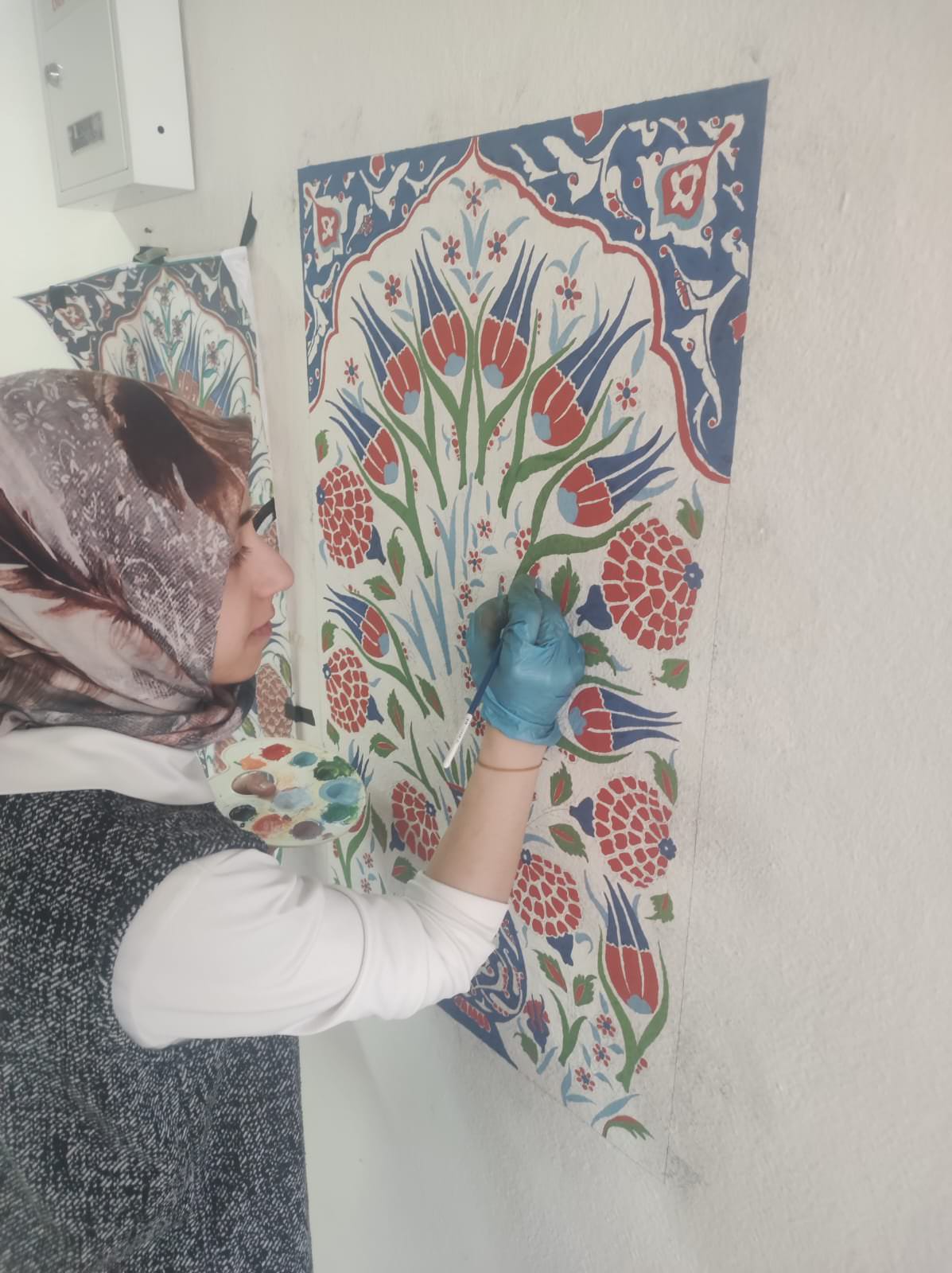 Lecturer Aydan Akkök provided students with practical training that invigorated traditional handicrafts, under the guidance of Technical Sciences Vocational School Director Prof. Dr. Hayrunnisa Nadaroğlu. The objectives of both glorifying cultural heritage and providing a contemporary interpretation of art were effectively achieved through the preparation of works in areas such as calligraphy, miniature, tile, and marbling.