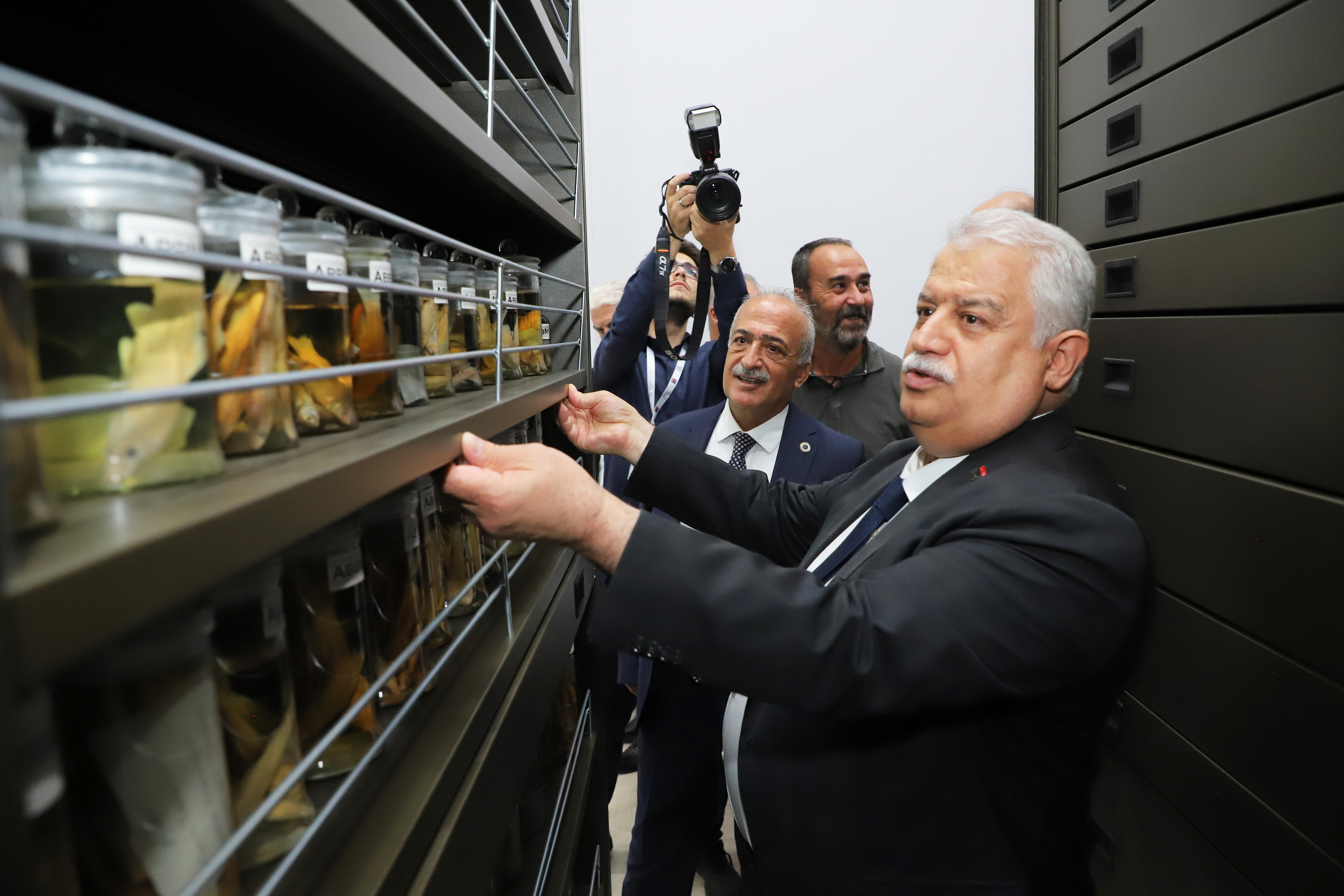 Within the scope of the visit accompanied by the Center Director Prof. Dr. Levent Gültekin, the Biodiversity Science Museum was visited, where the studies carried out as a center were talked about. Noting that there are basically 4 laboratories in the Application and Research Center, such as the animal and plant kingdom laboratory and taxonomy and molecular systematics, and that they conduct joint research with international scientists and convey information to the society with the education and application laboratory, Gültekin said that they intensively scan every corner of the world, especially the Eastern Anatolia Region. He stated that they protected the special species they found and said that they made an intense effort to fulfill their responsibilities towards future generations.