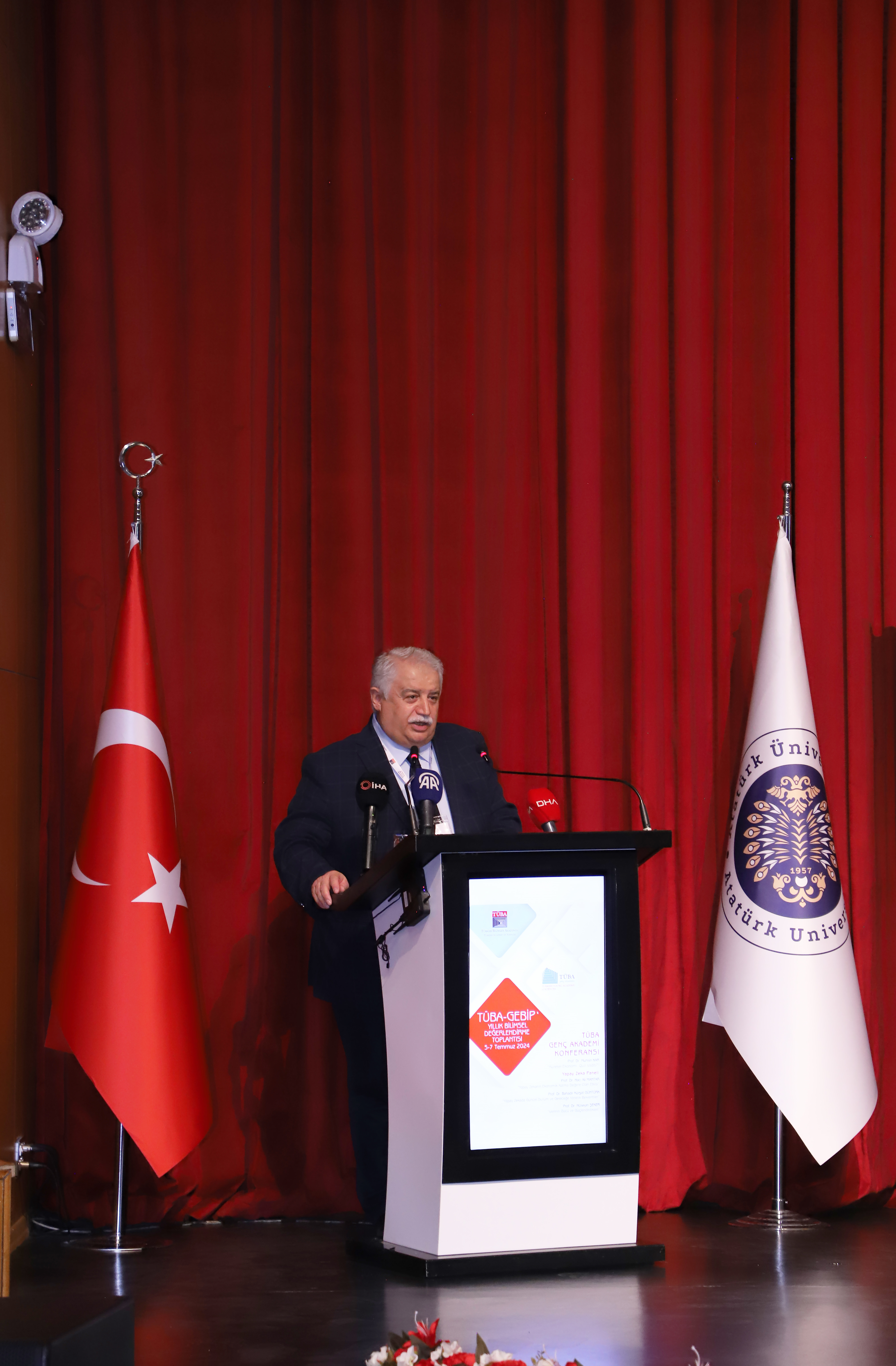 The event commenced with the opening remark of Atatürk University Rector Prof. Dr. Ömer Çomaklı and continued with the release of the promotional film after the National Anthem and the moment of silence, followed by the musical performance of Turkish Music State Conservatory lecturer Derya Eroğlu. Çomaklı expressed his pride and joy in hosting the 2024 TÜBA-GEBİP Annual Scientific Evaluation Meeting in Erzurum, one of the most exceptional cities in Turkey, due to its history, culture, and distinctive natural features. He stated, "By promoting research and science, which is one of the most esteemed award programs in our country, the 2024 TÜBA-GEBİP Annual Scientific Evaluation Meeting serves a critical role in guiding young people toward the scientific and research fields." I would like to begin by emphasizing that we are honored to be hosting the Traditional TÜBA-GEBİP Annual Scientific Evaluation Meeting for the second time since 2001. This event will feature the presentation and evaluation of the academic accomplishments of exceptional young scientists. I would like to express my gratitude to Mr. Muzaffer Şeker, the President of TÜBA, for his support in facilitating the organization of this meeting at our university.