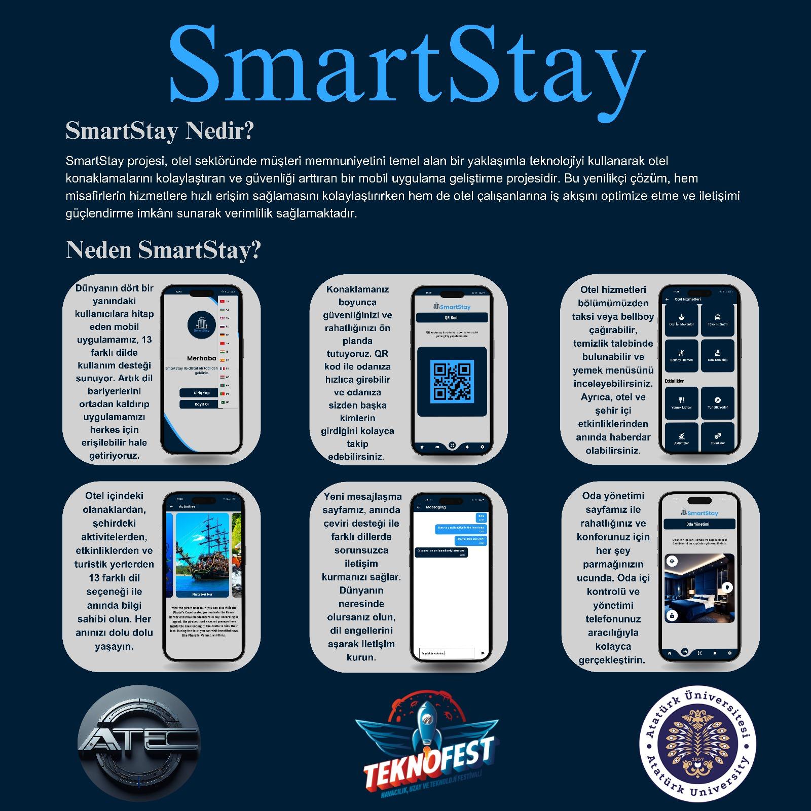 Supervised by Research Assistant Rabiye Kılıç, ATEC developed SmartStay with its team comprising Erhan Kahveci, Erhan Yüksel Turgut, Enes Rıdvan Şahin, Ferdi Demir, Tunahan Özgenç, Hakan Enes Demir, Emre Aktay; with its user-friendly interface and unique features, it represents a transformation intertwined with technology in the hotel sector and aims to strengthen the competitive advantage of businesses while increasing customer satisfaction.