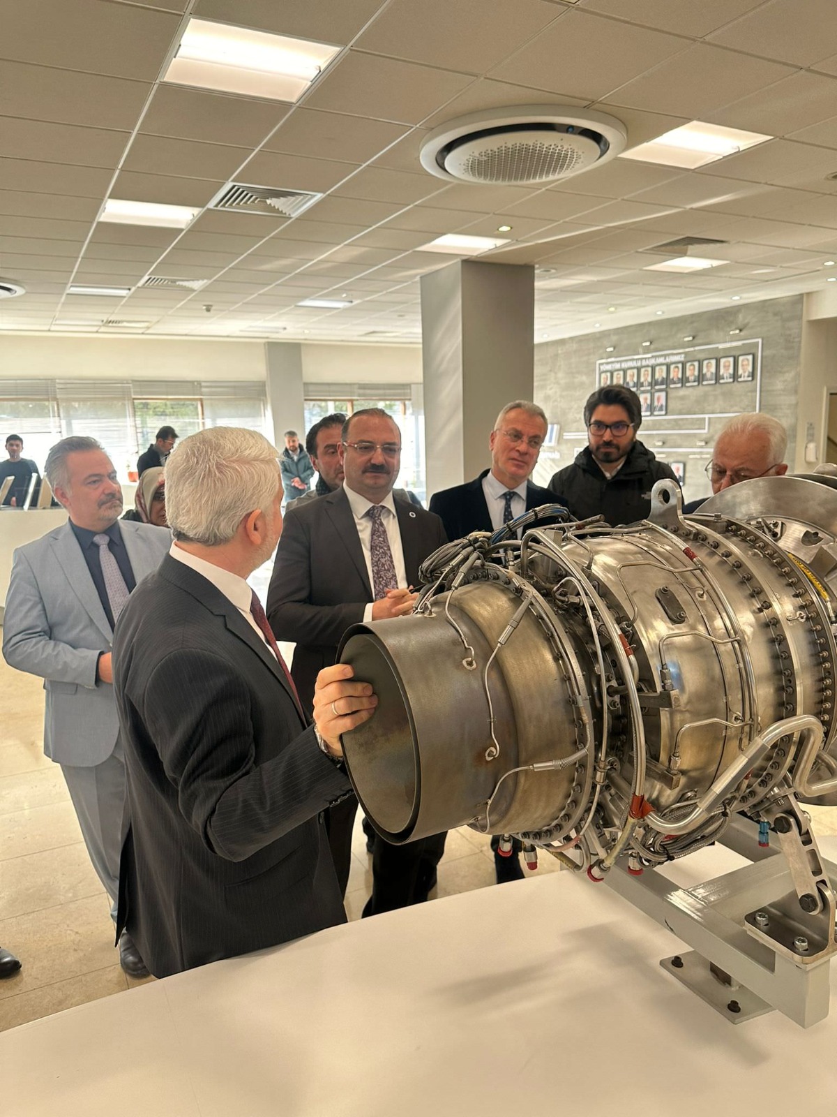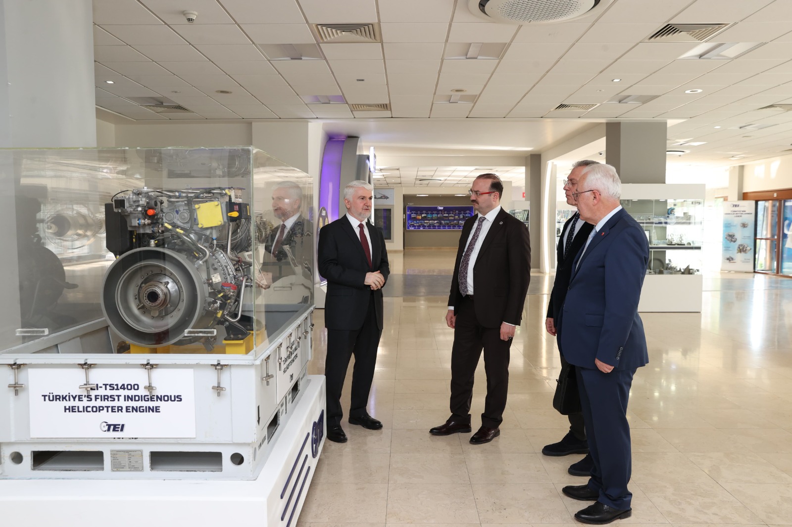 Prof. Dr. Ahmet Hacımüftüoğlu, the Rector of Ataturk University, and his delegation of seven individuals visited TUSAŞ Motor Sanayii A.Ş. during their visit to Eskişehir. He convened with Mahmut Akşit, the General Manager of (TEI), and his technical staff.