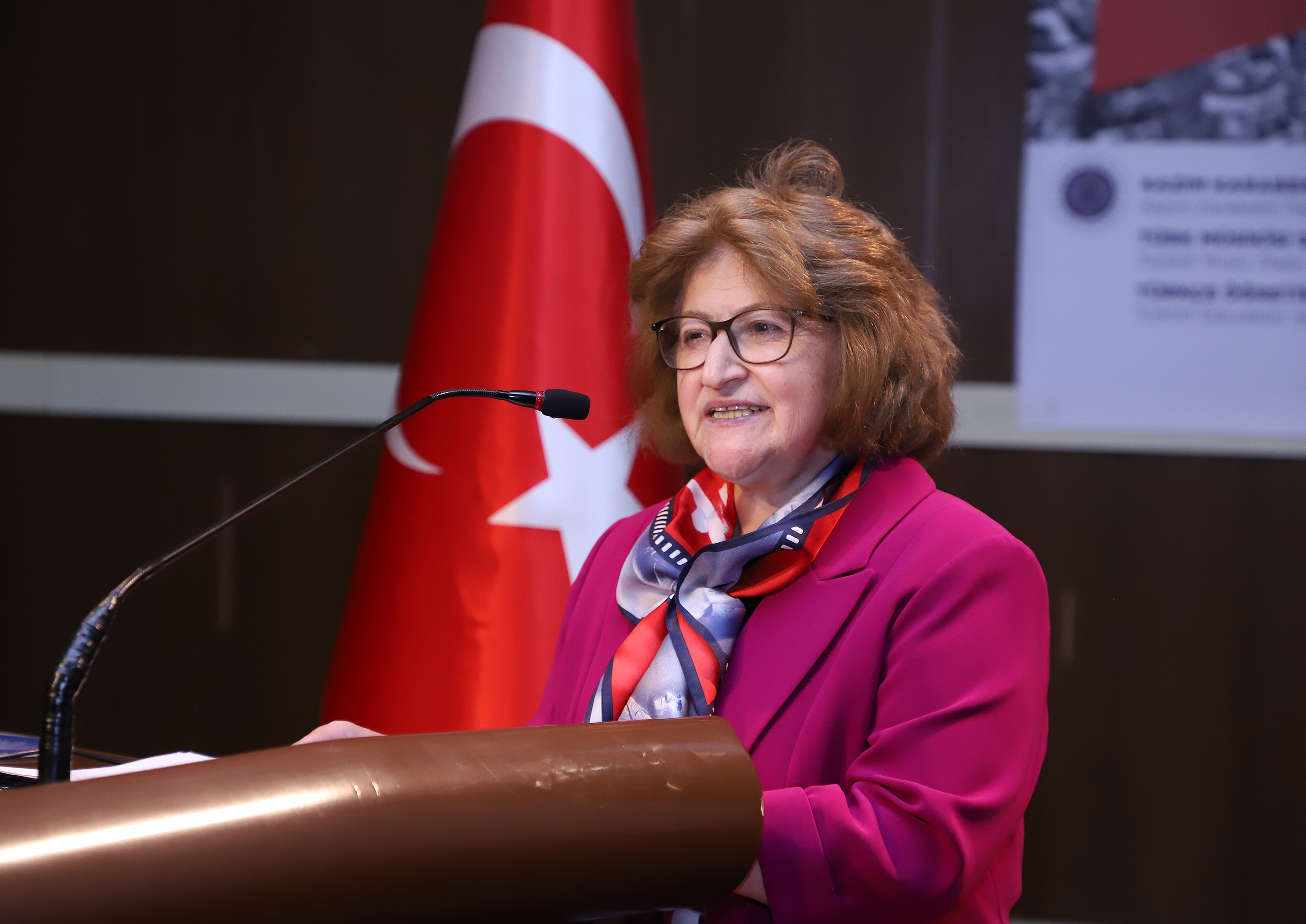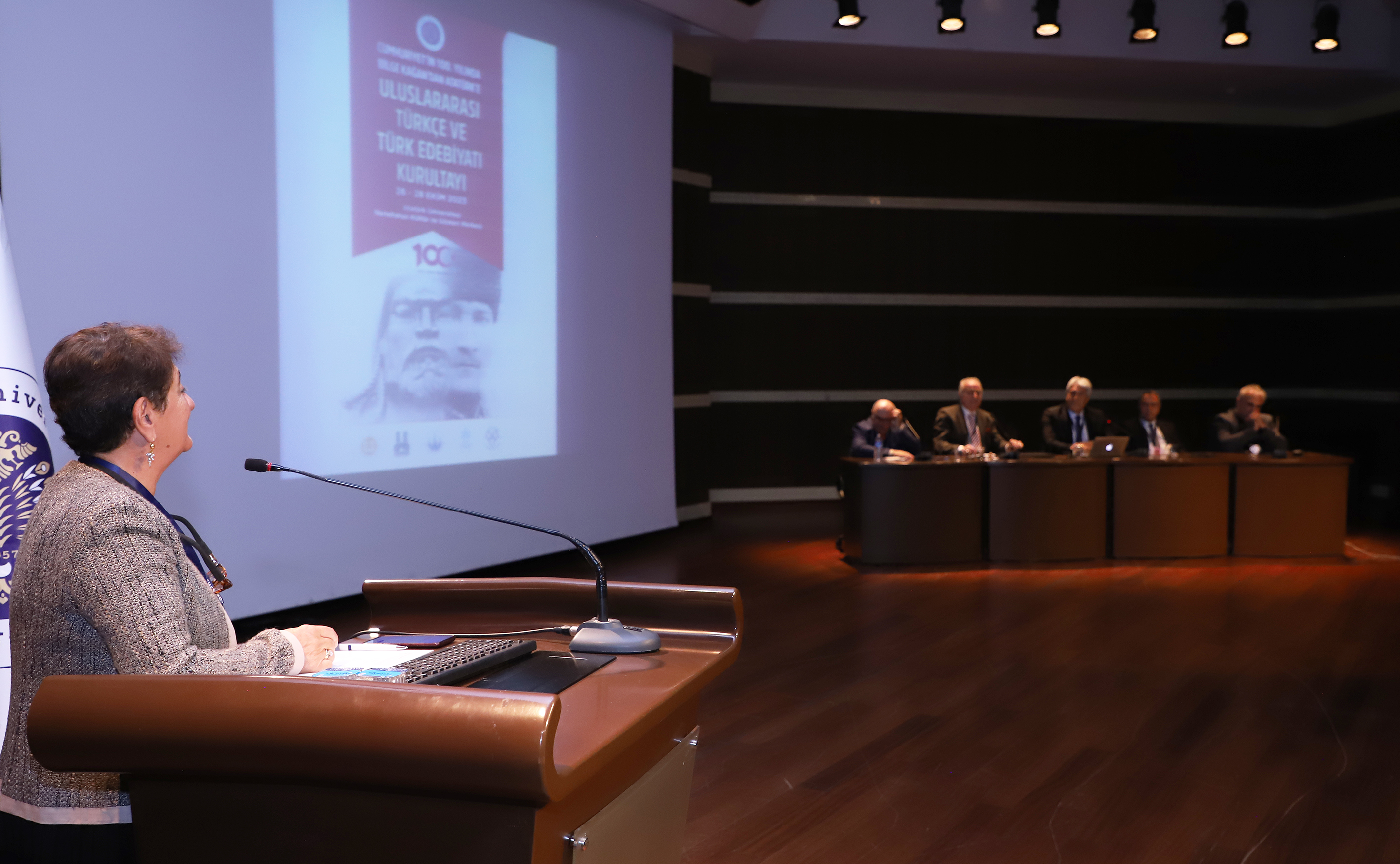 Prof. Dr. Muhsine Börekci, a faculty member in the Turkish Education Department of the Kazım Karabekir Faculty of Education, delivered the opening address on behalf of the organizing committee. She expressed their delight at being able to host the International Turkish and Turkish Literature Congress from Bilge Kağan to Atatürk in the Centenary of the Republic at Atatürk University in Erzurum, where the Republic's sun rises.