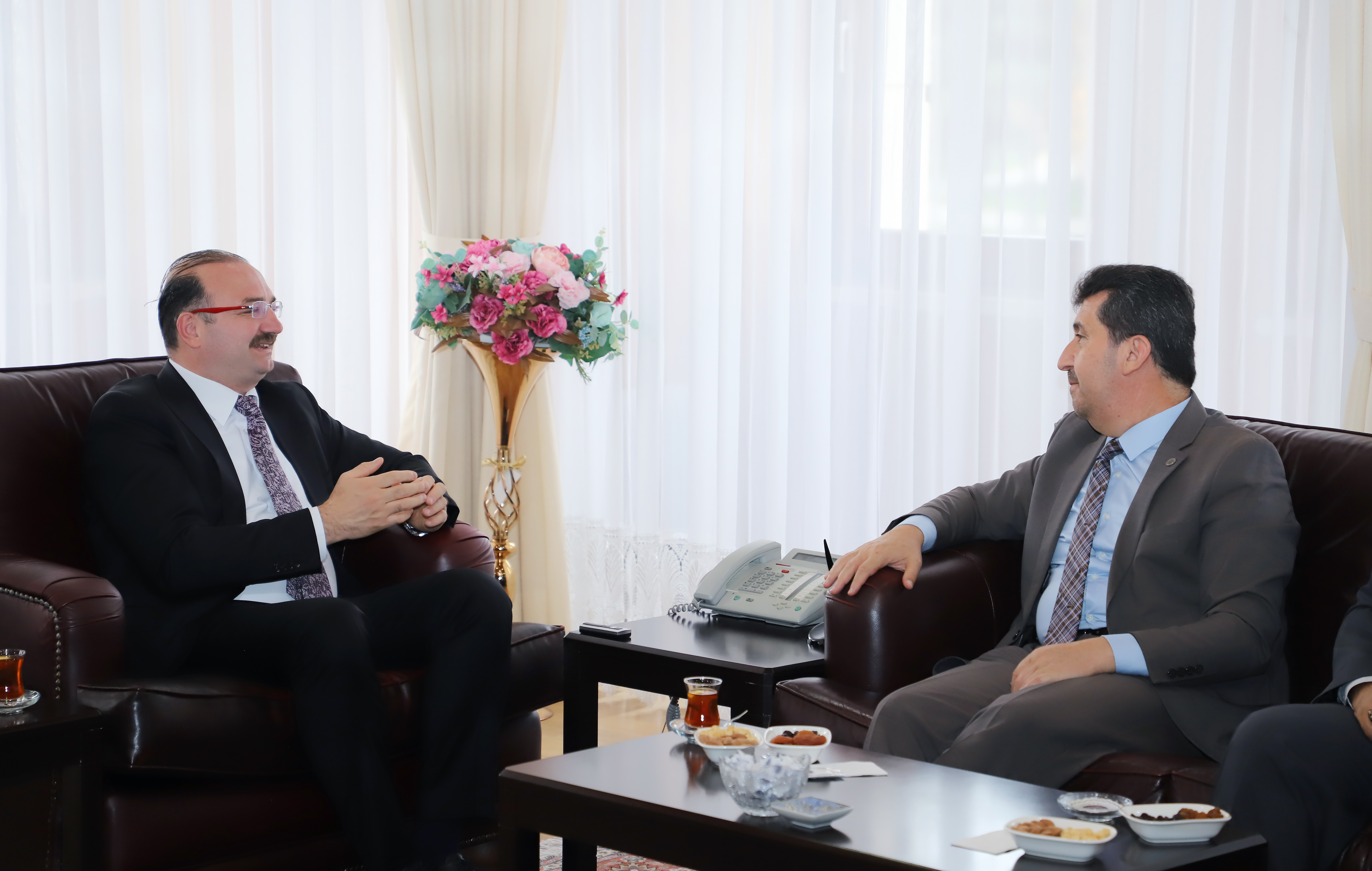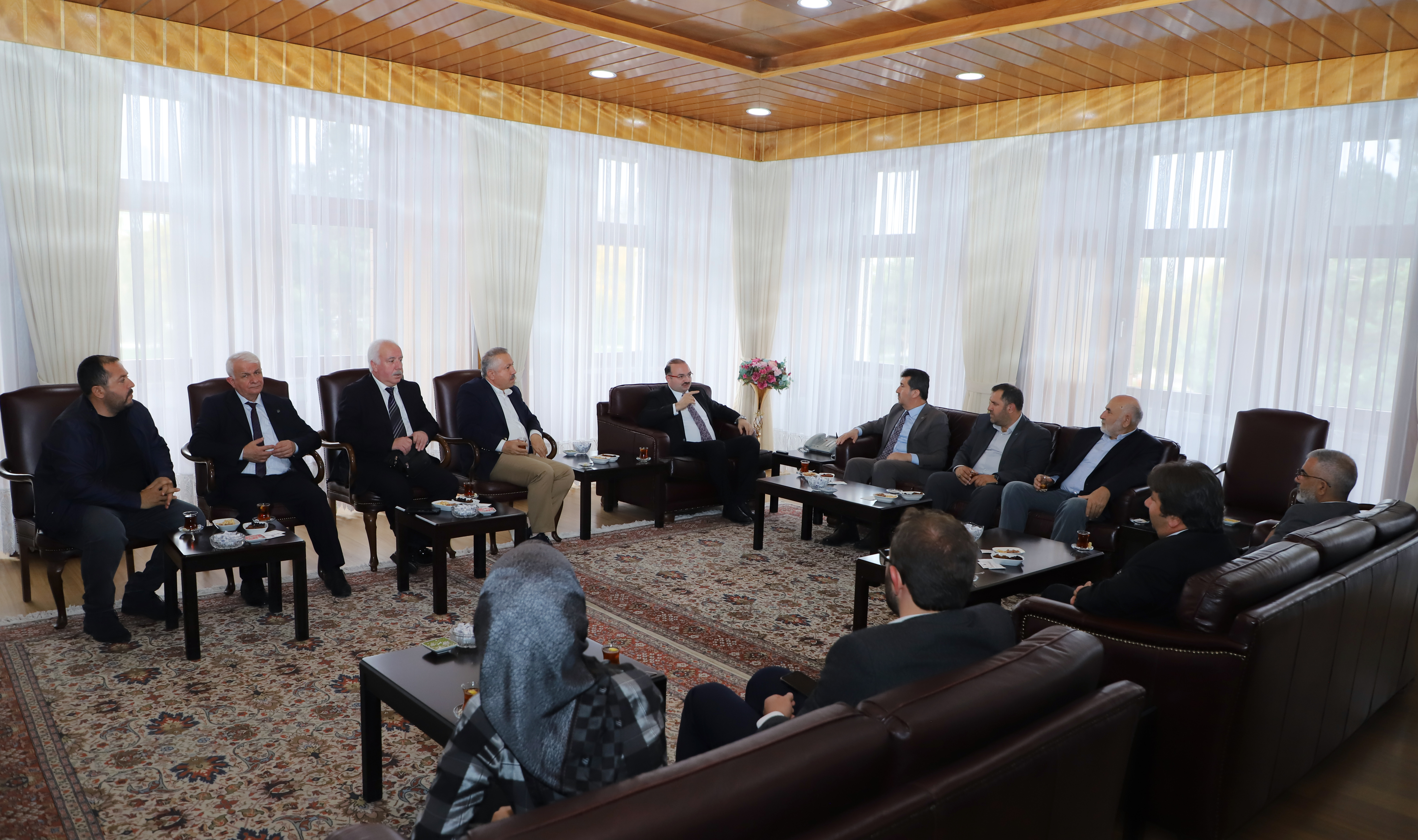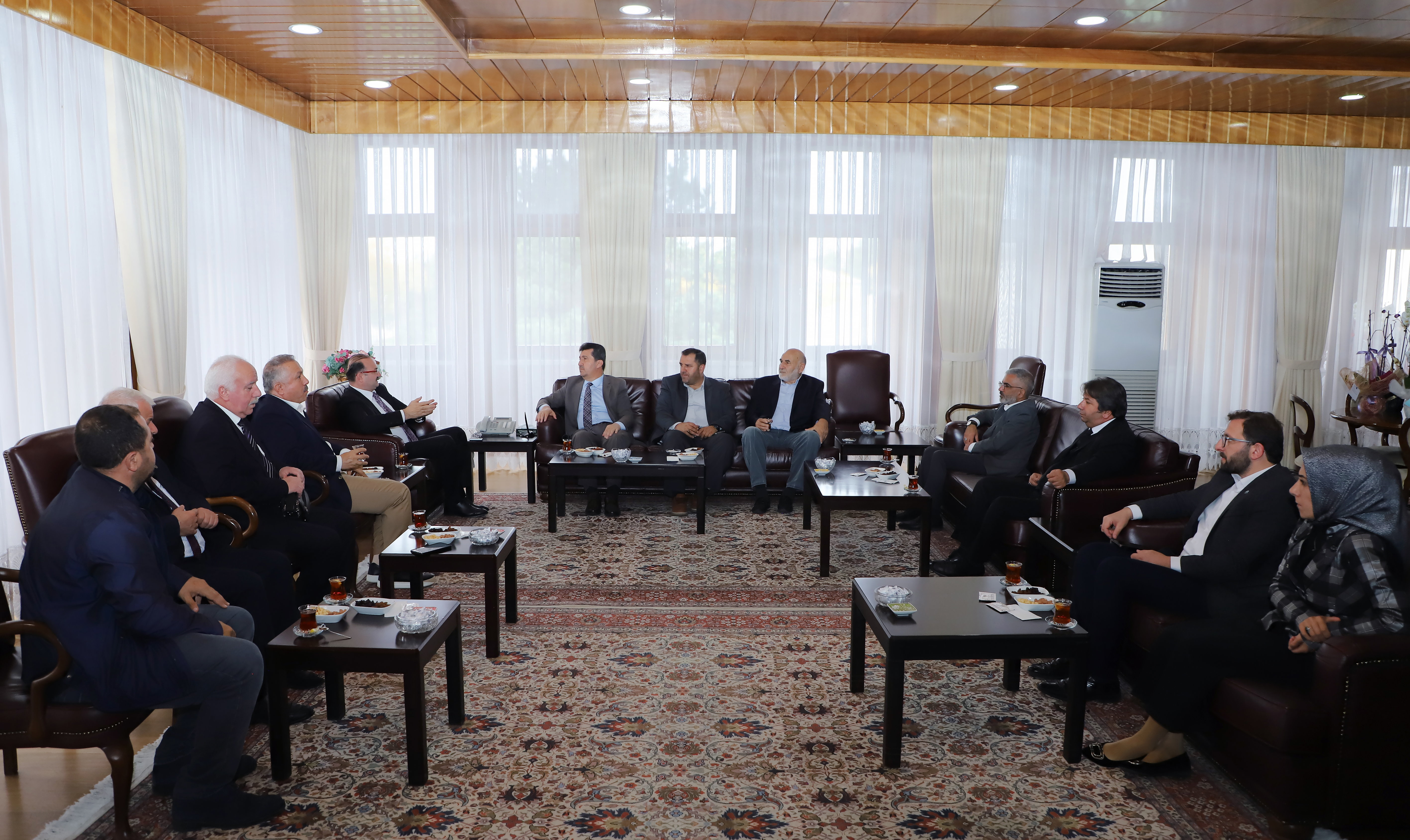 Rector of Ankara Social Sciences University and President of TYB Prof. Dr. Musa Kazım Arıcan, who came to Erzurum to participate in the panel ‘A Cultural Pioneer who fermented Anatolia D. Mehmet Doğan’ organised in memory of D. Mehmet Doğan, Founder and Honorary President of the Writers‘ Union of Turkey (TYB), hosted by Atatürk University, visited Atatürk University Rector Prof. Dr. Ahmet Hacımüftüoğlu in his office with the delegation of the Writers’ Union of Turkey.