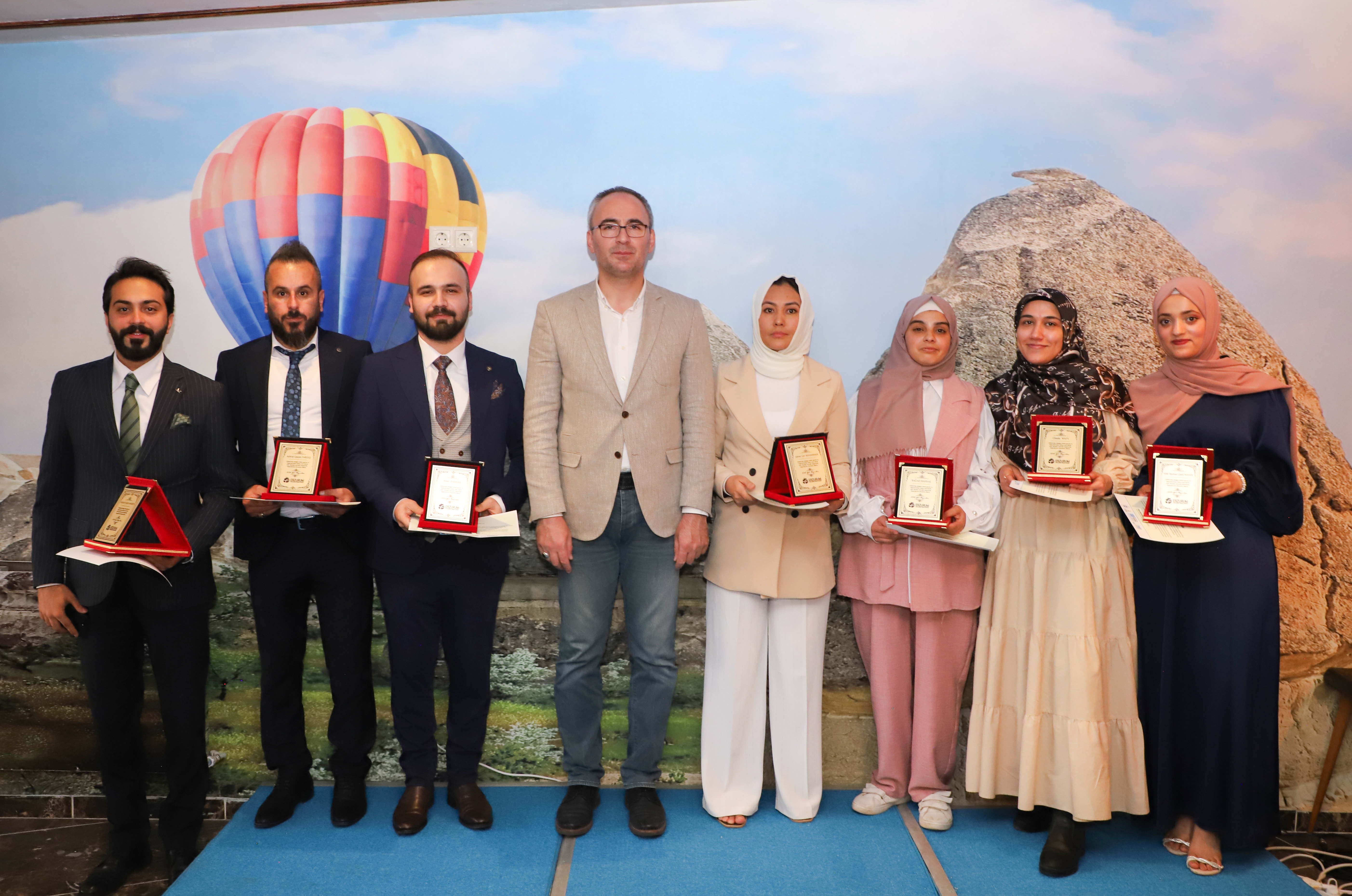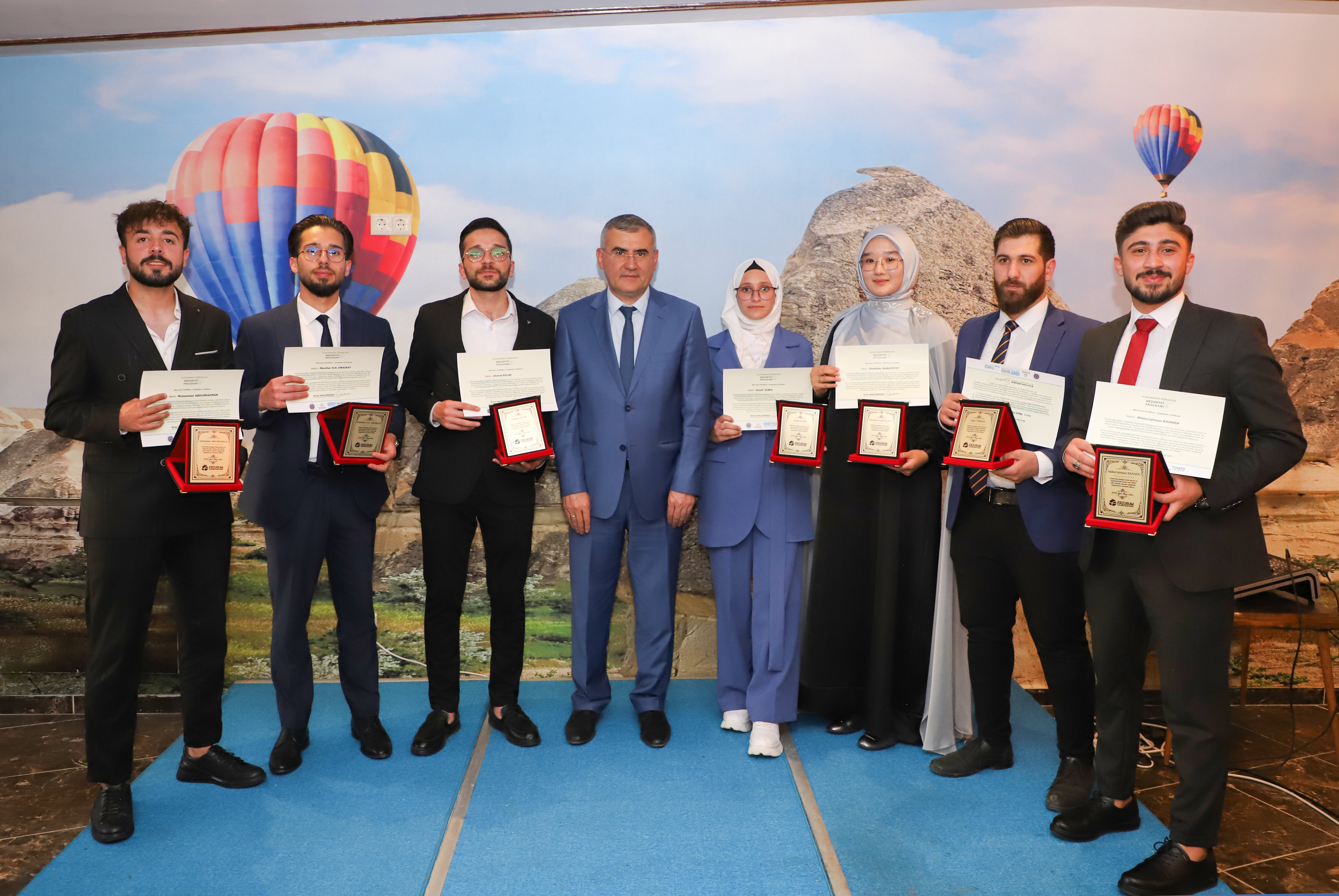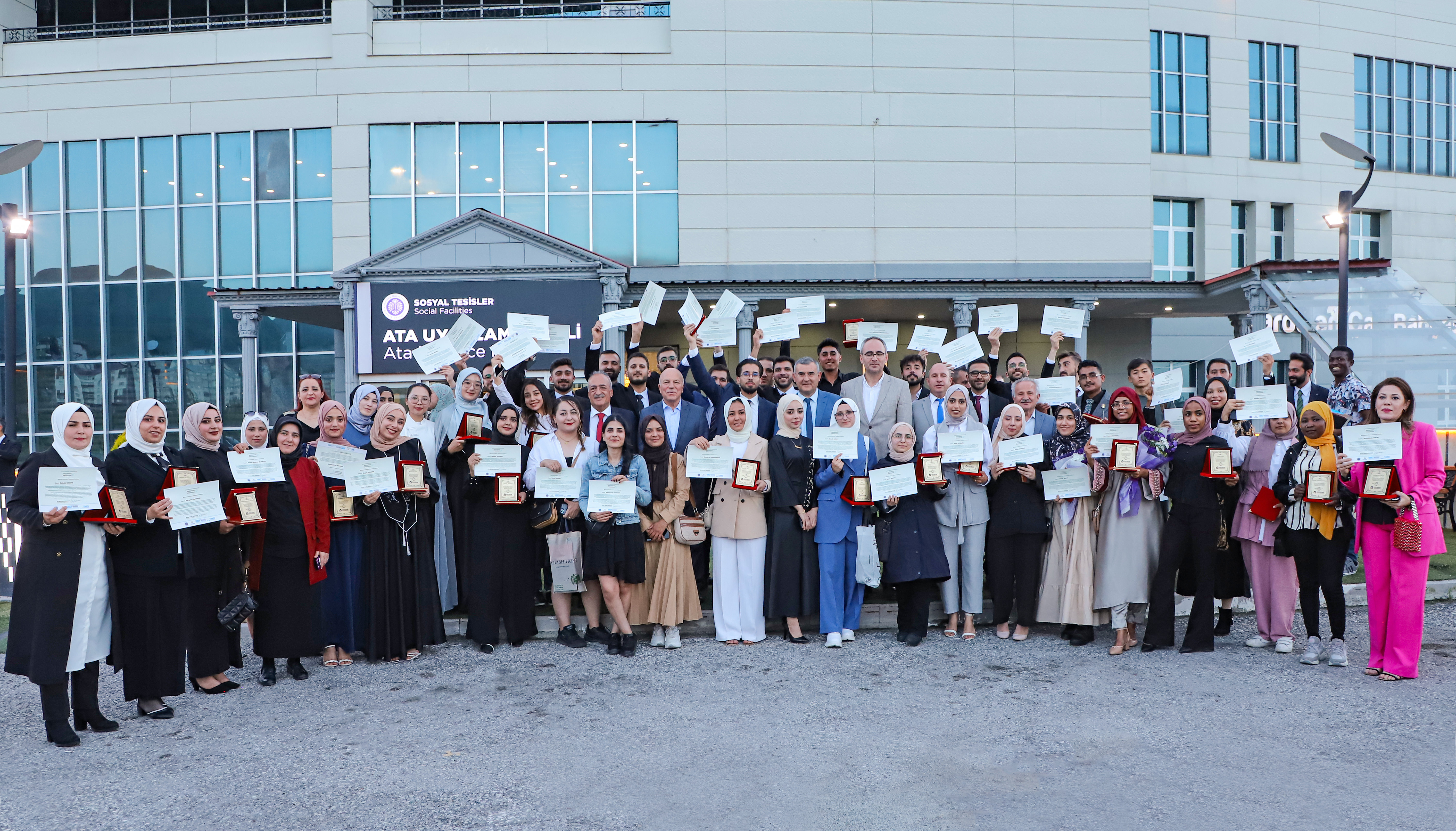 Erzurum Metropolitan Mayor Mehmet Sekmen, UDEF 7th Regional President Ergün Halis, Erzurum International Student Association President Ertan Aksakal, and graduating students were among the attendees at the ceremony, which took place at the Ata Application Hotel. Additionally, Atatürk University Rector Prof. Dr. Ömer Çomaklı was in attendance.