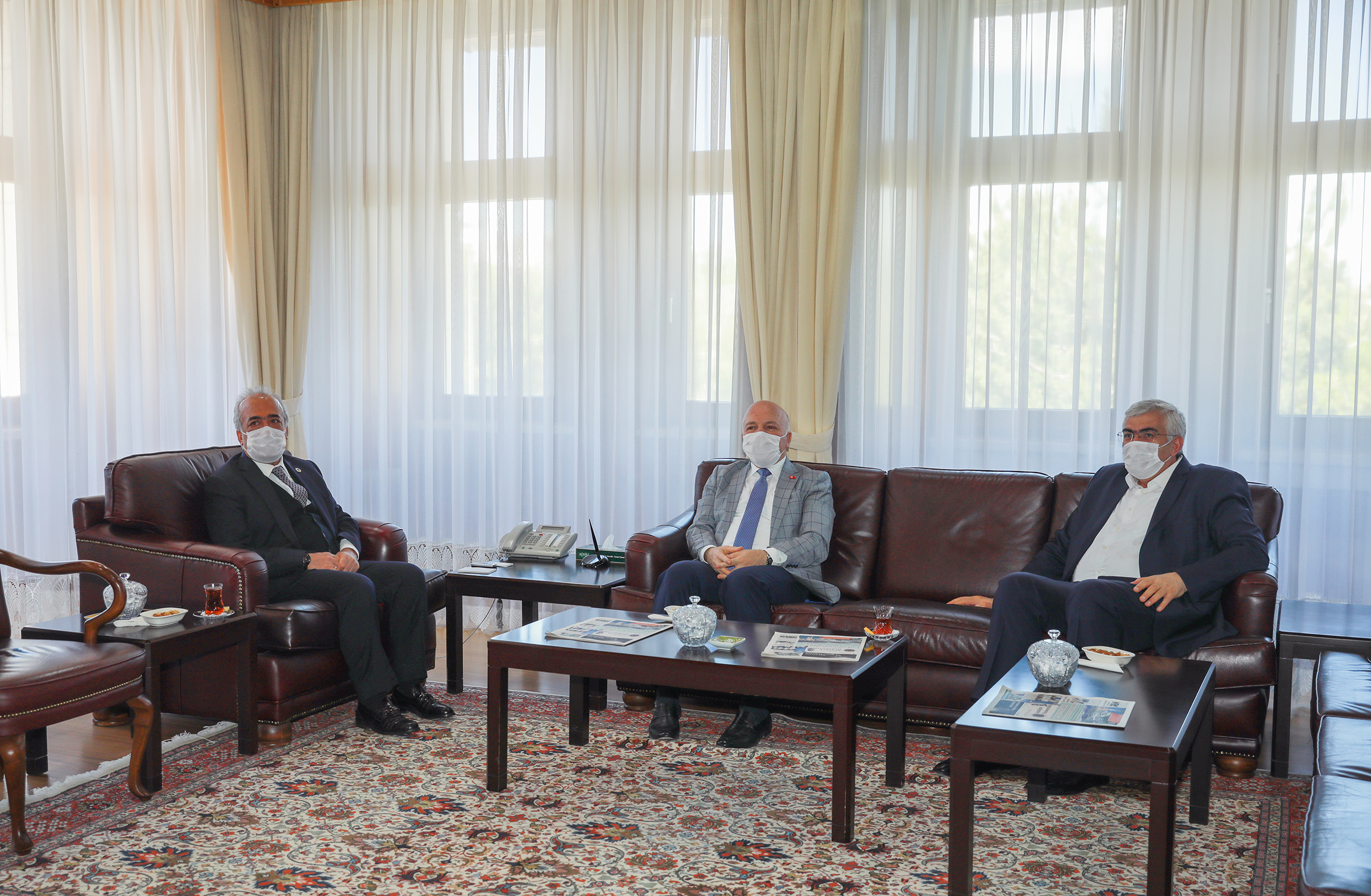 Welcoming the leaders of the Erzurum Metropolitan Municipality, one of the most important partners of Atatürk University in social, cultural, scientific and economic terms; and the AK Party Provincial Directorate, with whom it has been in social solidarity during the pandemic, Rector Çomaklı exchanged ideas with his guests about the city and the university.