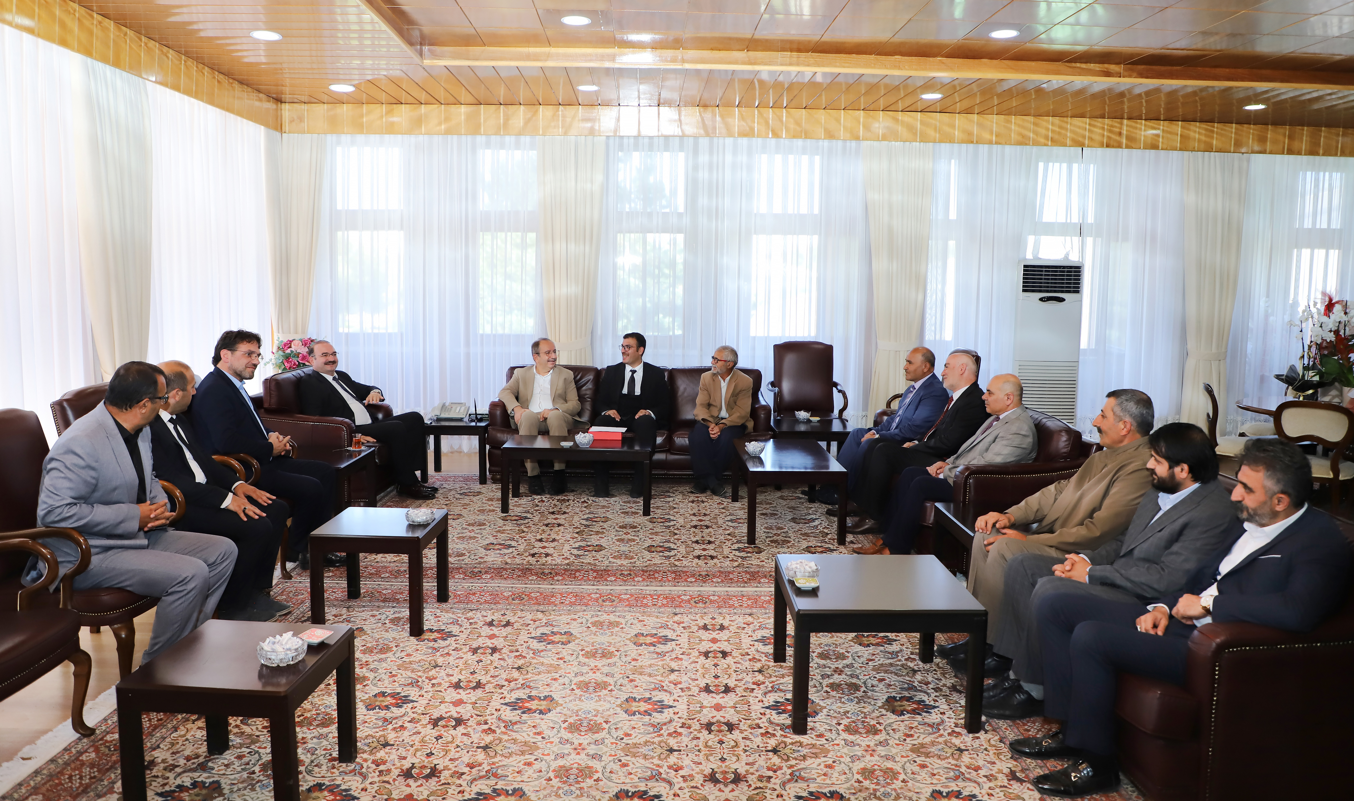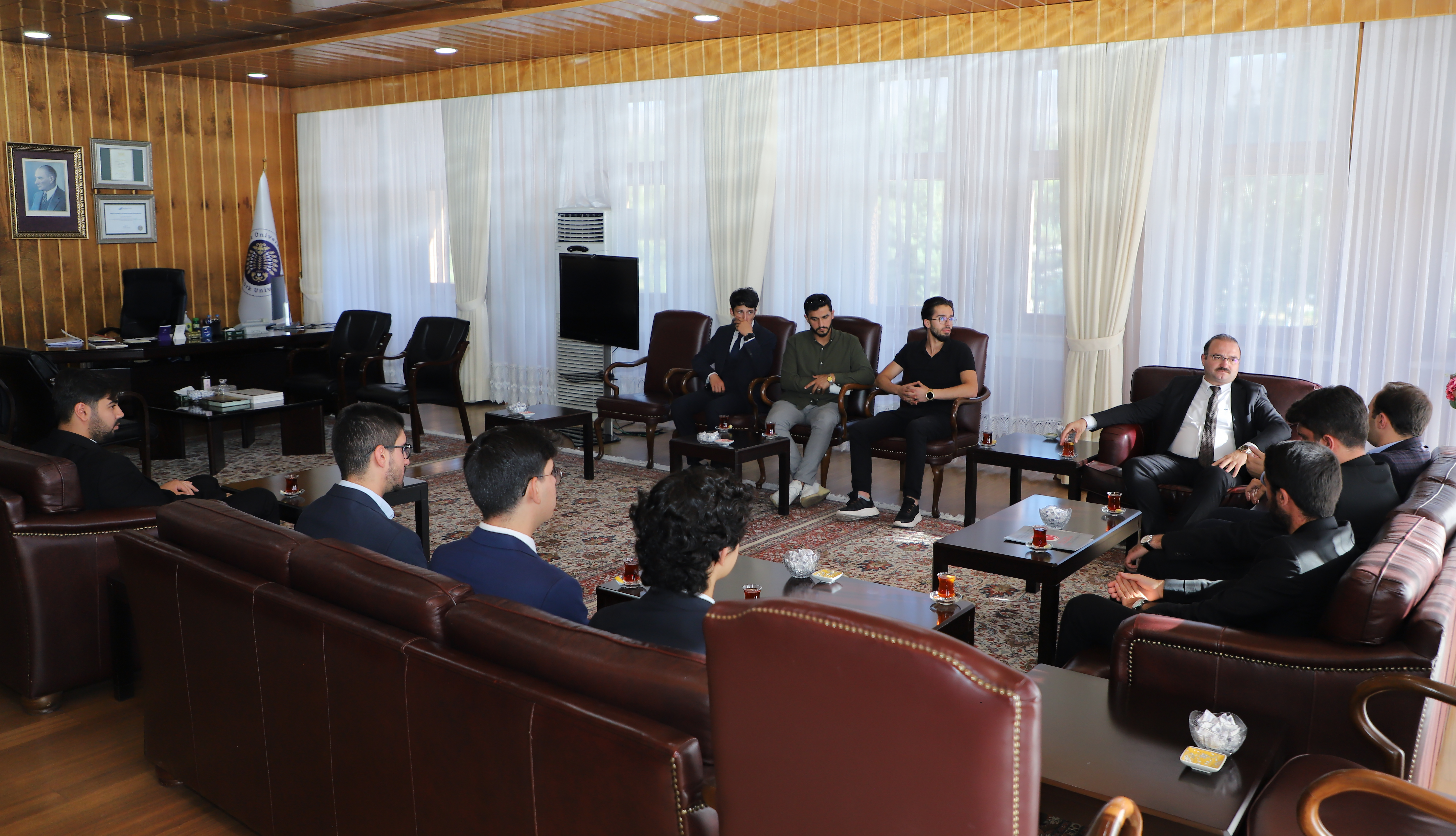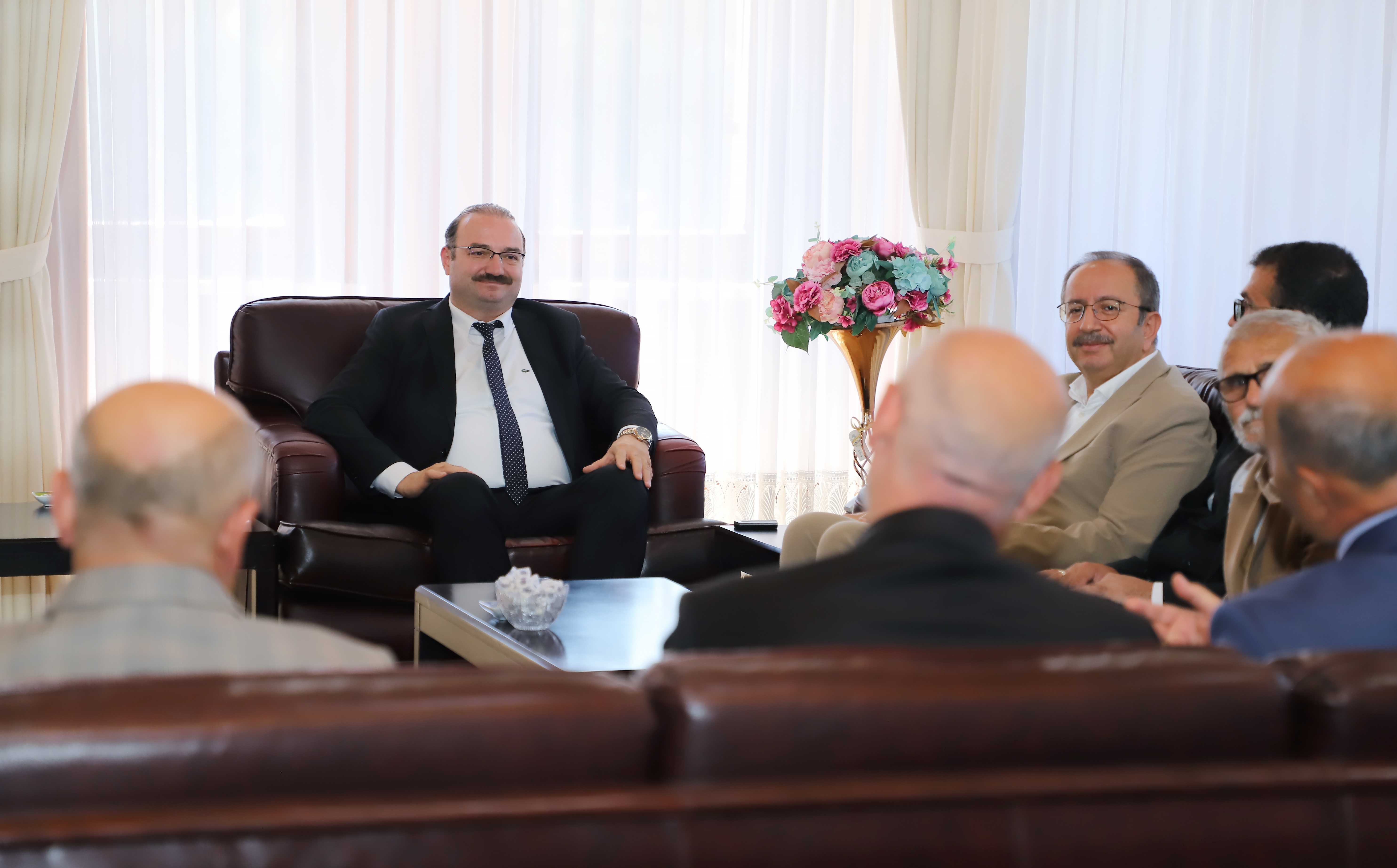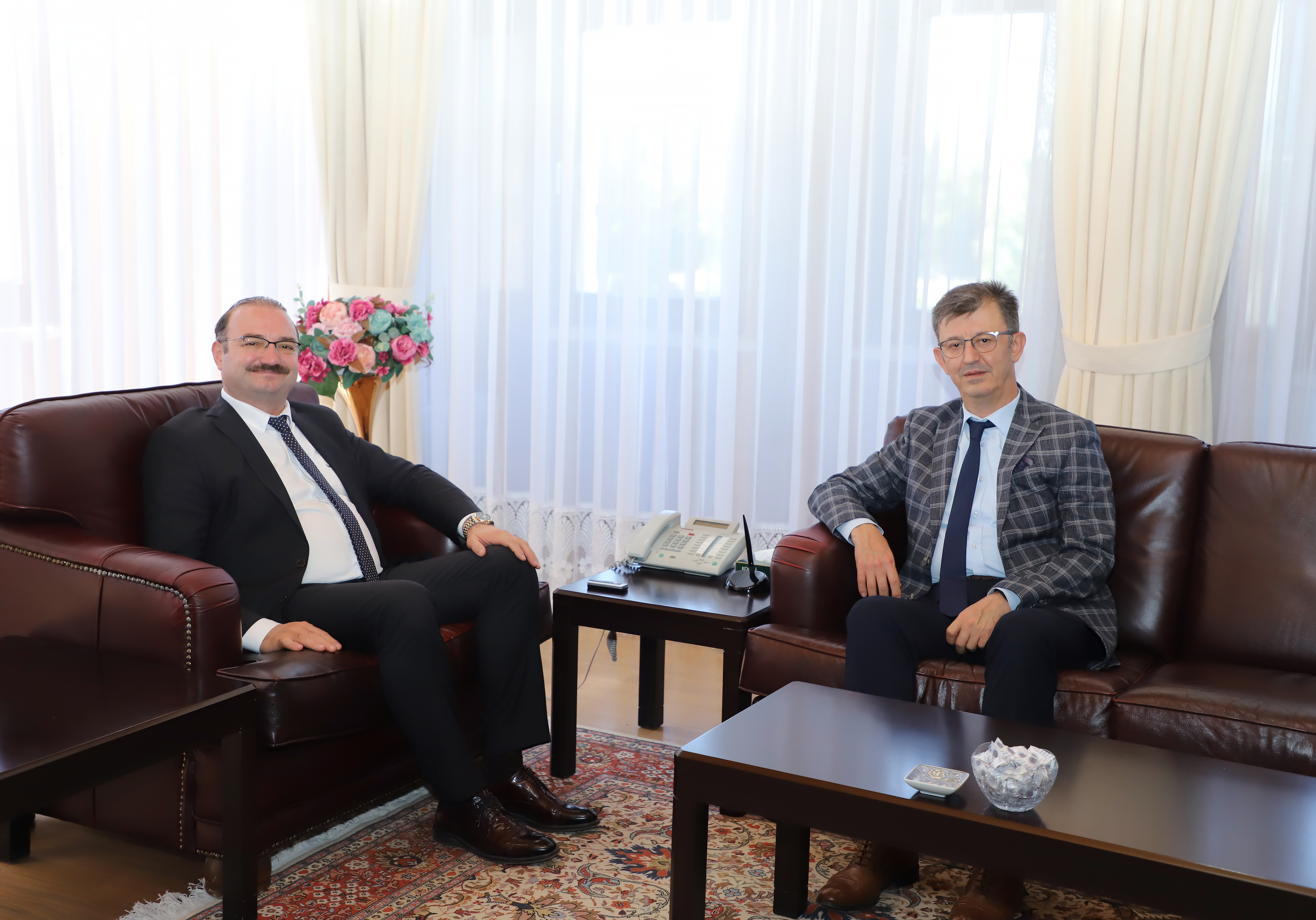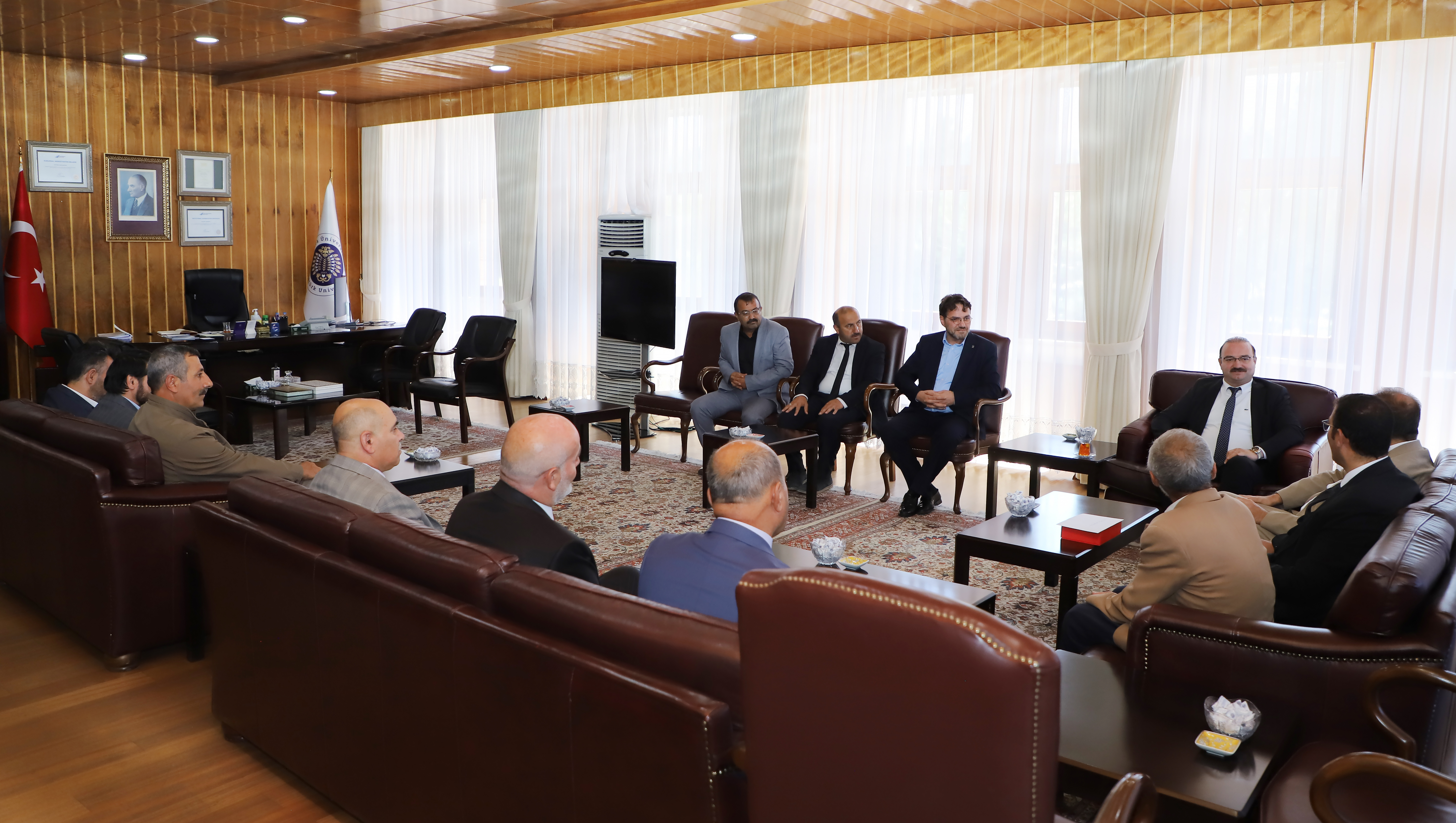 During his congratulatory visits, Rector Prof. Dr. Ahmet Hacımüftüoğlu of Atatürk University is engaging in discussions with his guests regarding common areas of work and is continuing to exchange ideas on projects that will promote university-city collaboration.