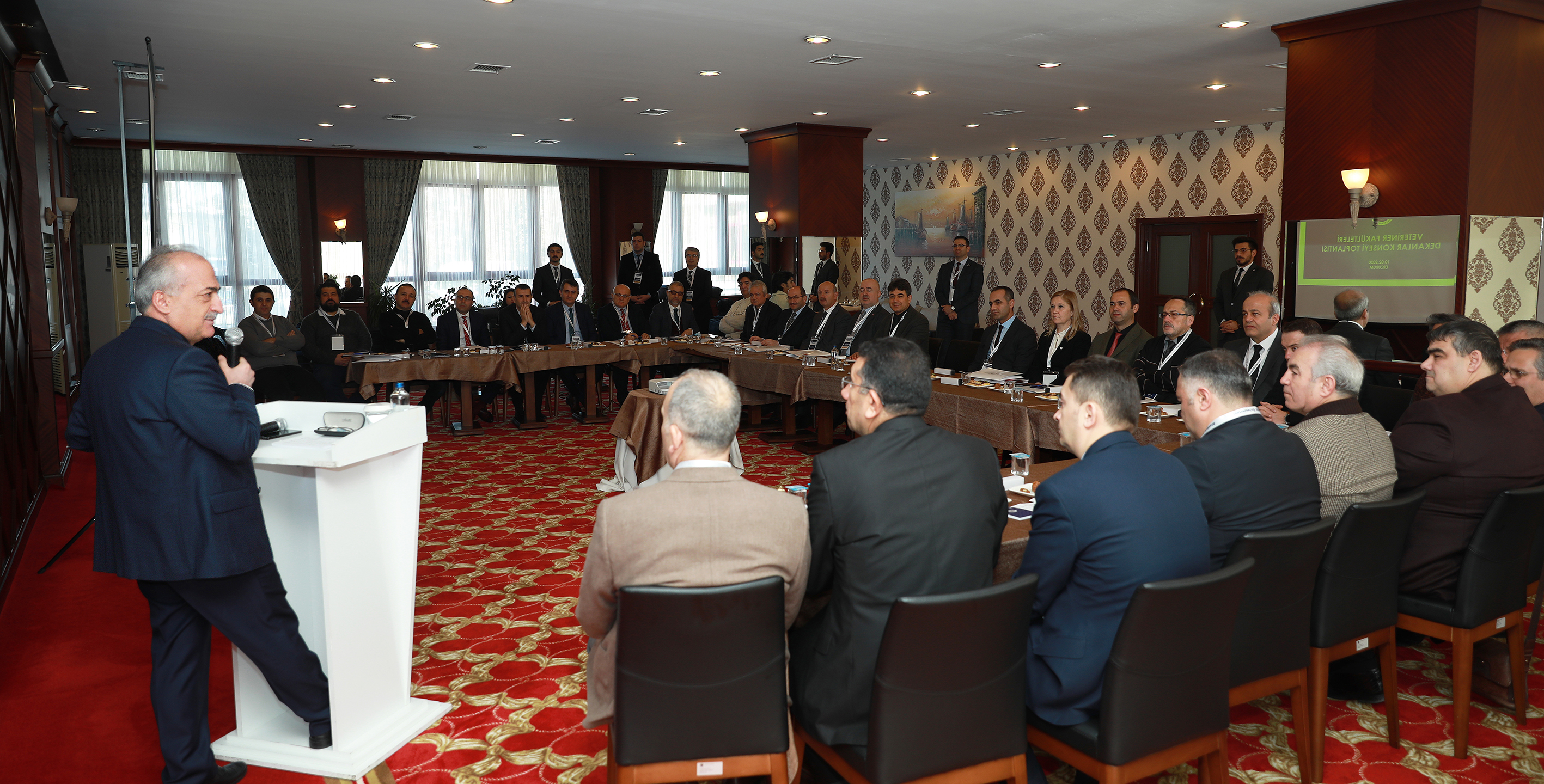 To the opening of the meeting held at Guesthouse 1,in addition to Atatürk University Rector.Prof. Dr. Ömer Çomaklı, Dean of the Faculty of Veterinary Prof. Dr. Hamza Avcıoğlu and 28 faculty members representing 23 veterinary faculty from various universities in Turkey participated.