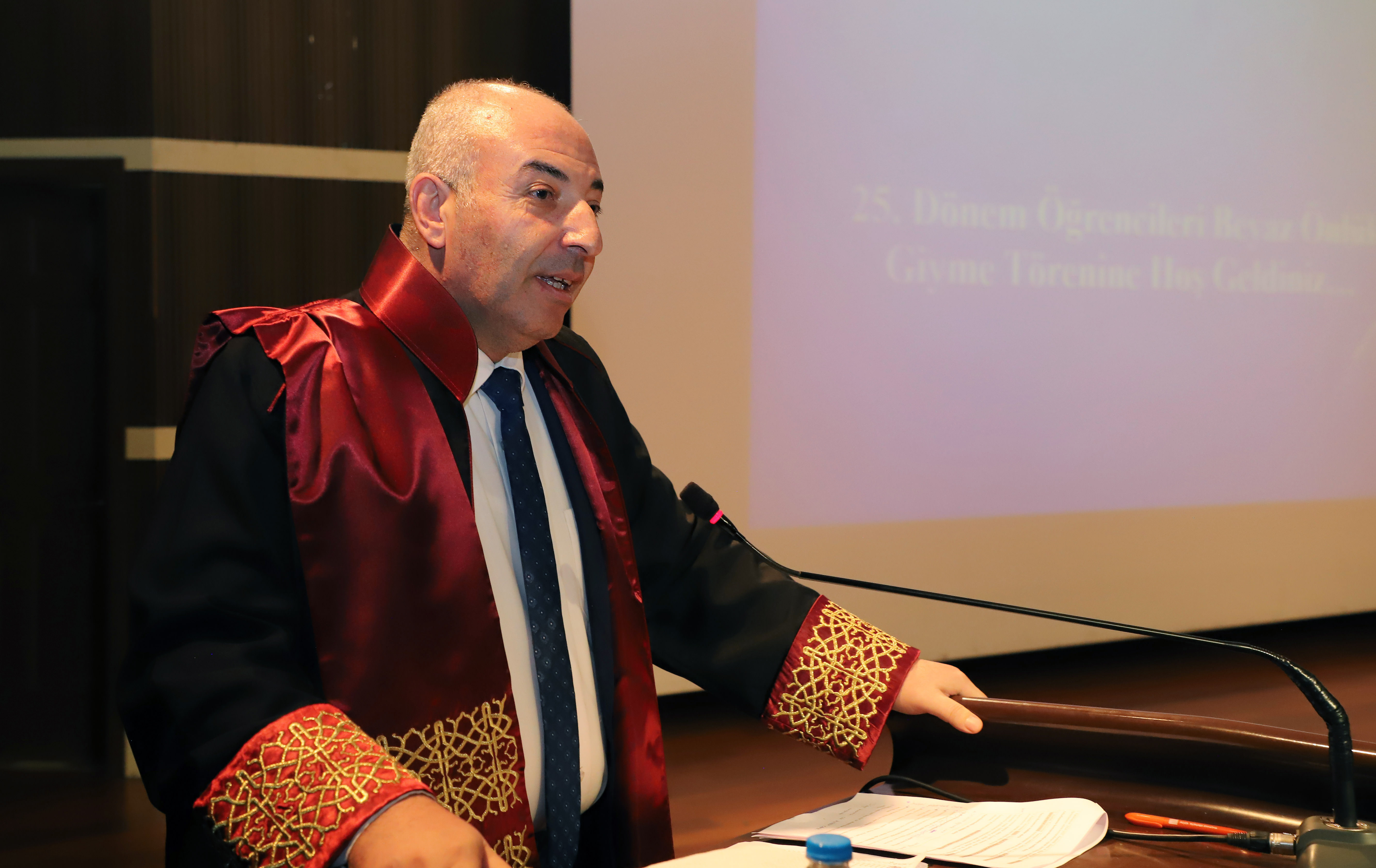Prof. Dr. Ahmet Hacımüftüoğlu, the Rector of Atatürk University and the guest of honor at the event, addressed the students from the podium. Hacımüftüoğlu asserted that Atatürk University occupies an esteemed position in both Turkey and the international community. He further stated, "Our Faculty of Veterinary Medicine is instrumental in addressing the country's requirement for veterinary physicians by virtue of its modern infrastructure and highly qualified academic staff." You are initiating your journey into this prestigious field by donning your white jackets. "I have faith in you and hope that you achieve success," he stated.