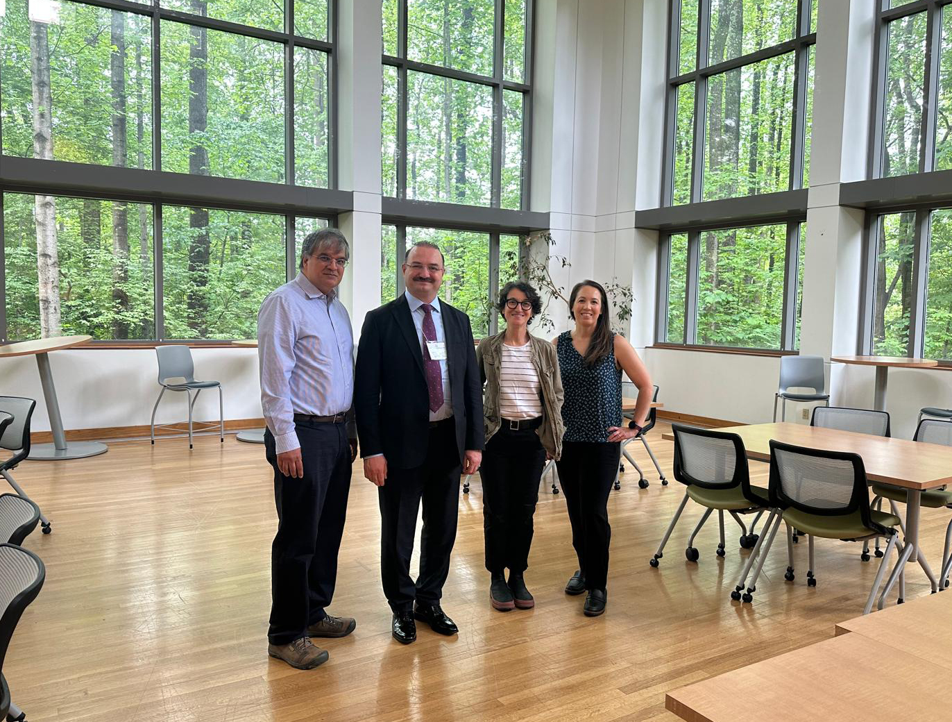 The Bioscience and Biotechnology Research Institute (IBBR), which is affiliated with the University of Maryland, was the second destination of the visit. Meetings were conducted with the Institute Director, Prof. Dr. Jonathan Dinman, and the Institute Deputy Director, Dr. John Marino, at this location. Prof. Dr. Hacımüftüoğlu, who was informed of the most recent research conducted in the fields of ribosome biology, protein synthesis, virology, and structural biochemistry, stated that a consensus of intention was established between IBBR and Atatürk University with respect to the exchange of postdoctoral researchers and the development of joint projects. The potential for collaboration in sophisticated techniques, including cryo-electron microscopy, x-ray crystallography, and nuclear magnetic resonance (NMR), was notably underscored.